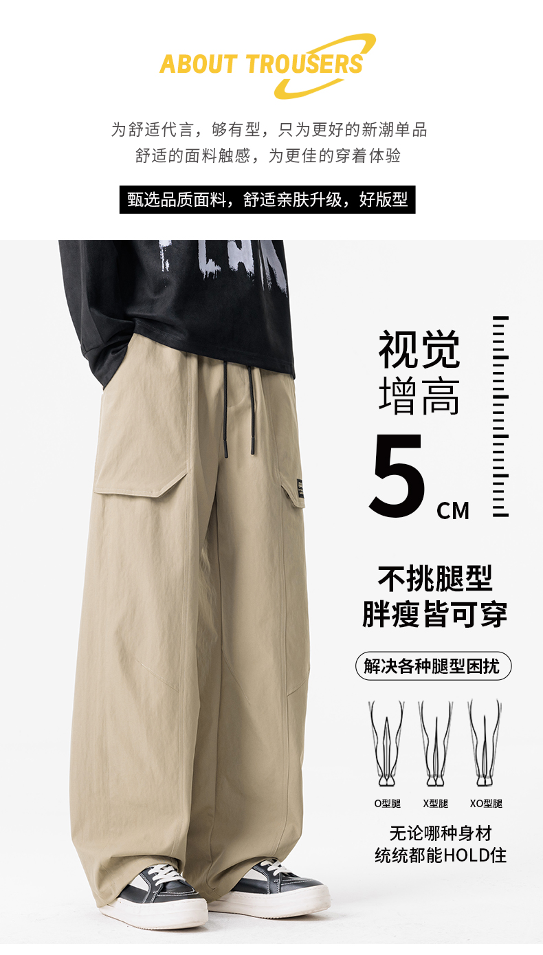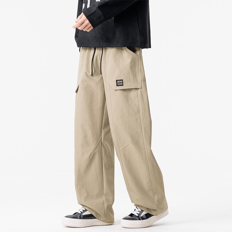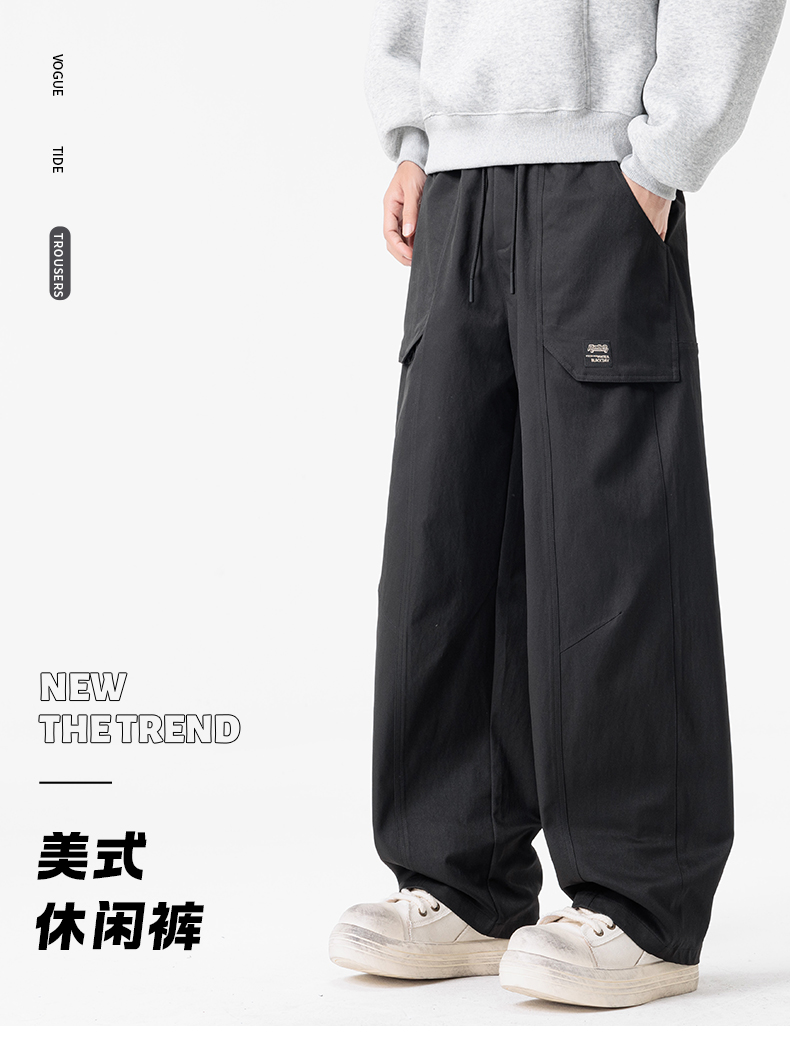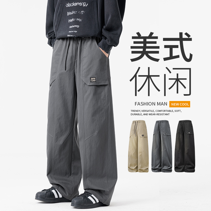 새로운 빅 사이즈 캐주얼 바지 남성 봄 가을 새로운 저항 주름 다용도 루즈핏 워크웨어 와이드 레그 팬츠