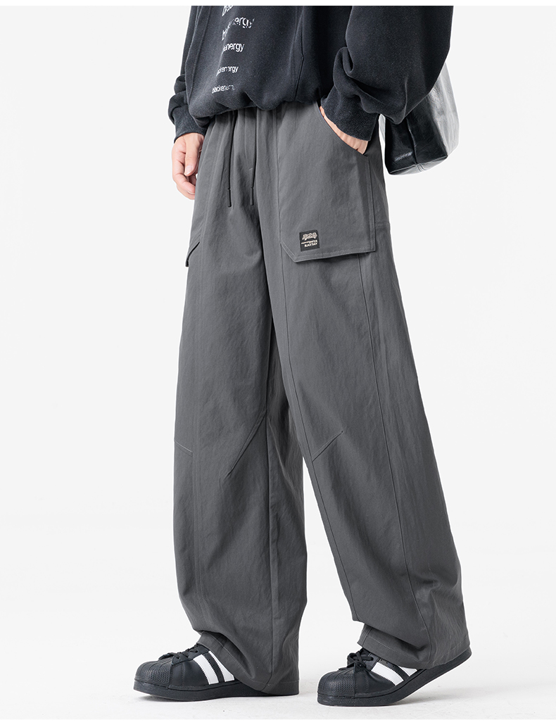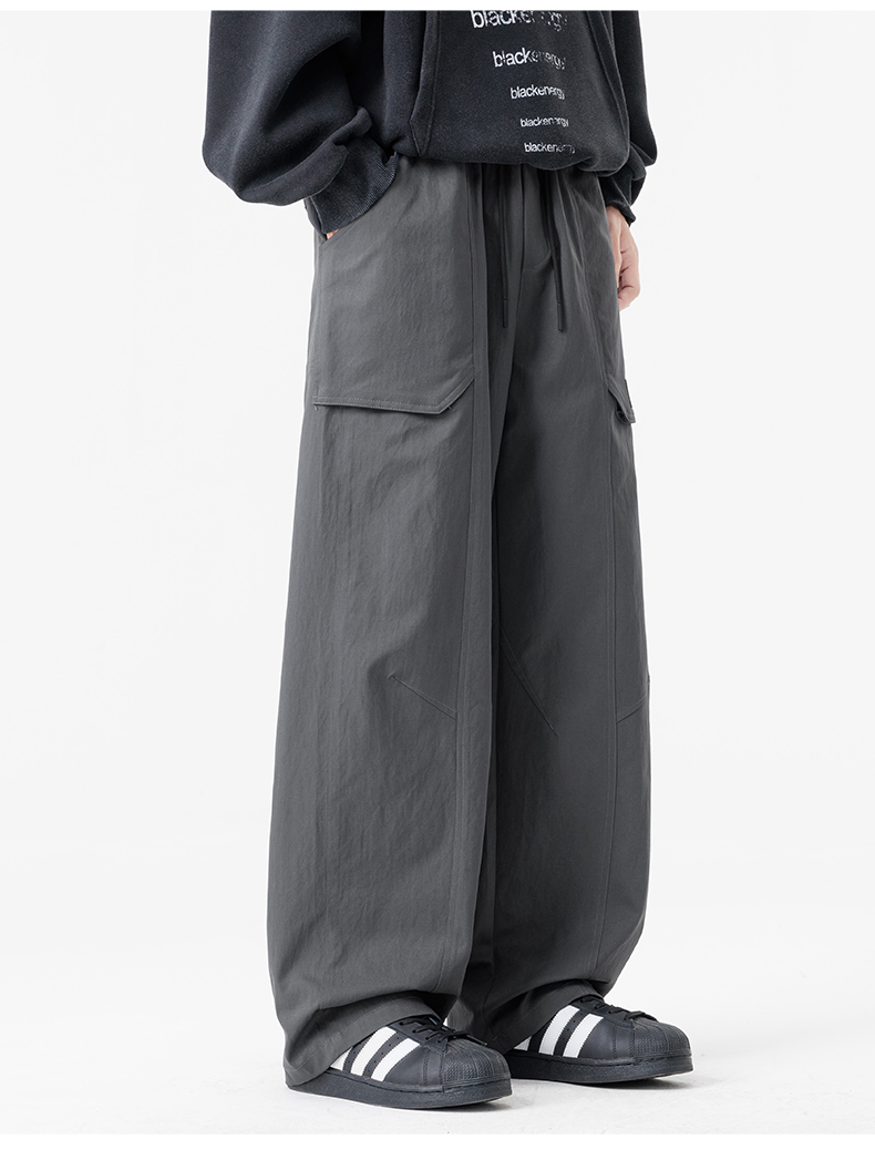 새로운 느슨함 바람 회색 루즈핏 스트레이트 웨이 바지 도루 센스 넓은 다리 캐주얼 긴 바지 다용도 도루 센스 운동 바지 웨이 바지