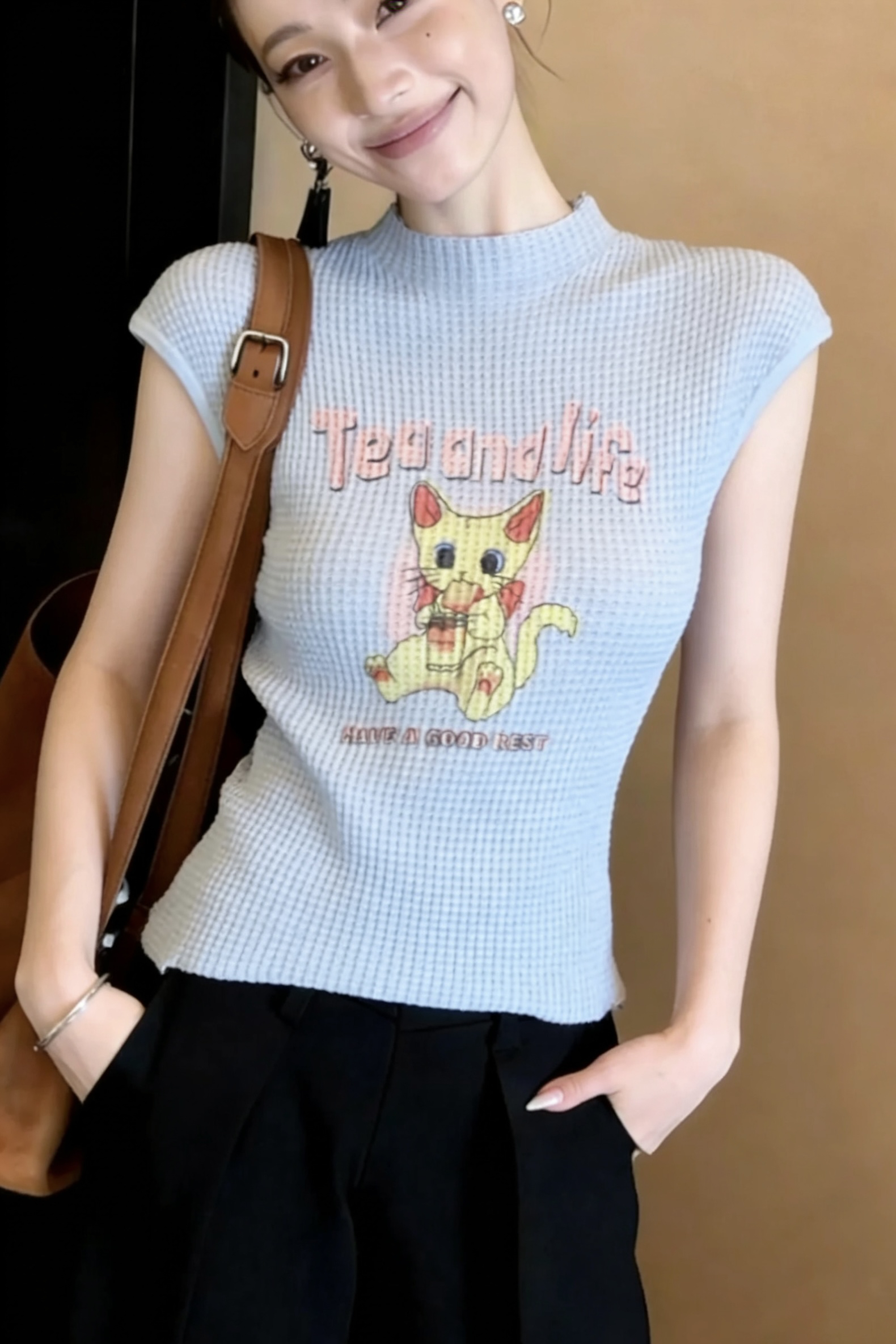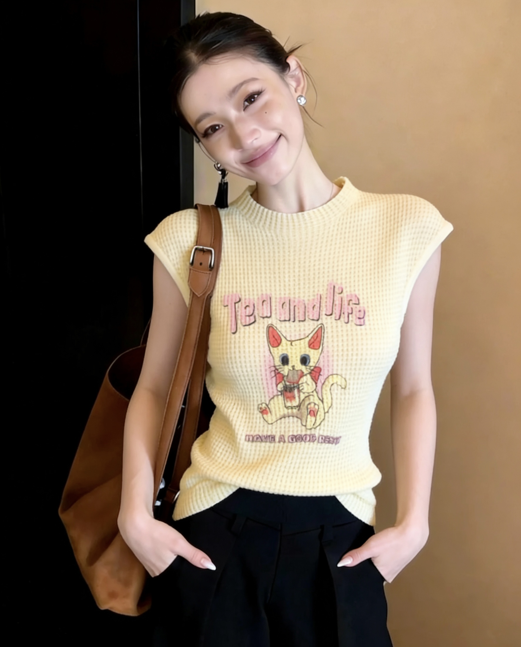 닝 부문 ll 체크무늬 비틀림 V넥 행침 목 조끼 여성 여름 새로운 한 부서 디자인 센스 쇼트 스타일 슬림해 보이는 민소매 켜기