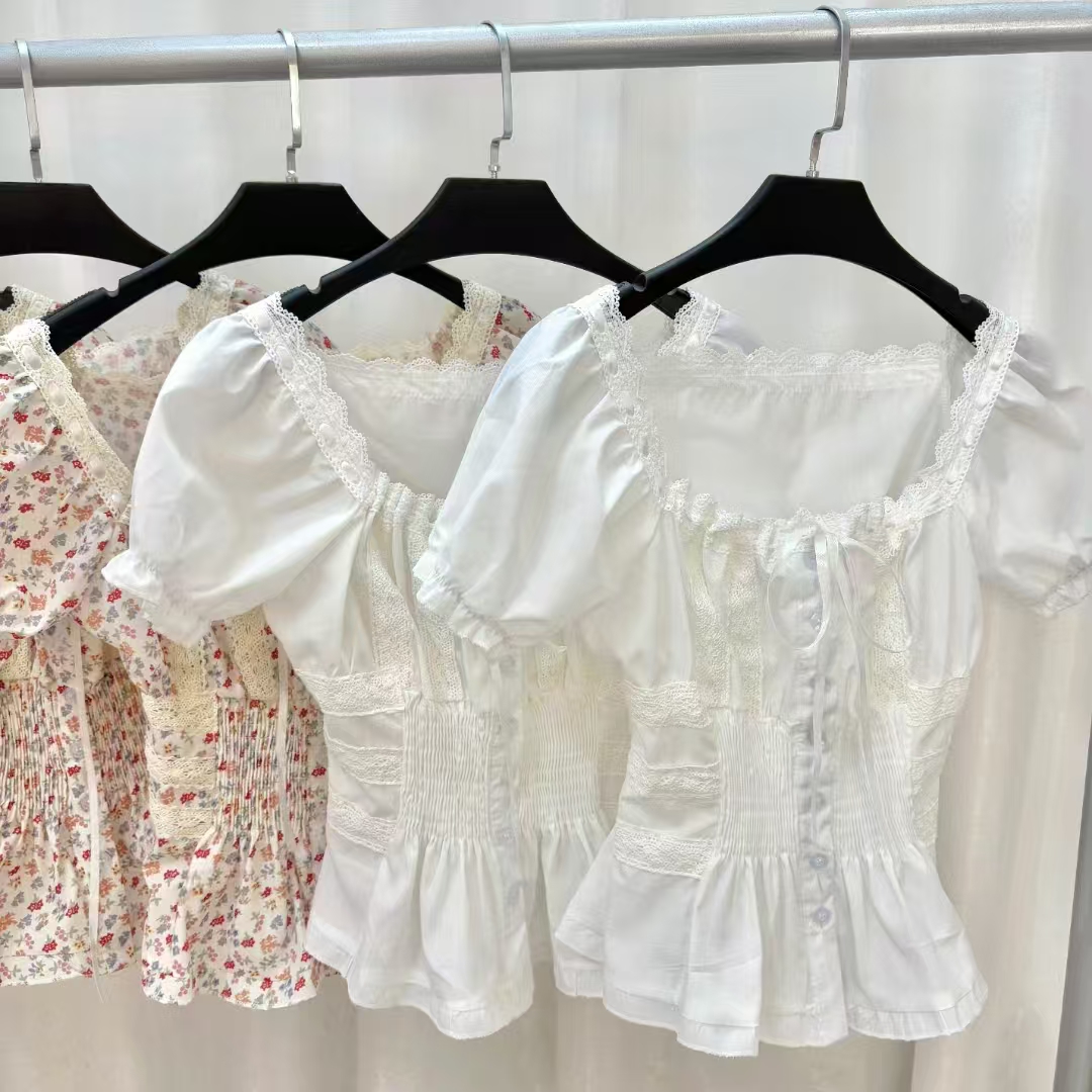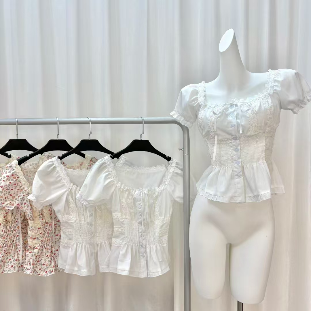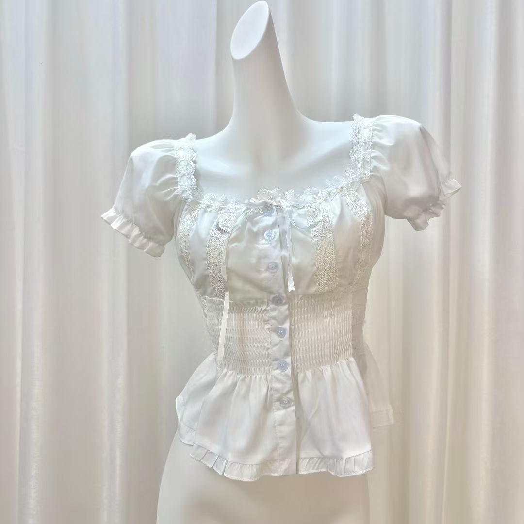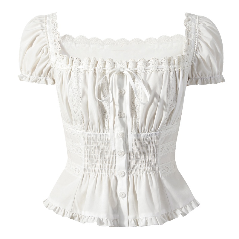 송 긍정적 인 En 화이트 V넥 레이스 레이스 스트랩 긍정적 인 어깨 반팔 티셔츠 여성 여름 몸매 가꾸기 고유 한 슈퍼 잘 생긴 맨위