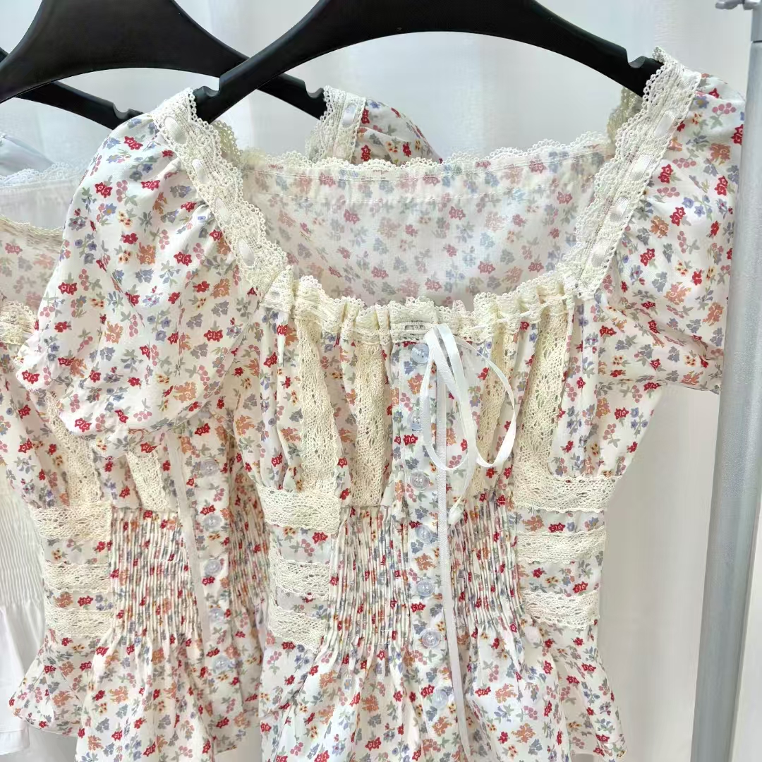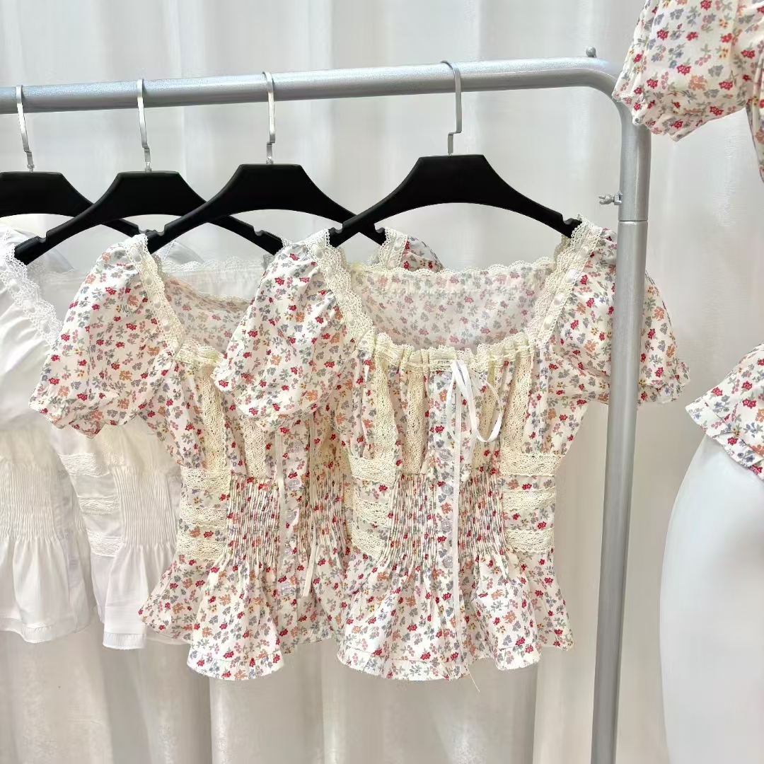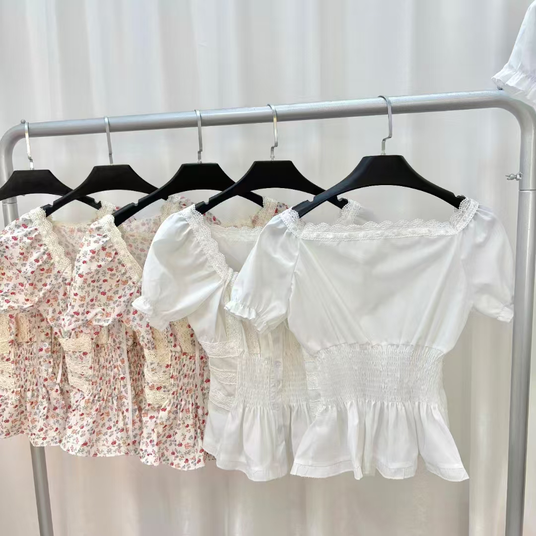 반팔 티셔츠 여성 2026 새로운 여름 검정색 반소매 쇼트 스타일 몸매 가꾸기 레이스 조각 아름다운 순면 V넥 맨위