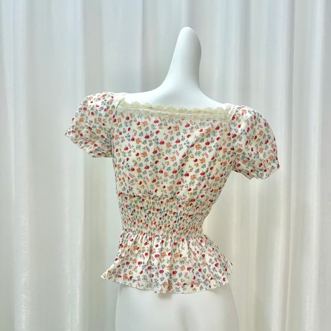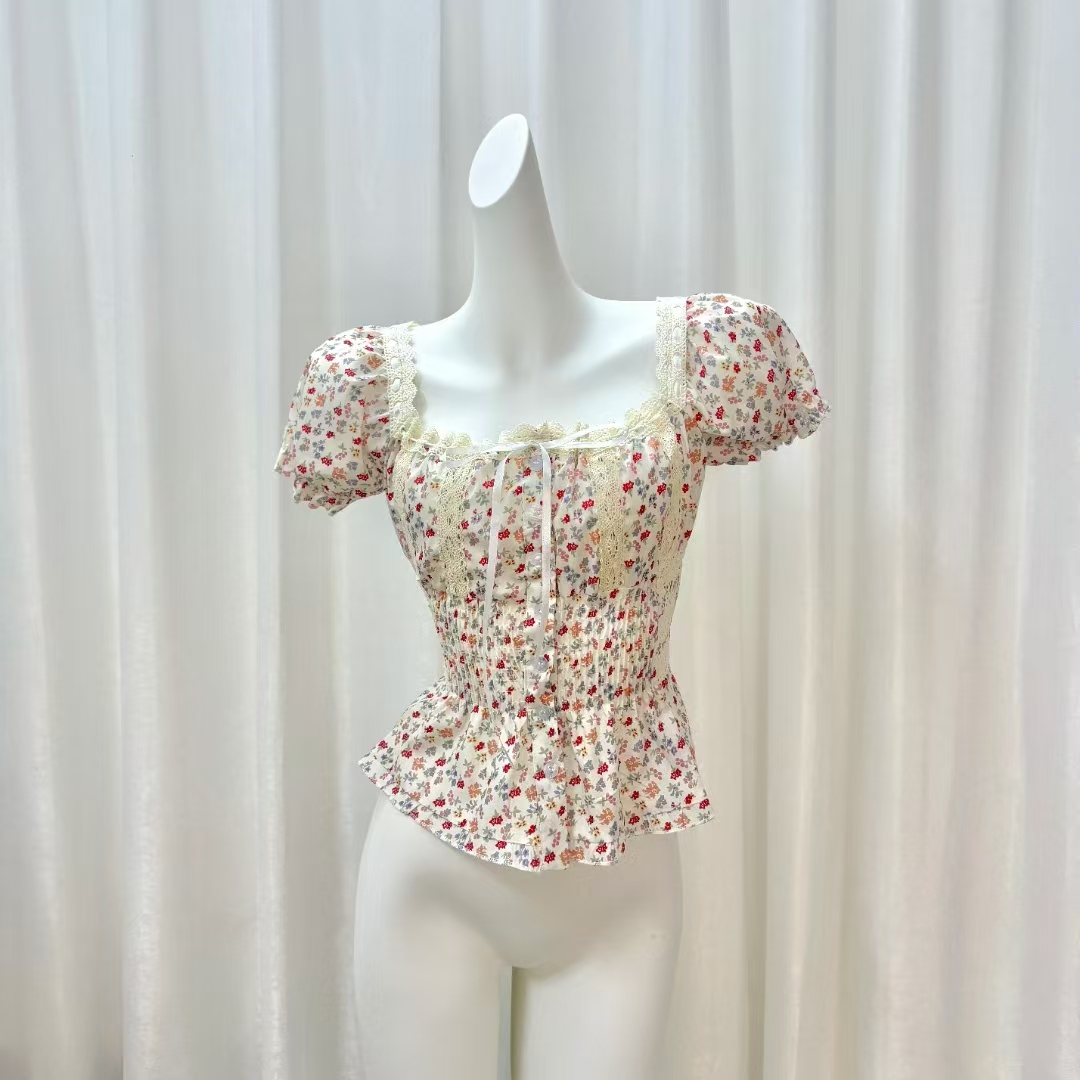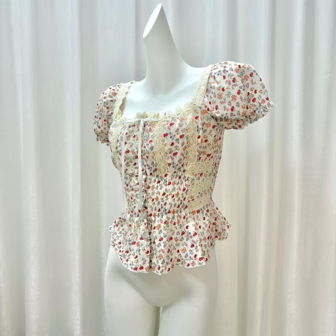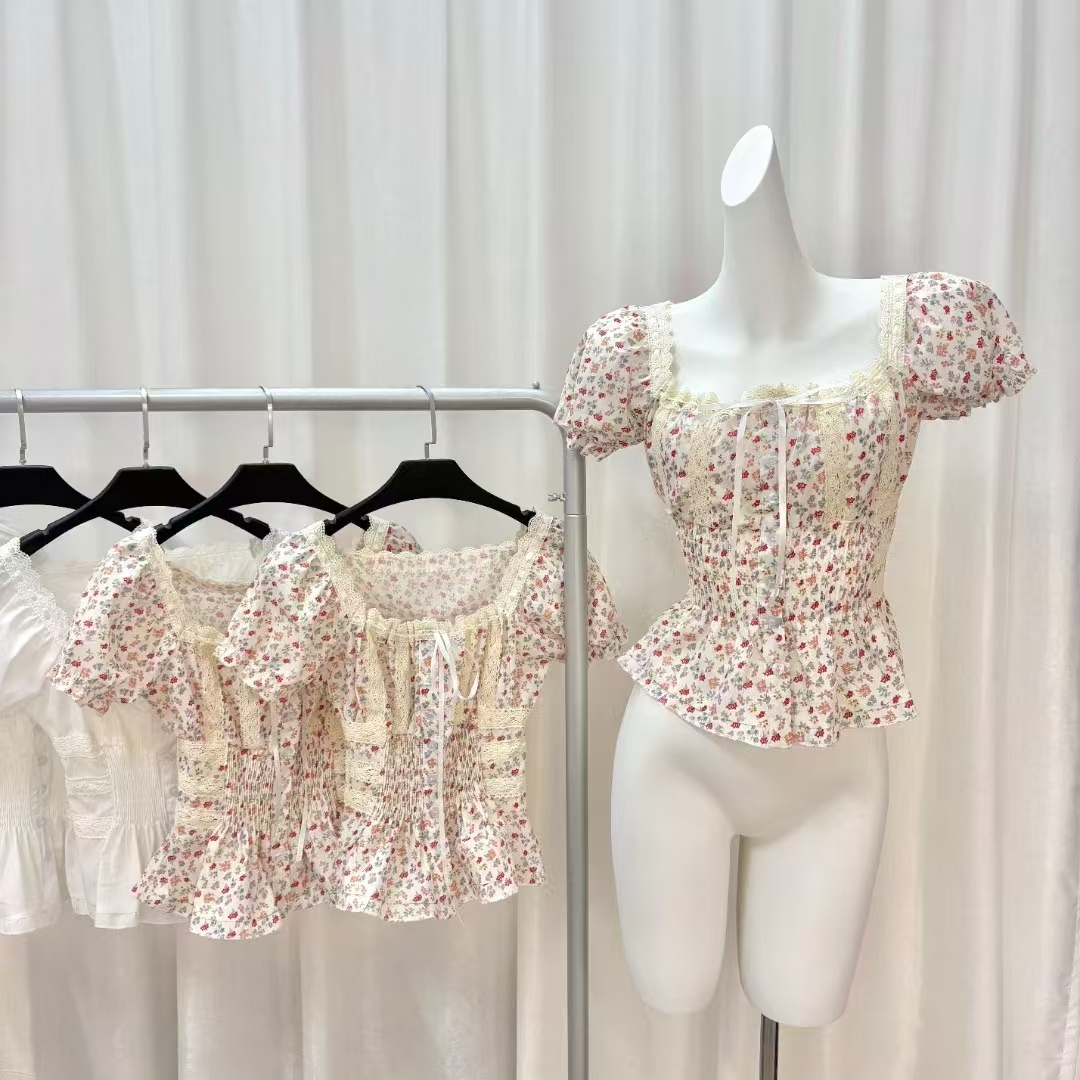 반팔 티셔츠 여성 2026 새로운 여름 검정색 반소매 쇼트 스타일 몸매 가꾸기 레이스 조각 아름다운 순면 V넥 맨위