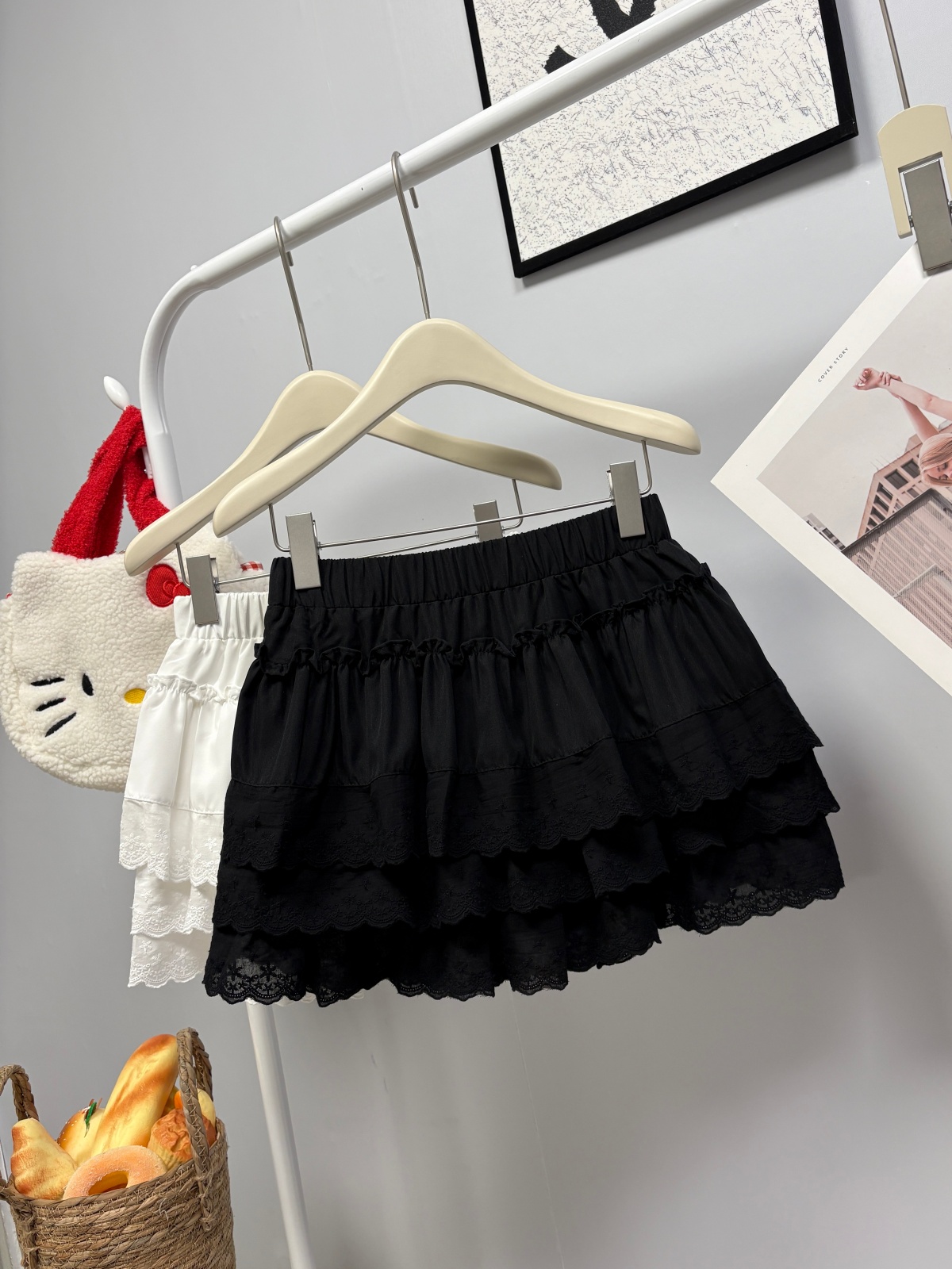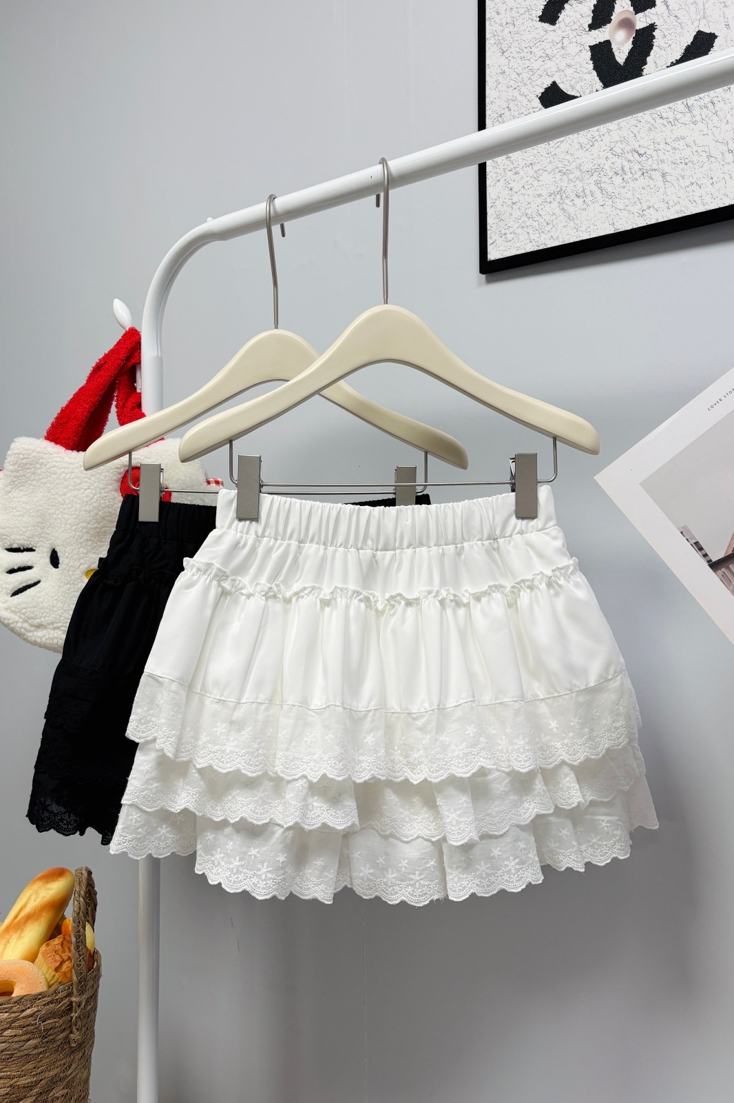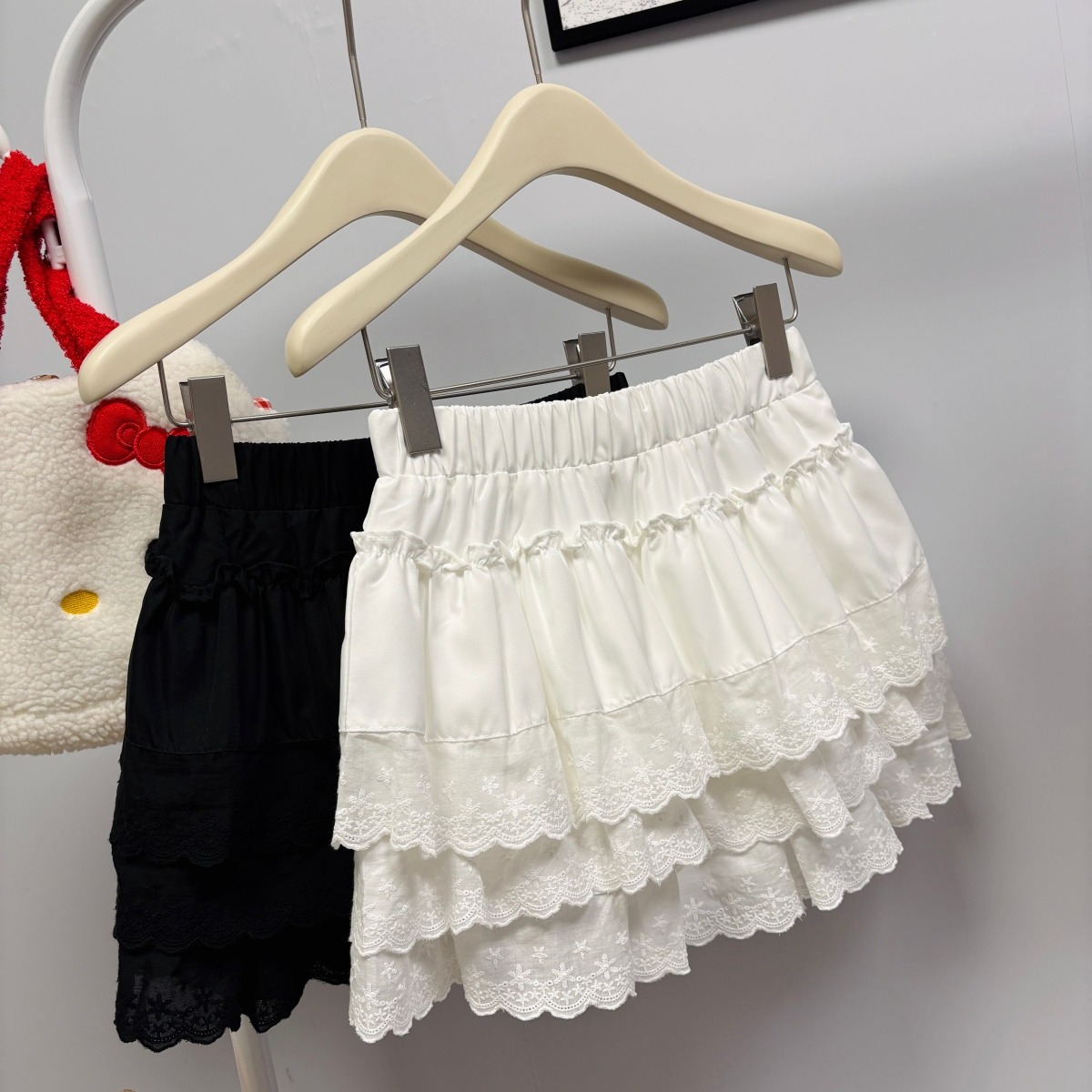 실사 여름 새로운 2026 한 부서 크림 반신 스커트 프릴 케이크 드레스 달콤함 연령 감소 면 미니 스커트
