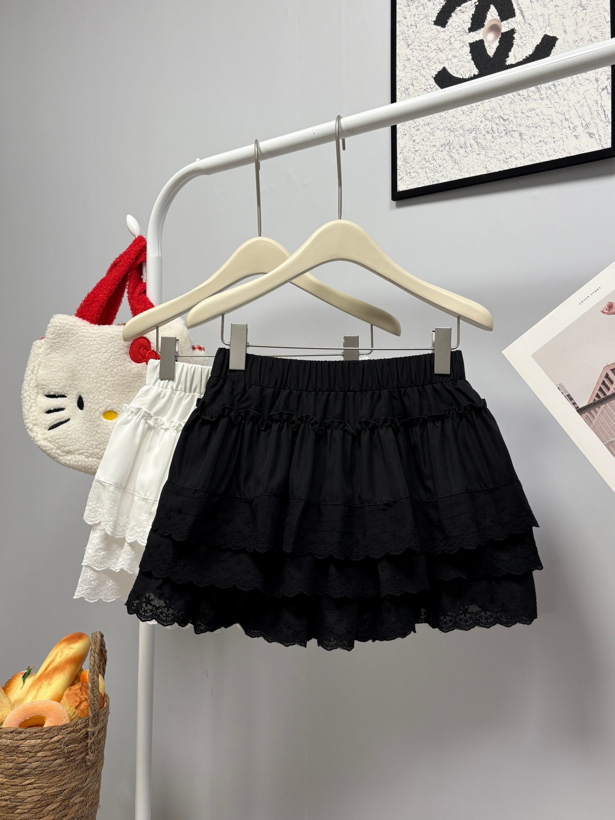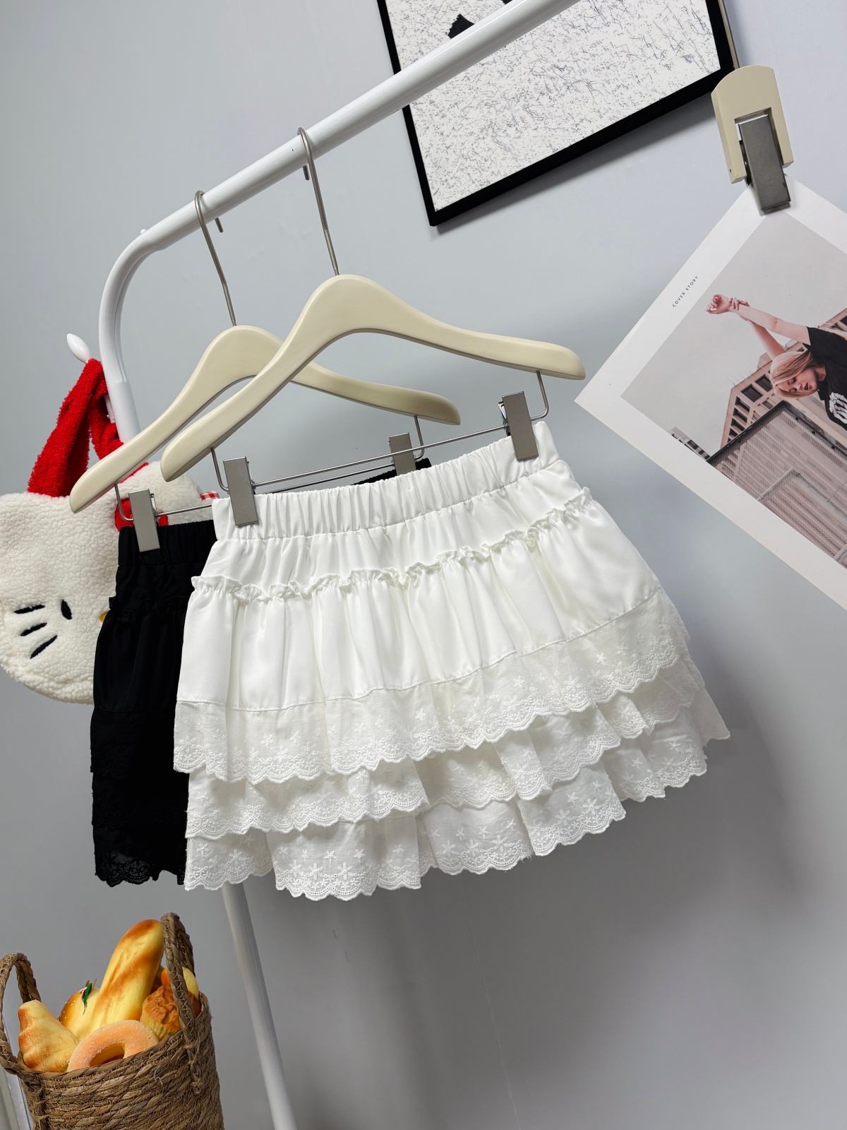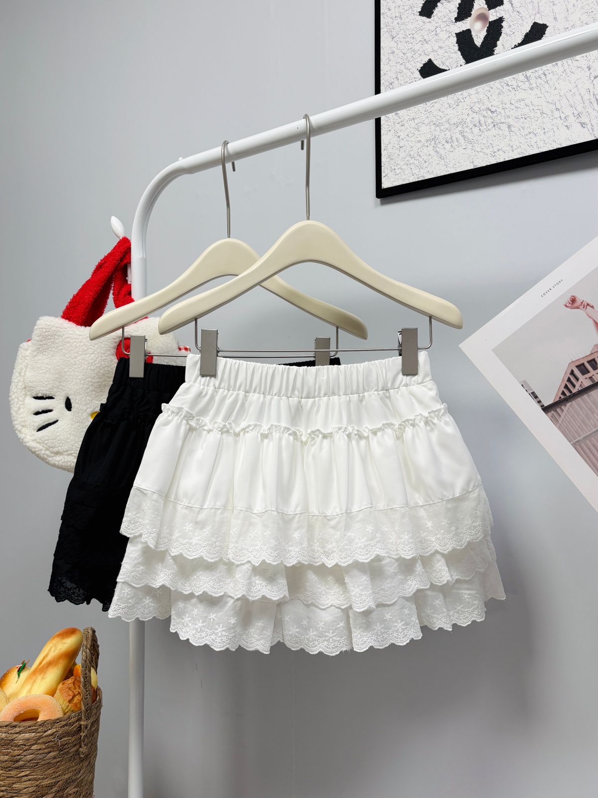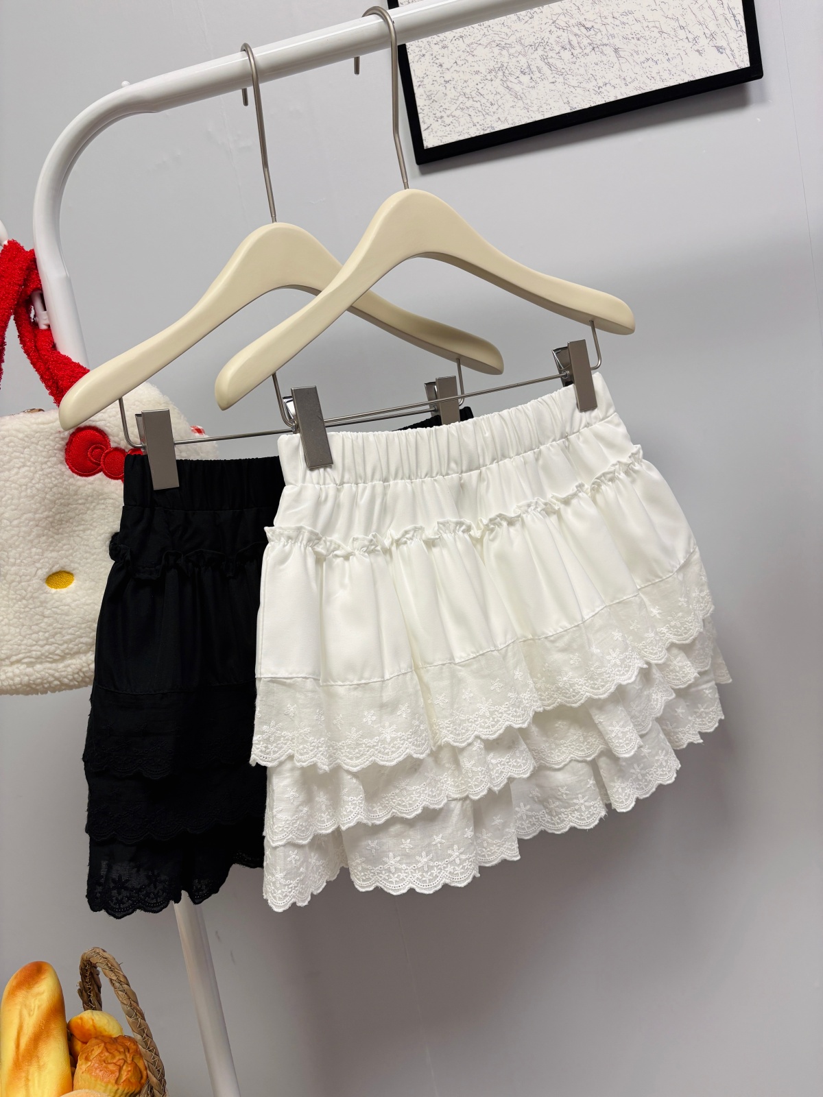 실사 여름 새로운 2026 한 부서 크림 반신 스커트 프릴 케이크 드레스 달콤함 연령 감소 면 미니 스커트