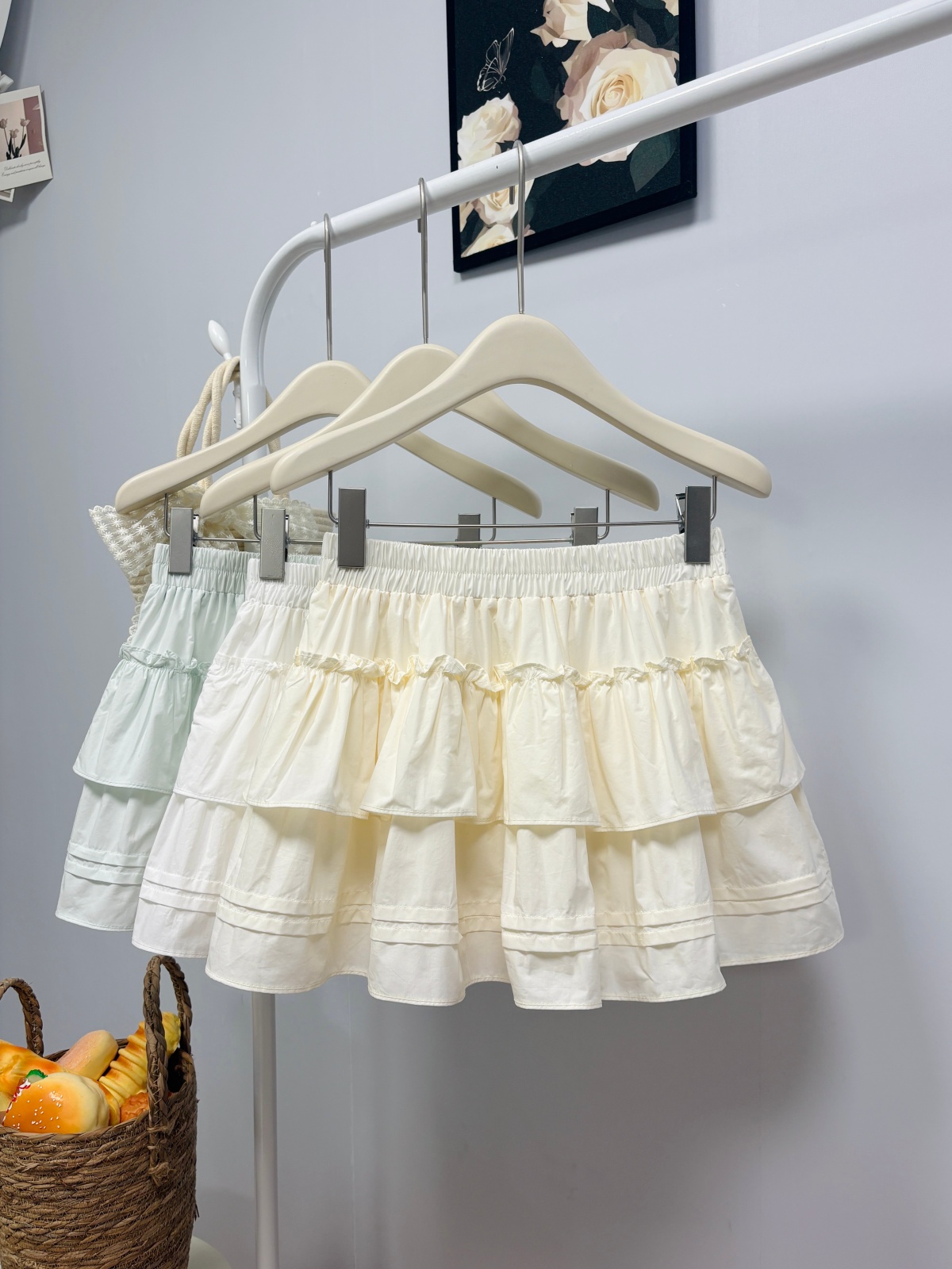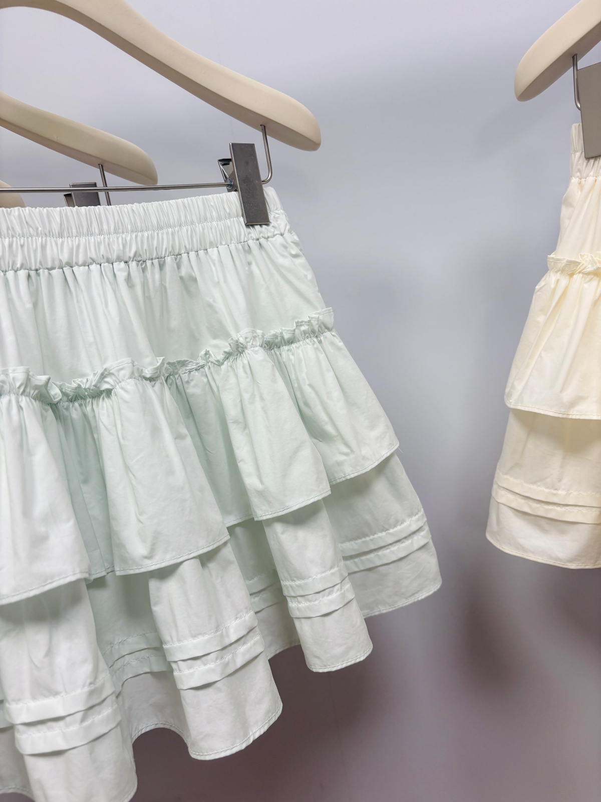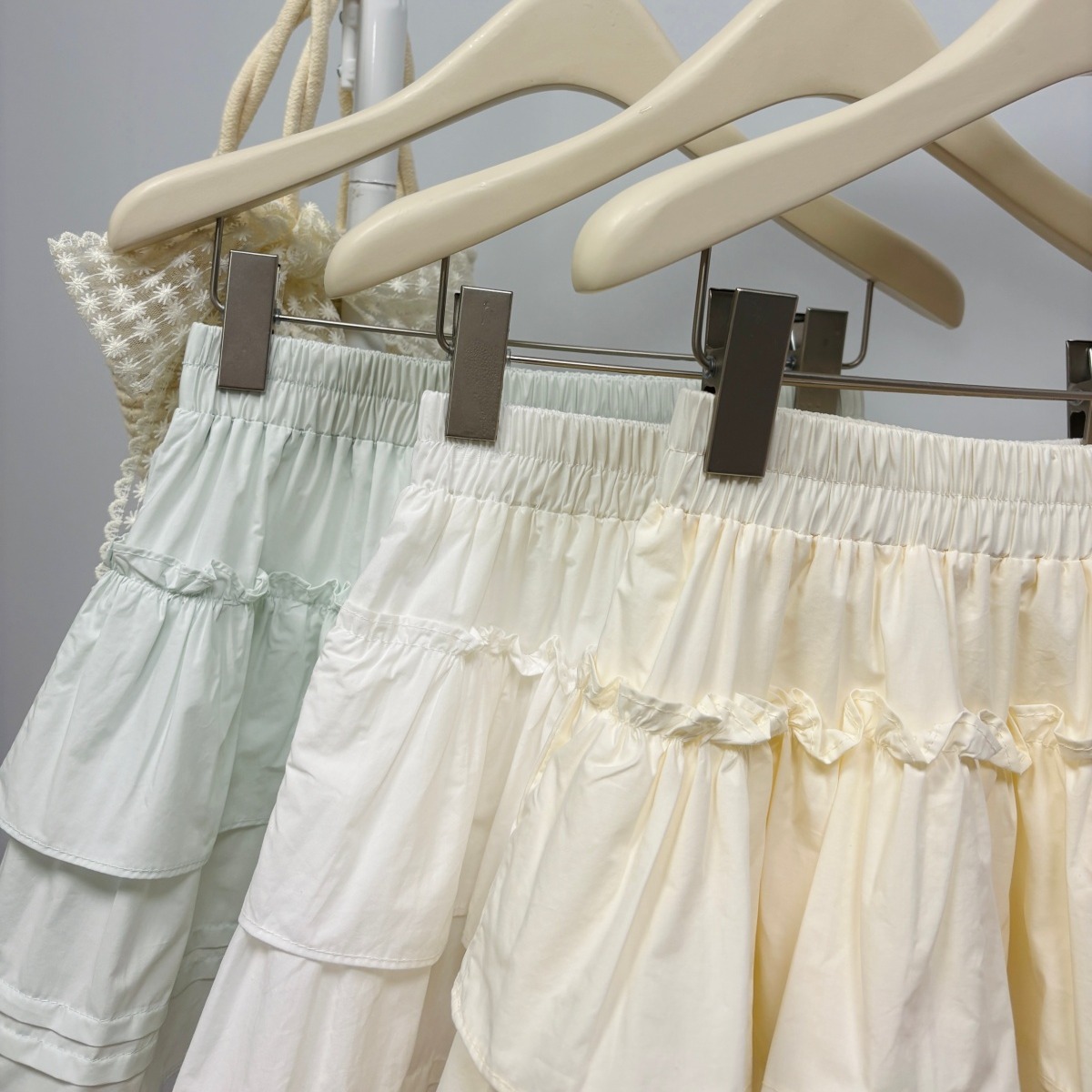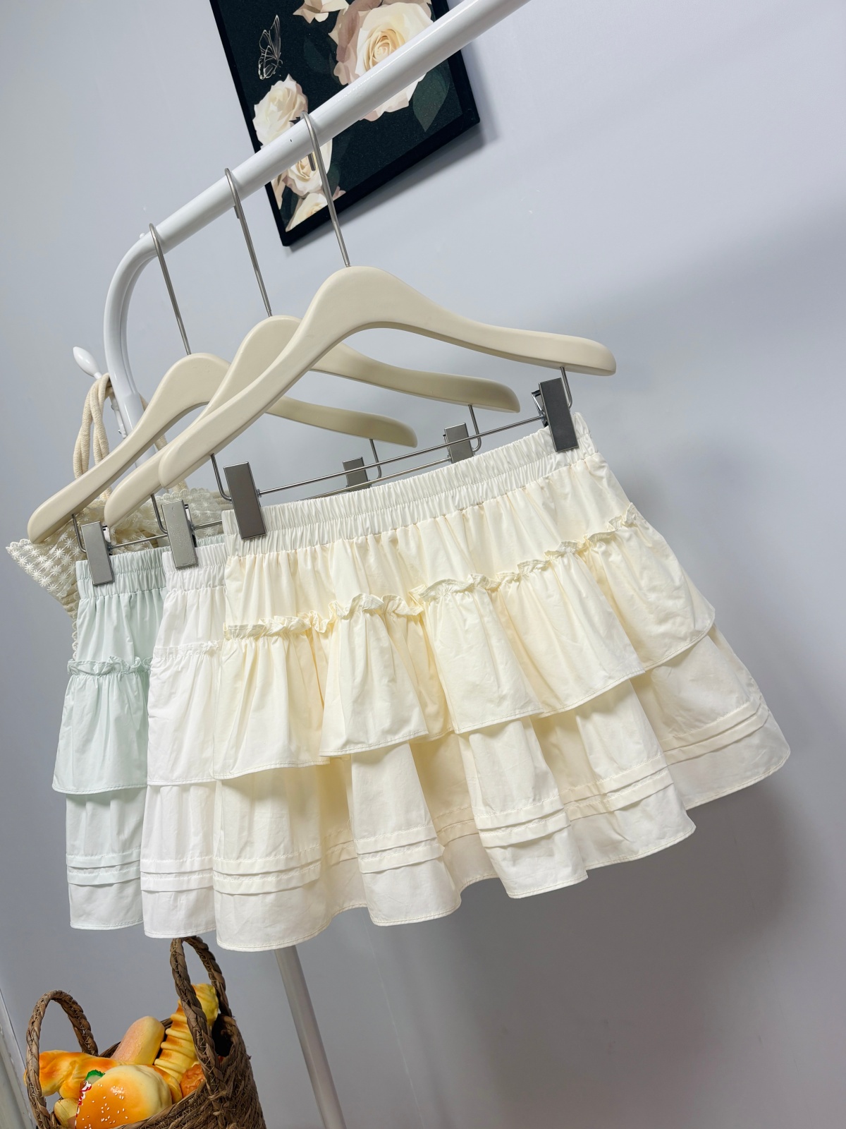 실사 여름 새로운 2026 한 부서 크림 반신 스커트 프릴 케이크 드레스 달콤함 연령 감소 면 미니 스커트