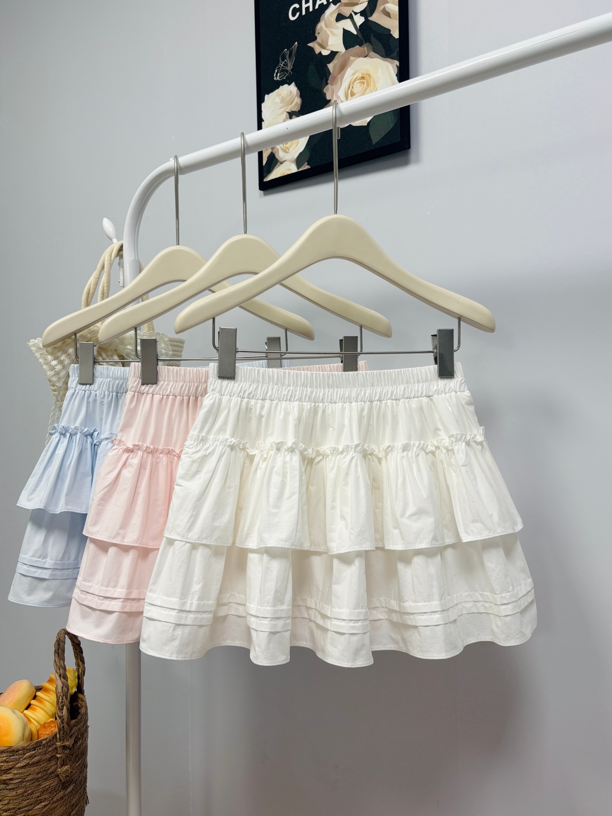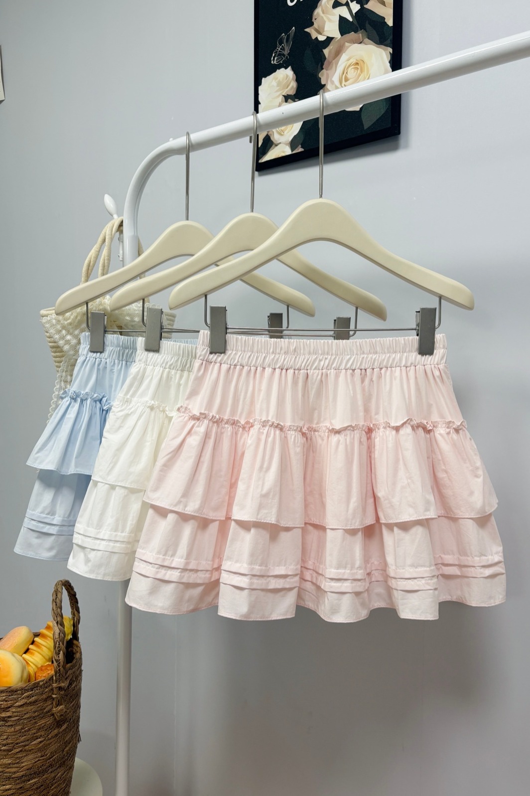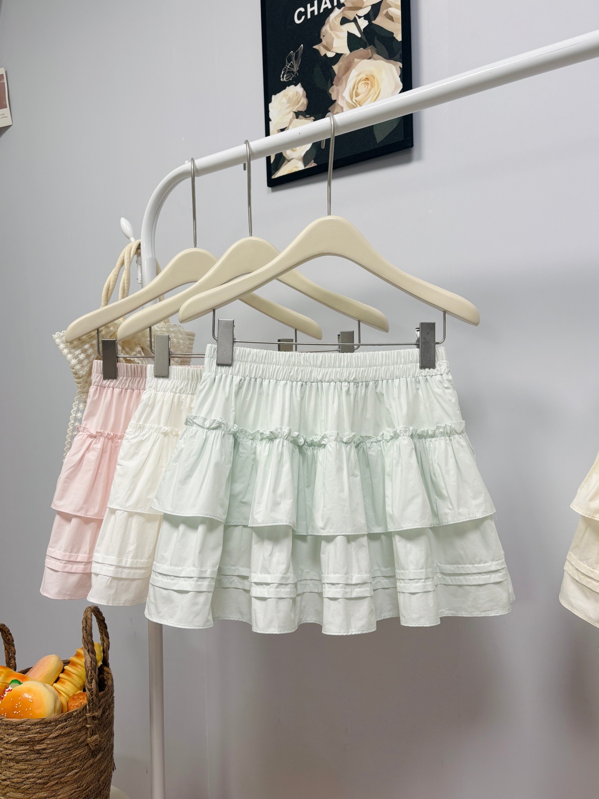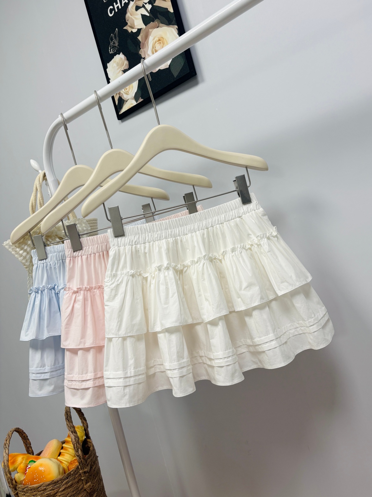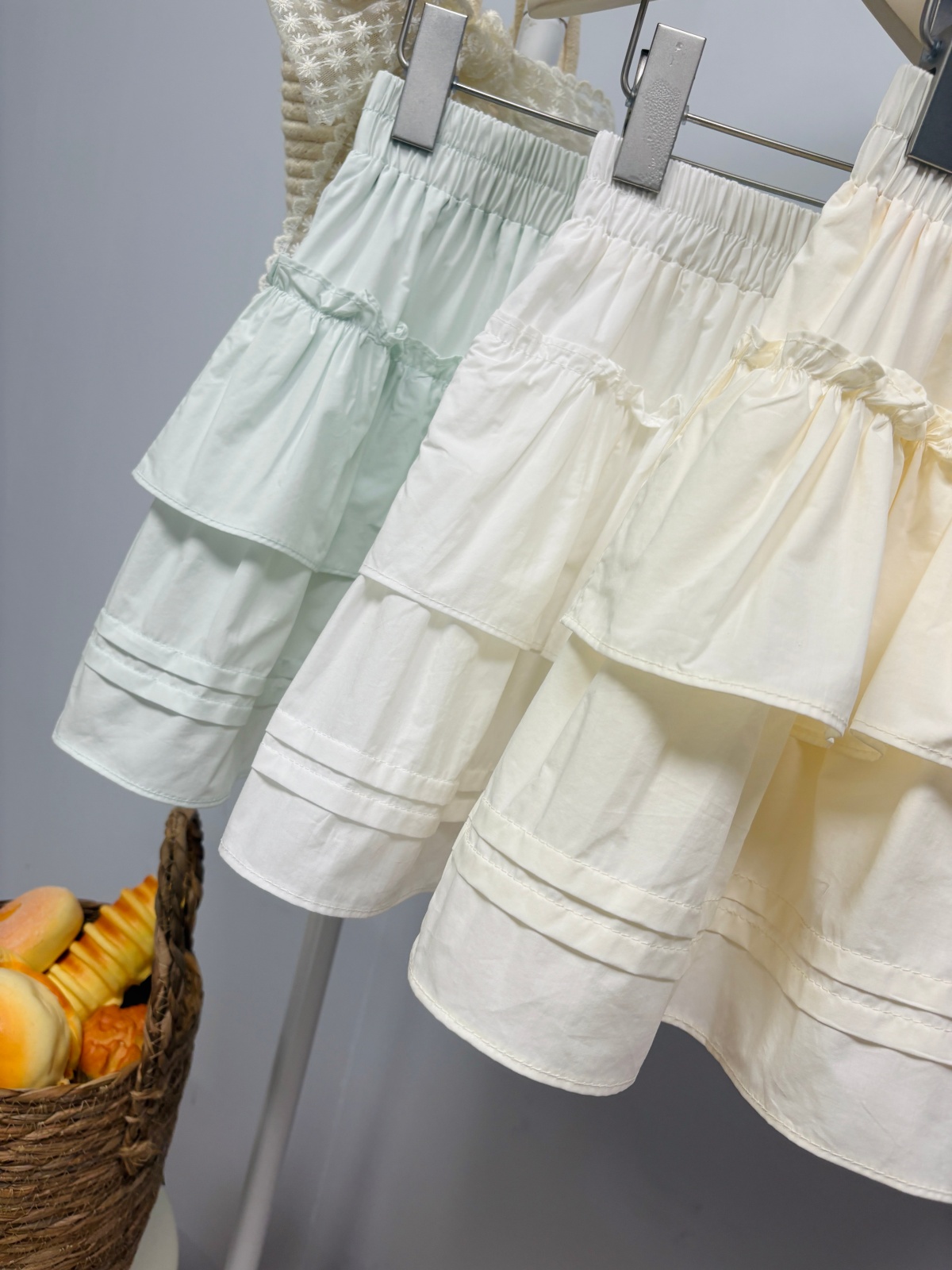 실사 여름 새로운 2026 한 부서 크림 반신 스커트 프릴 케이크 드레스 달콤함 연령 감소 면 미니 스커트