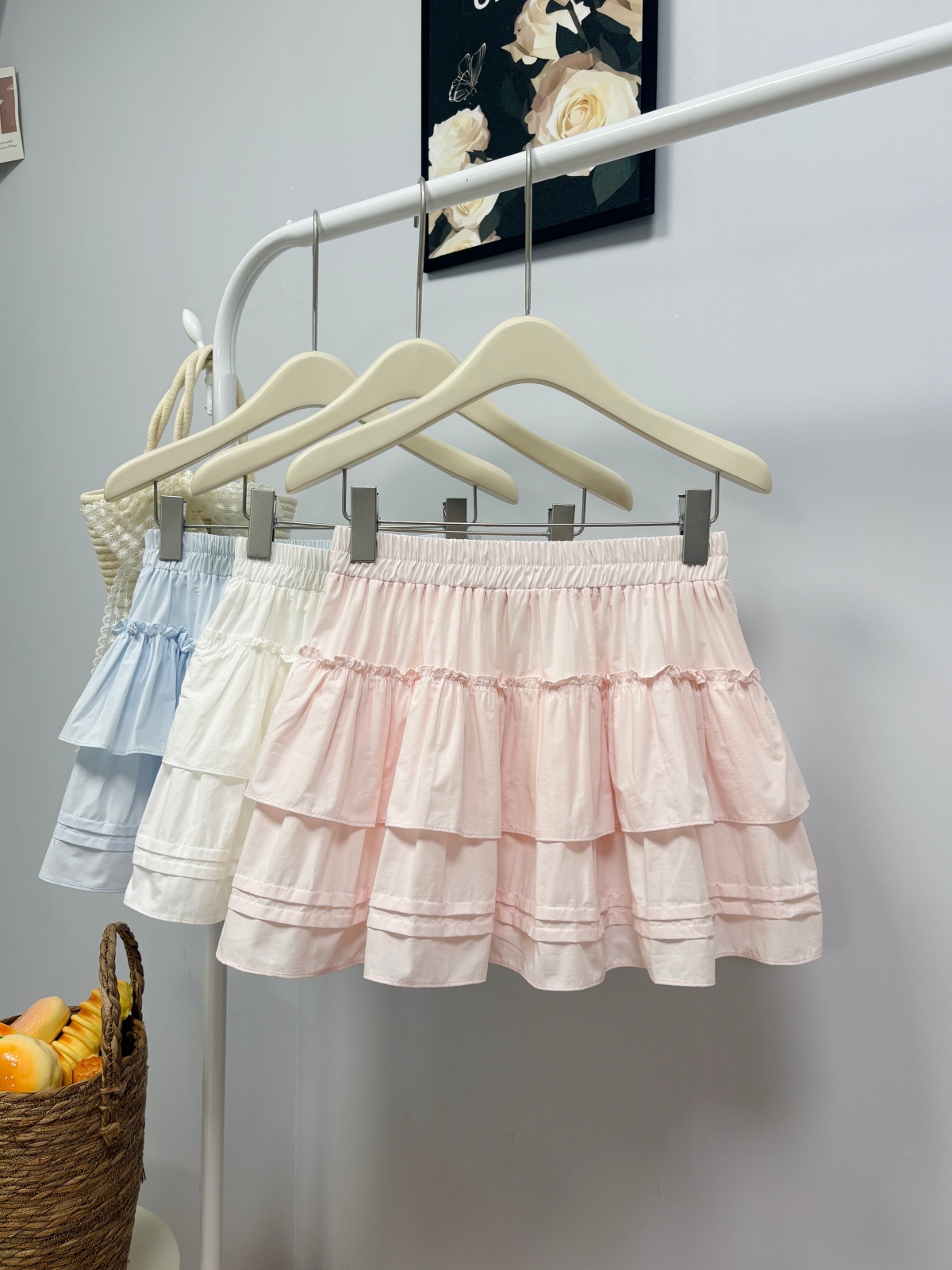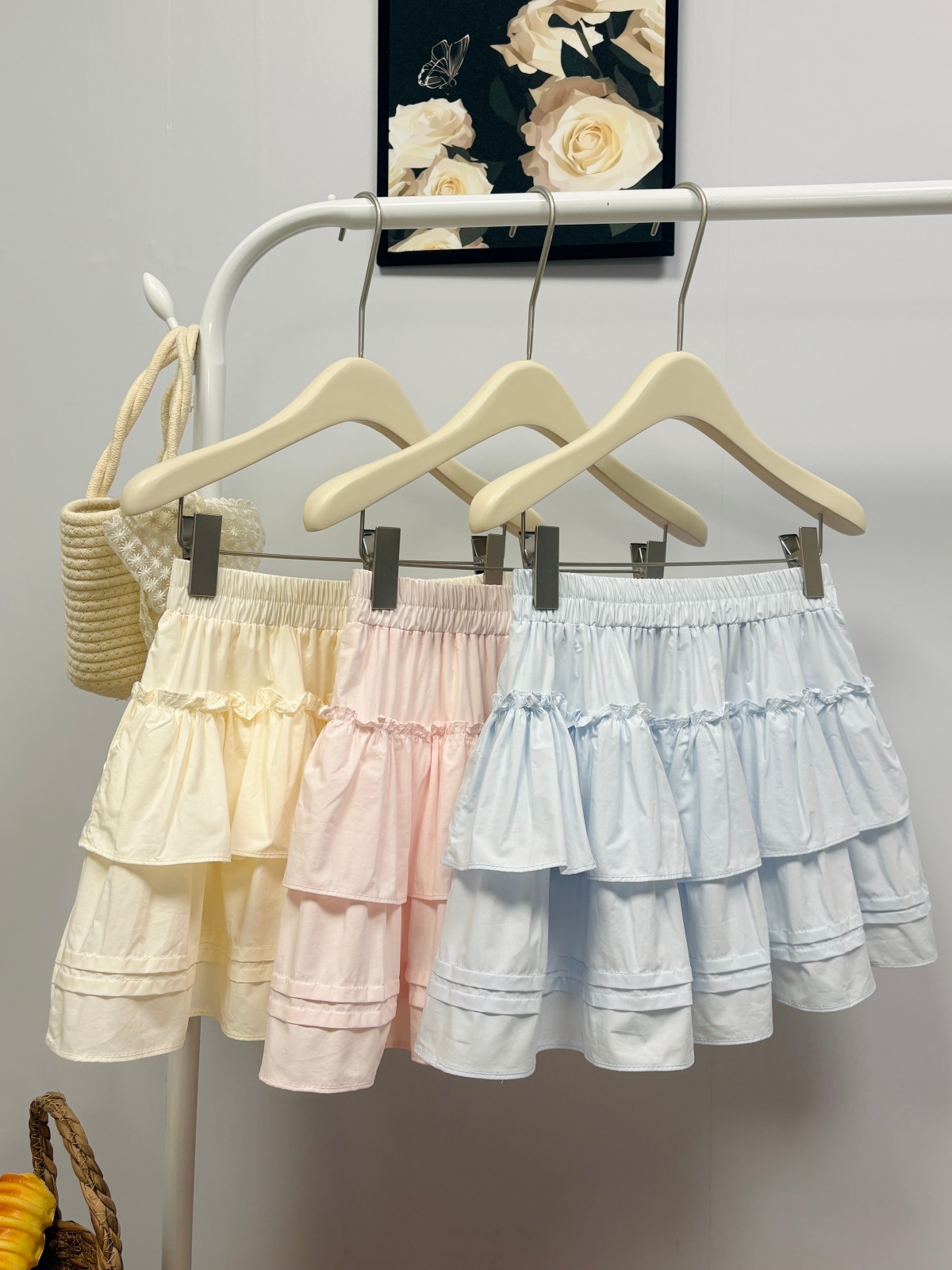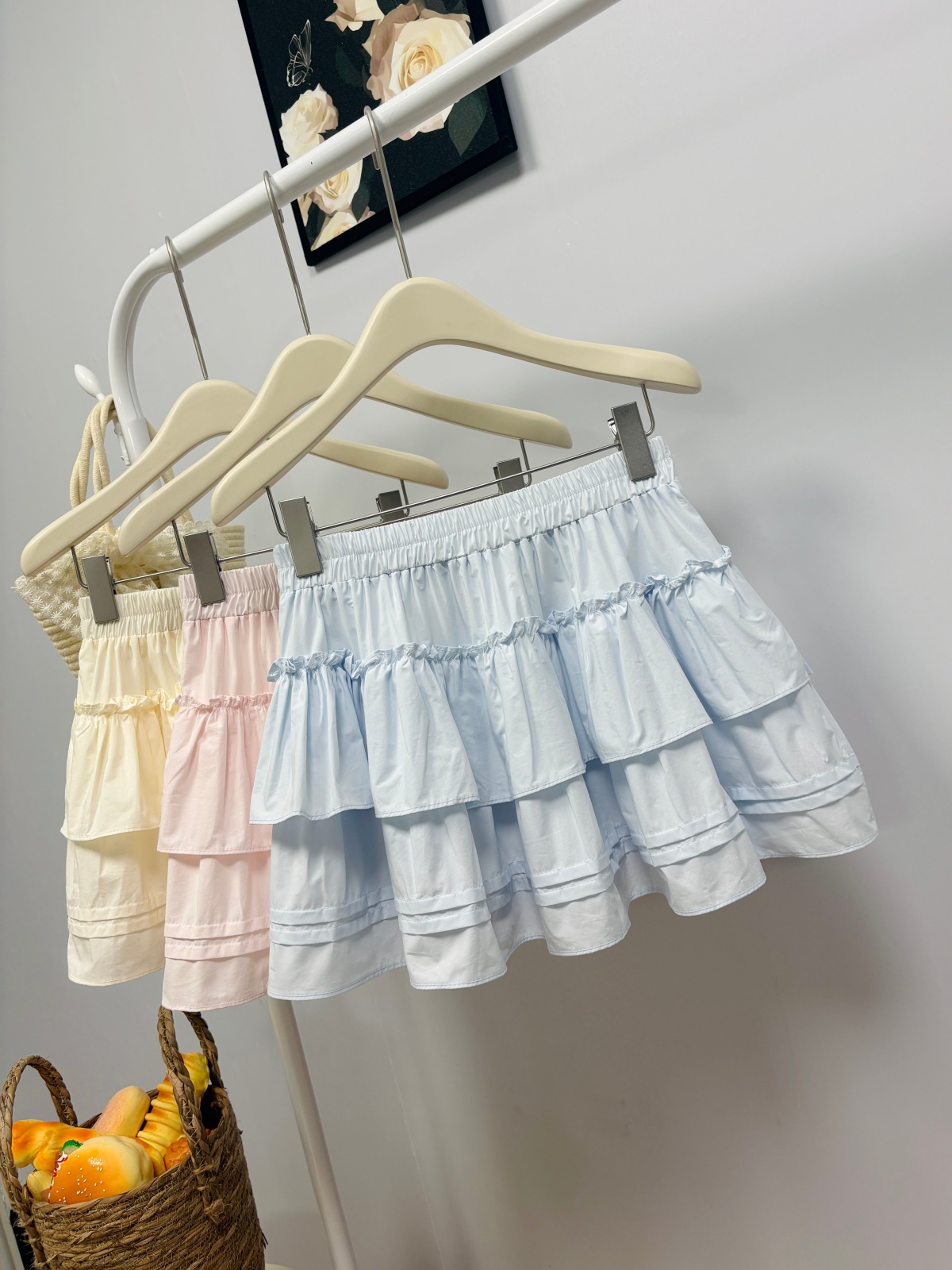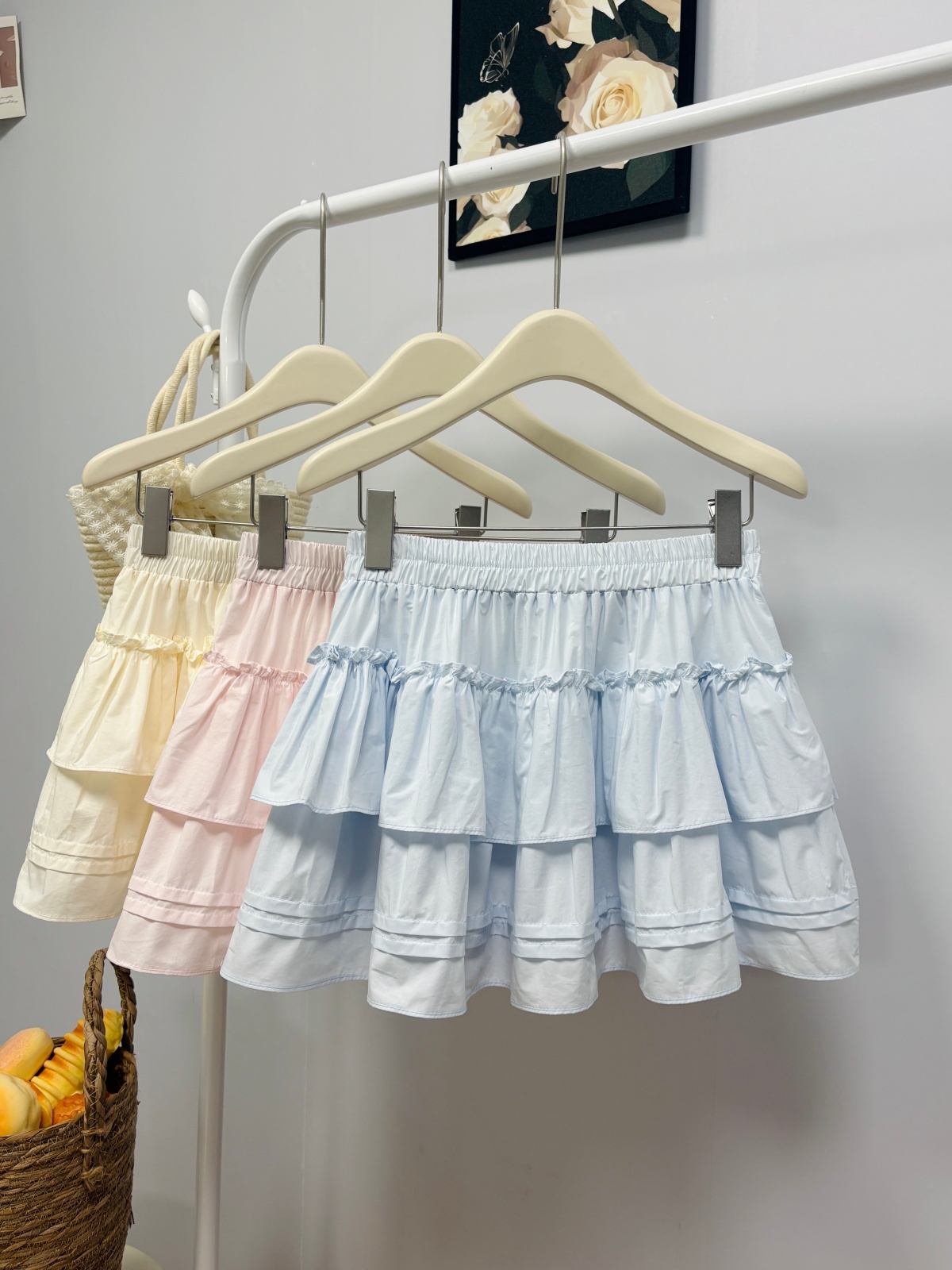 실사 여름 새로운 2026 한 부서 크림 반신 스커트 프릴 케이크 드레스 달콤함 연령 감소 면 미니 스커트