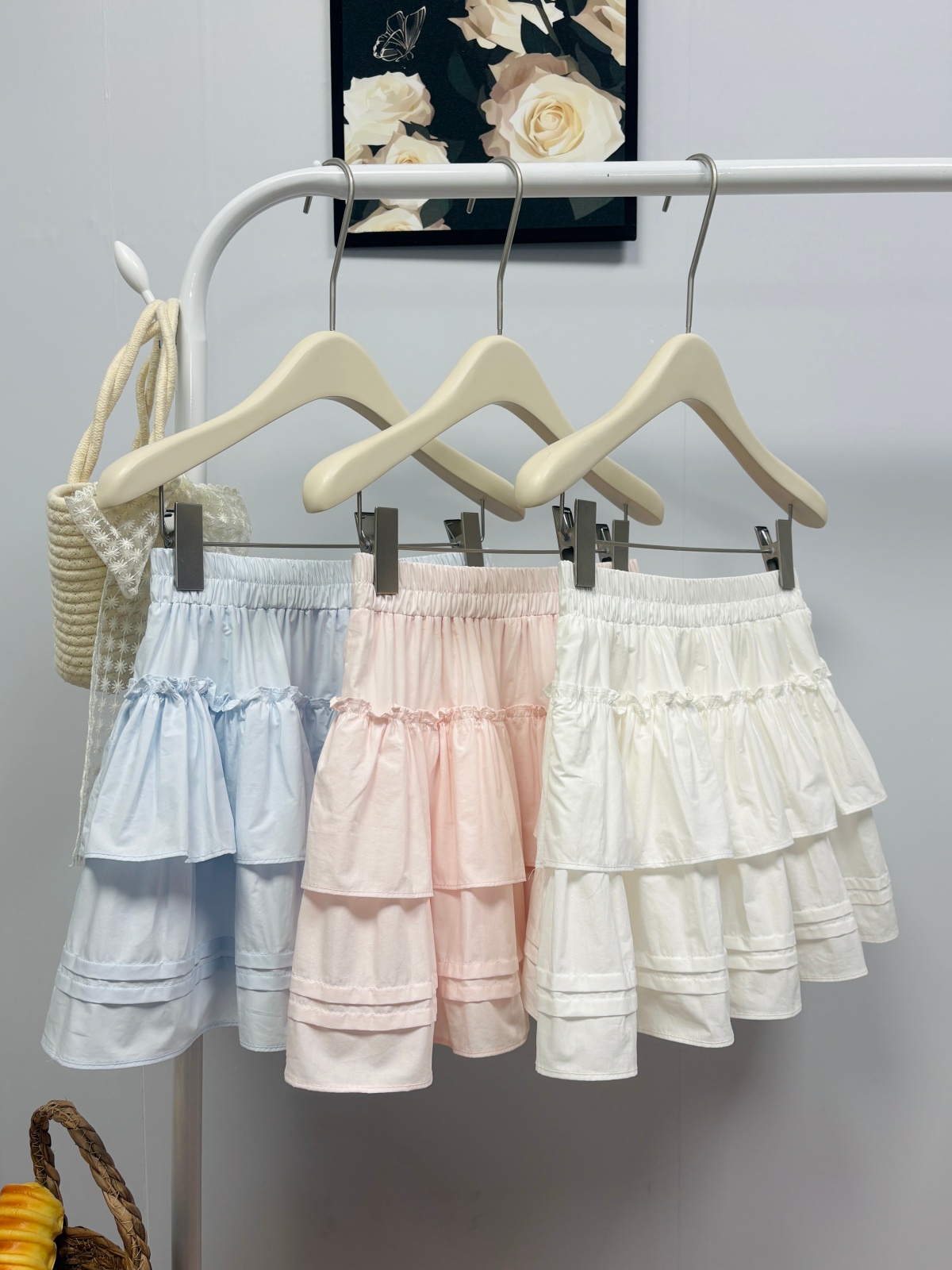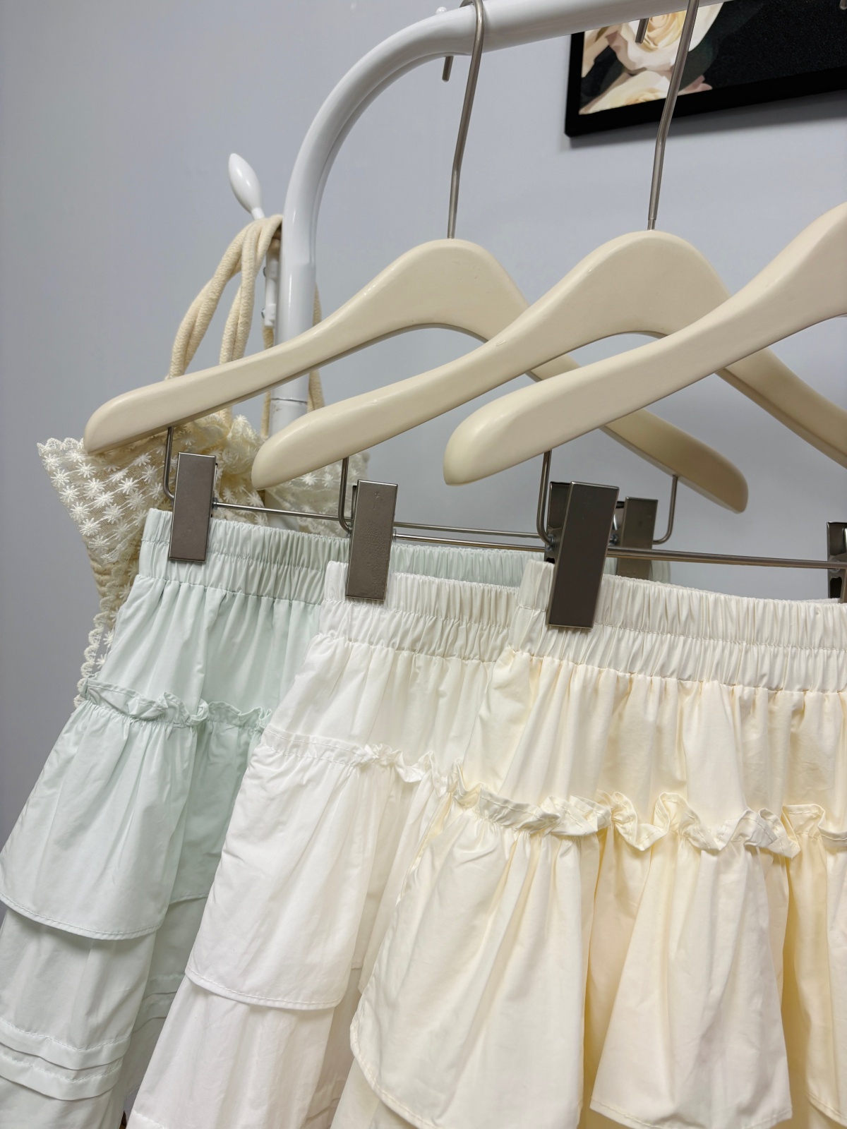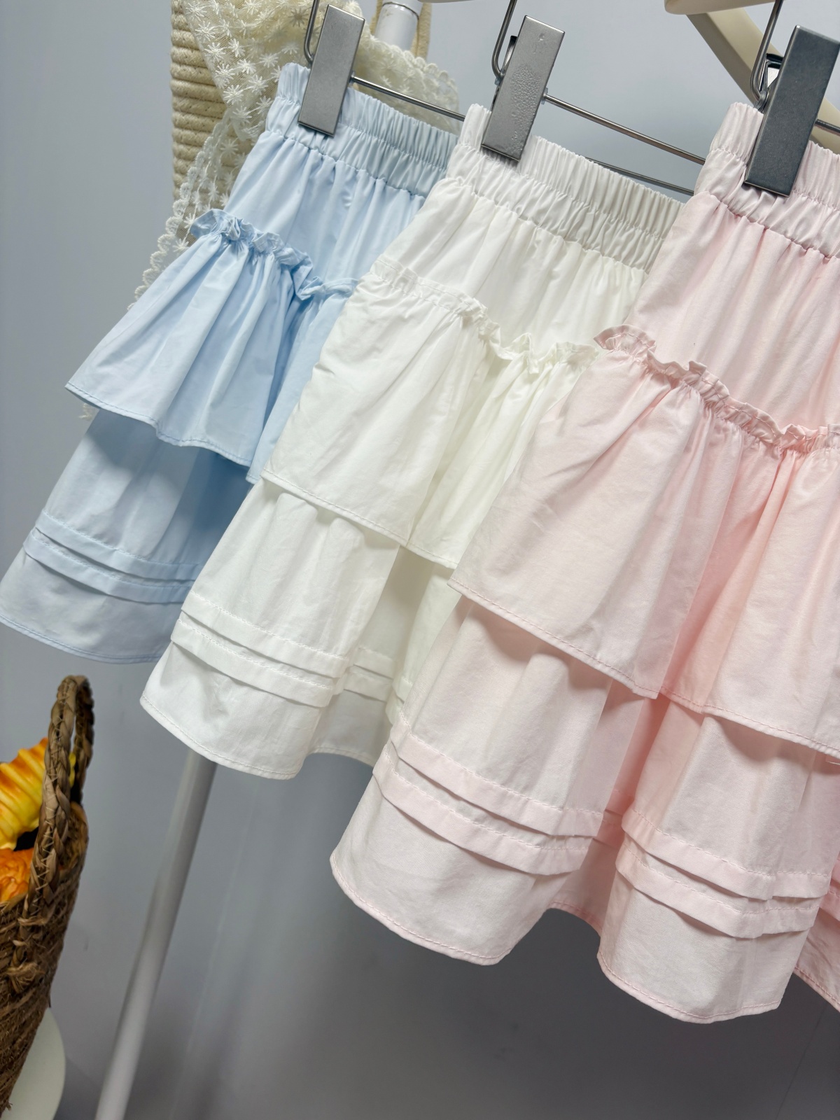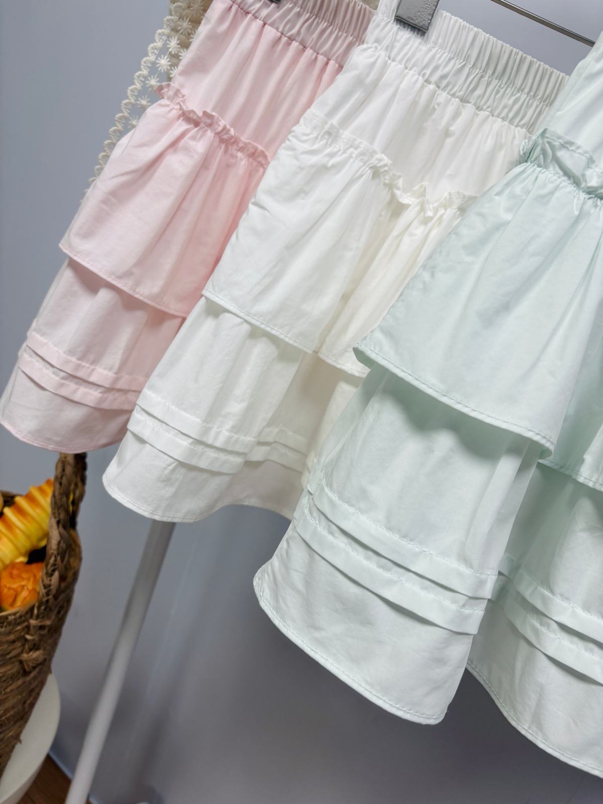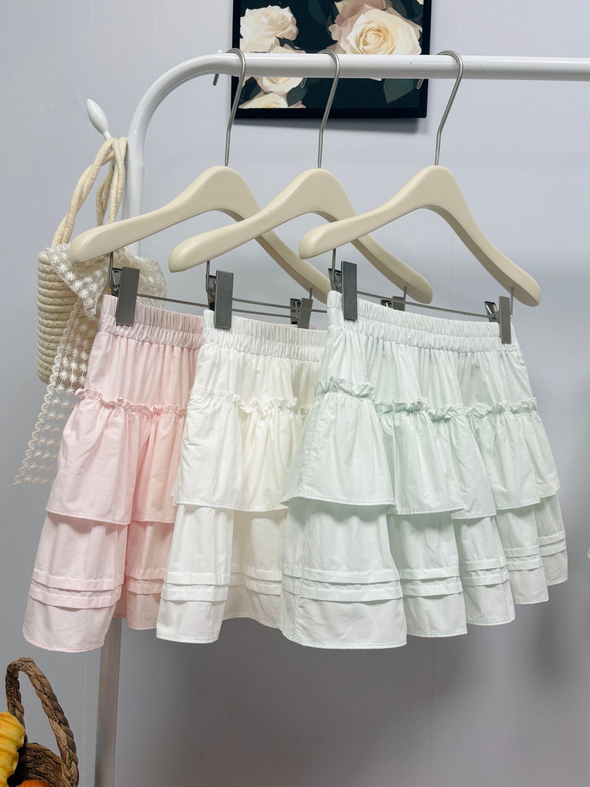 실사 여름 새로운 2026 한 부서 크림 반신 스커트 프릴 케이크 드레스 달콤함 연령 감소 면 미니 스커트