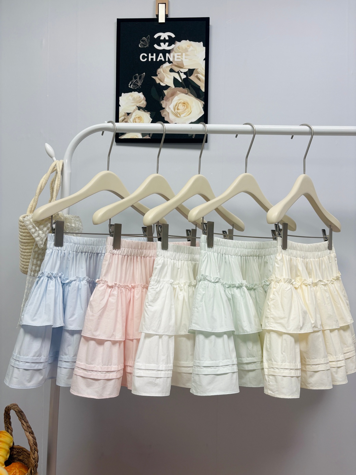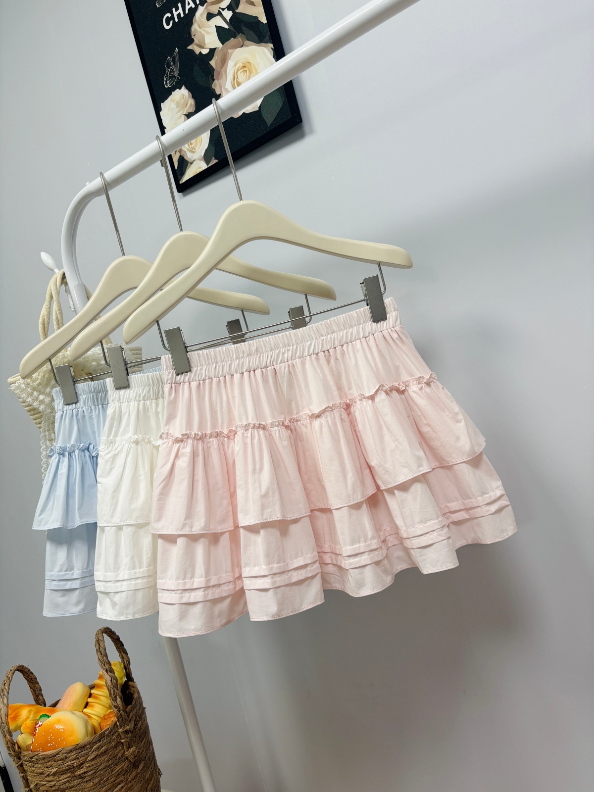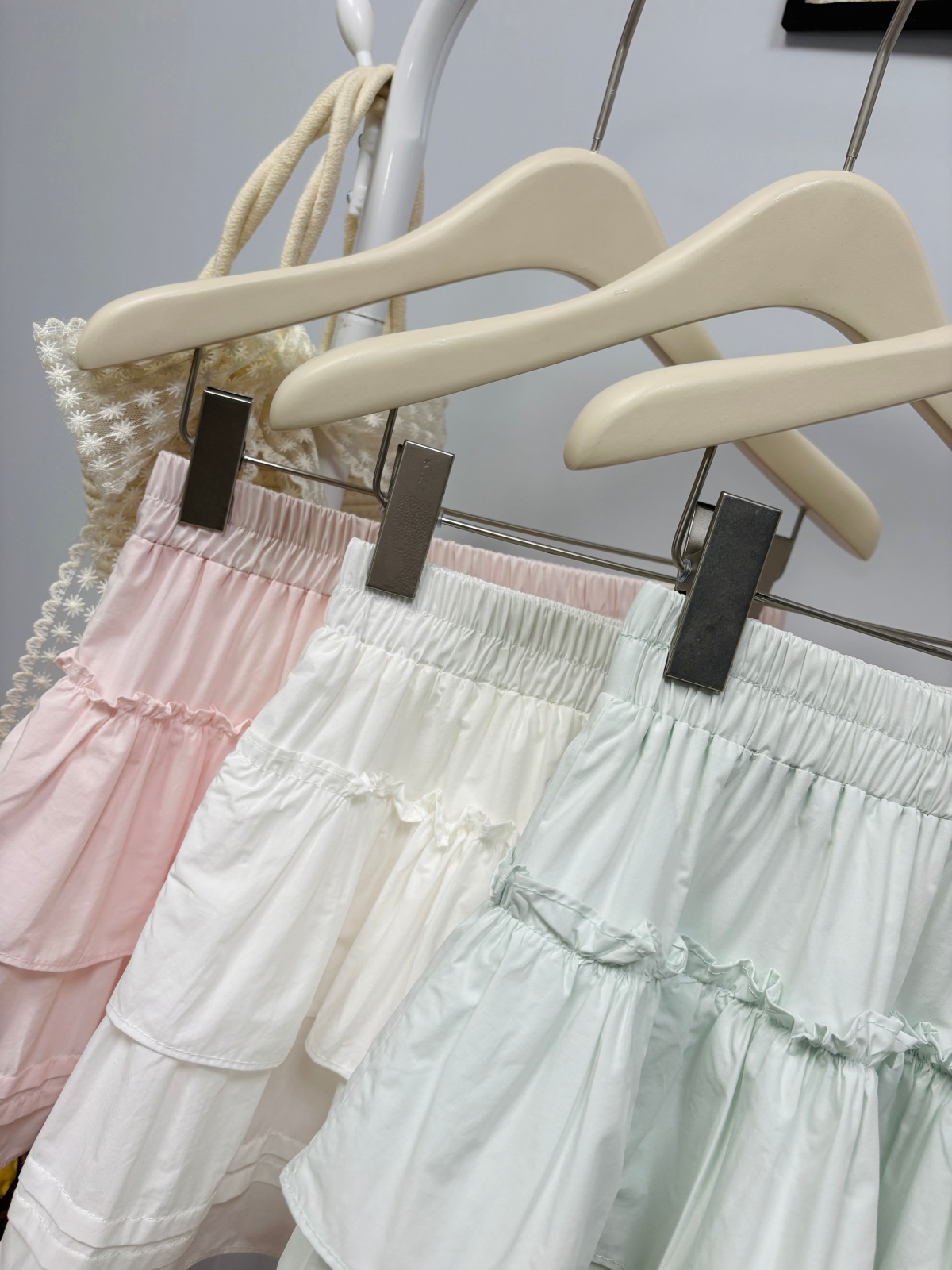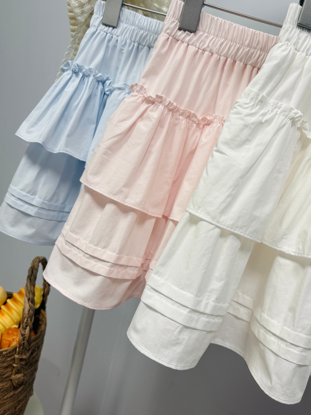 실사 여름 새로운 2026 한 부서 크림 반신 스커트 프릴 케이크 드레스 달콤함 연령 감소 면 미니 스커트