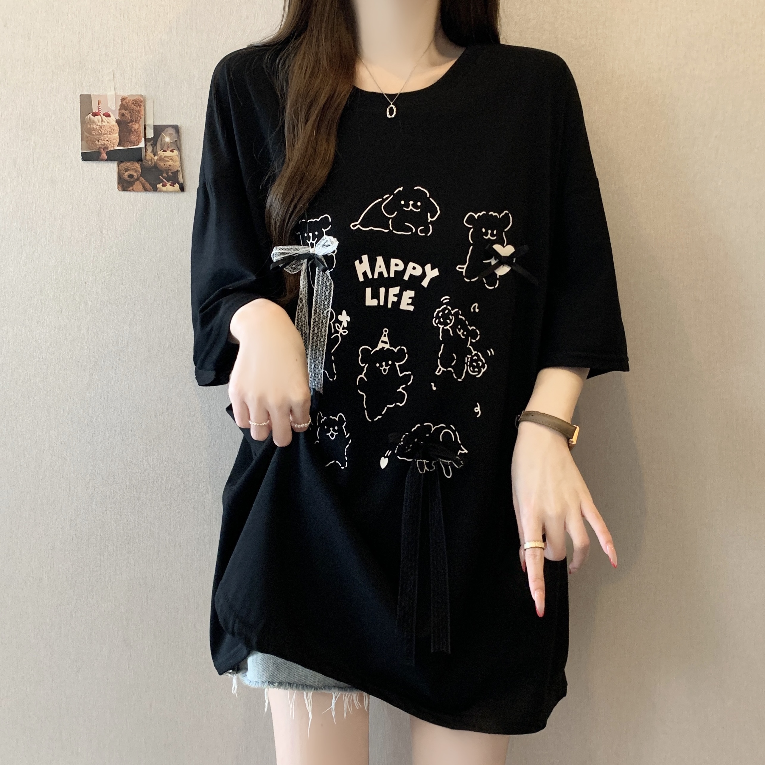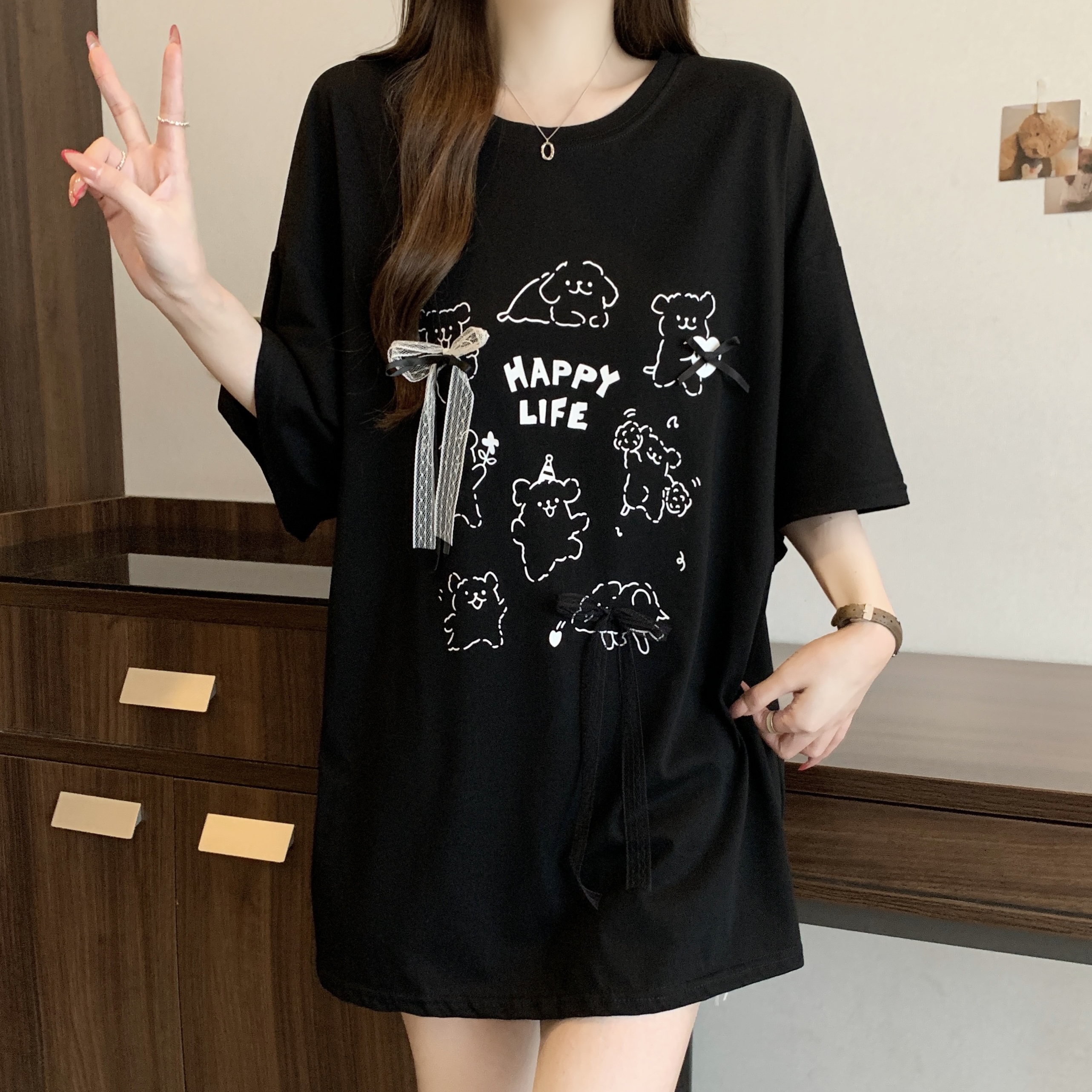 실사 빅 사이즈 지방 mm 재미있는 강아지 프린트 반팔 티셔츠 루즈핏 빅 보드 캐주얼 다용도 슬림해 보이는 맨위