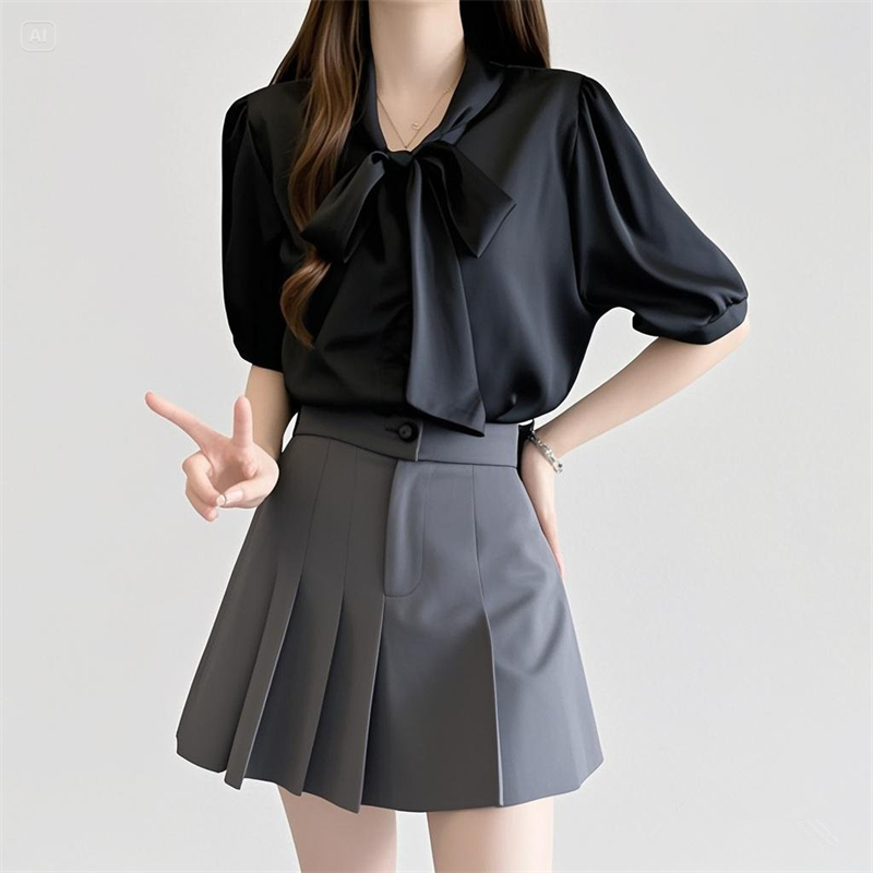 빅 사이즈 검정색 셔츠 세트 여성 2026 새로운 여름 폭발 작은 키 셔츠 다용도 반바지 투피스 세트