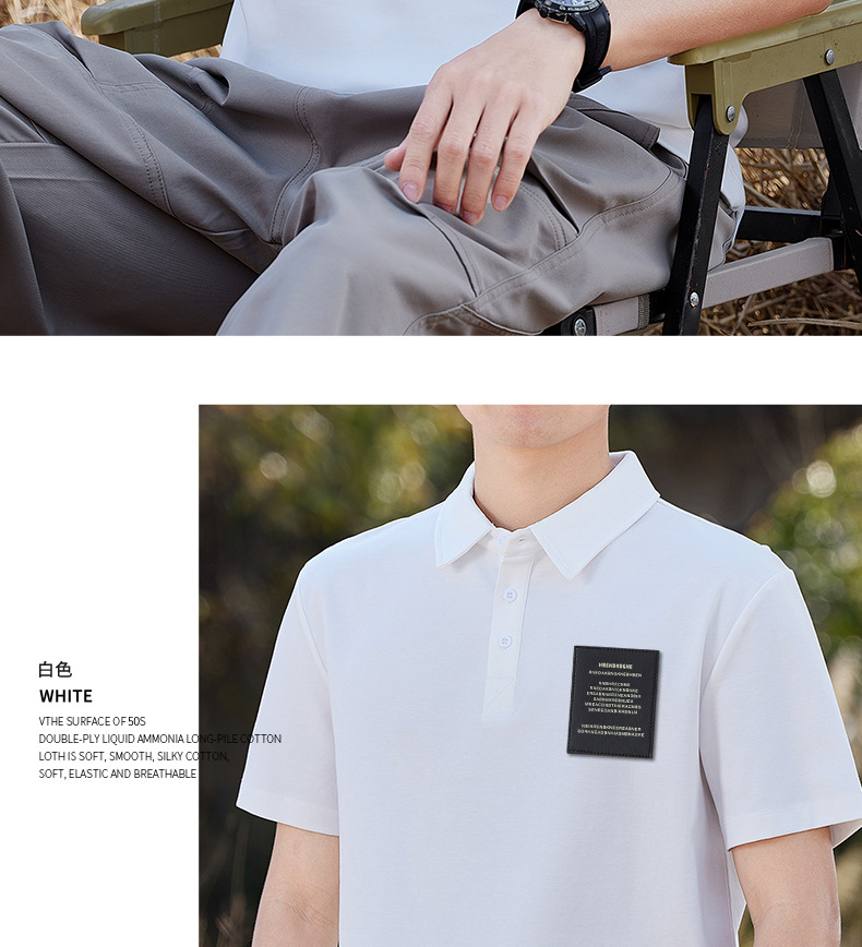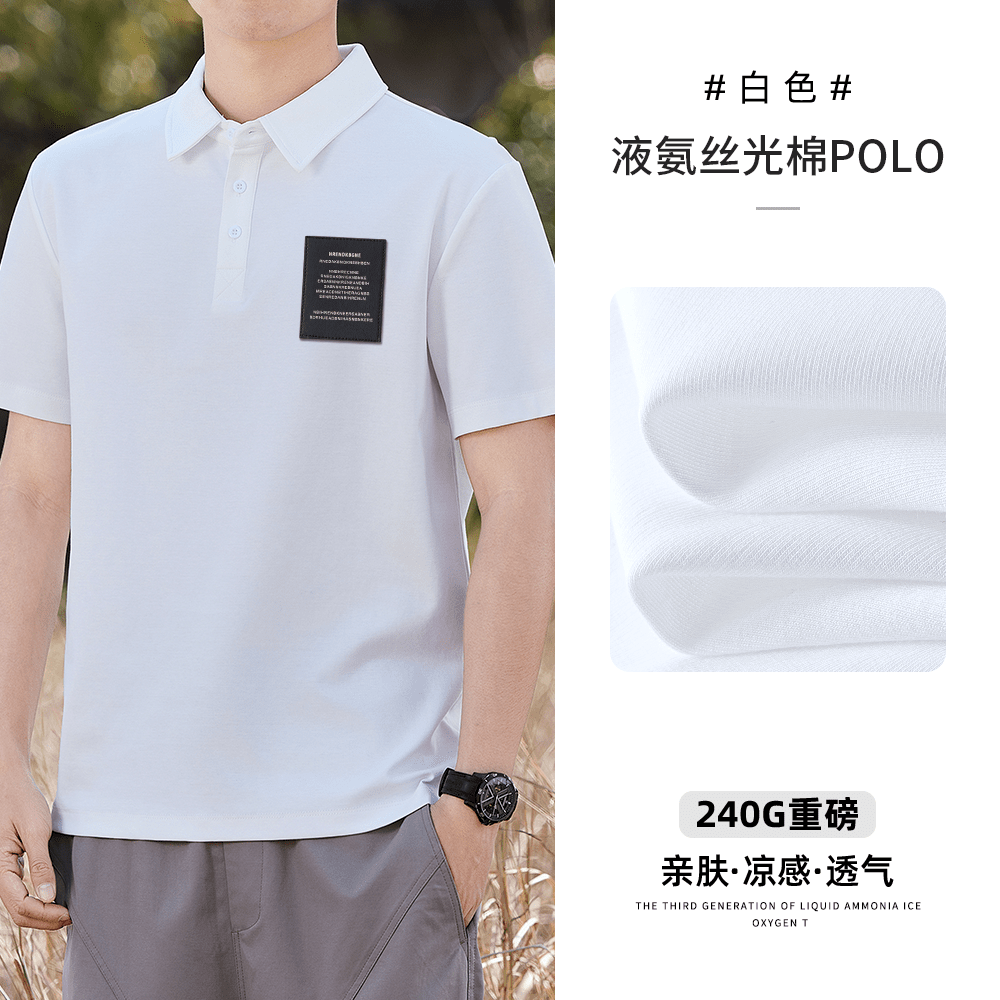 차가운 센스 240g 액 모 늄 실광택 코튼 POLO 셔츠 남자 여름 얼음 실크 폴로 칼라 반팔 티셔츠 화이트 고급 폴 셔츠