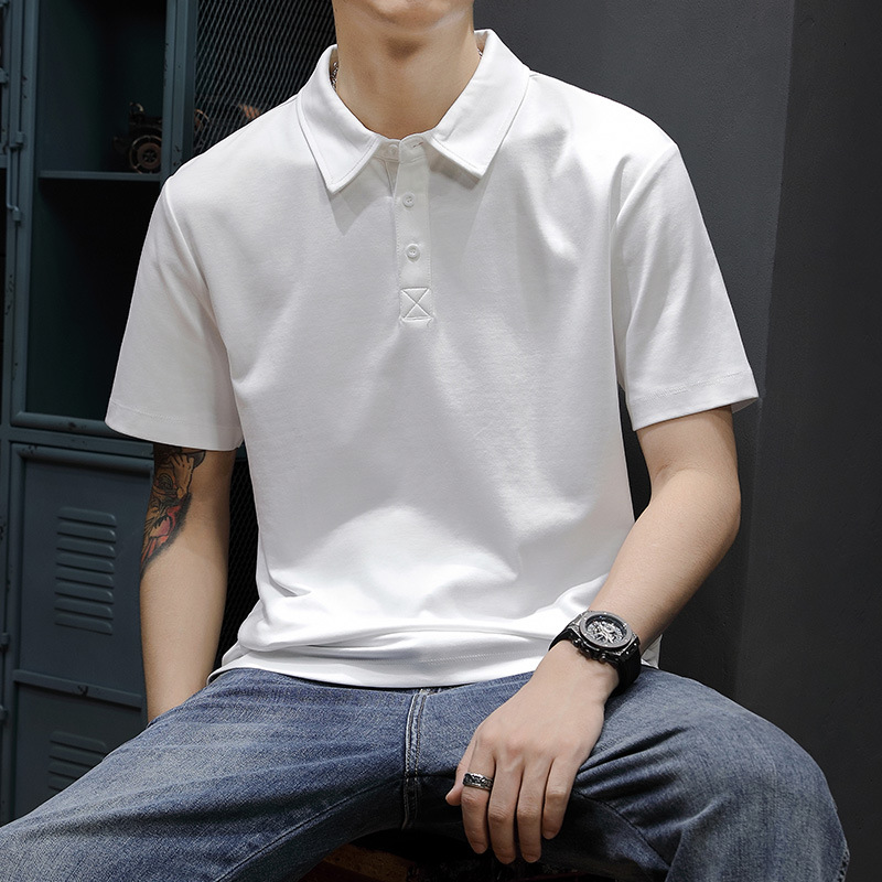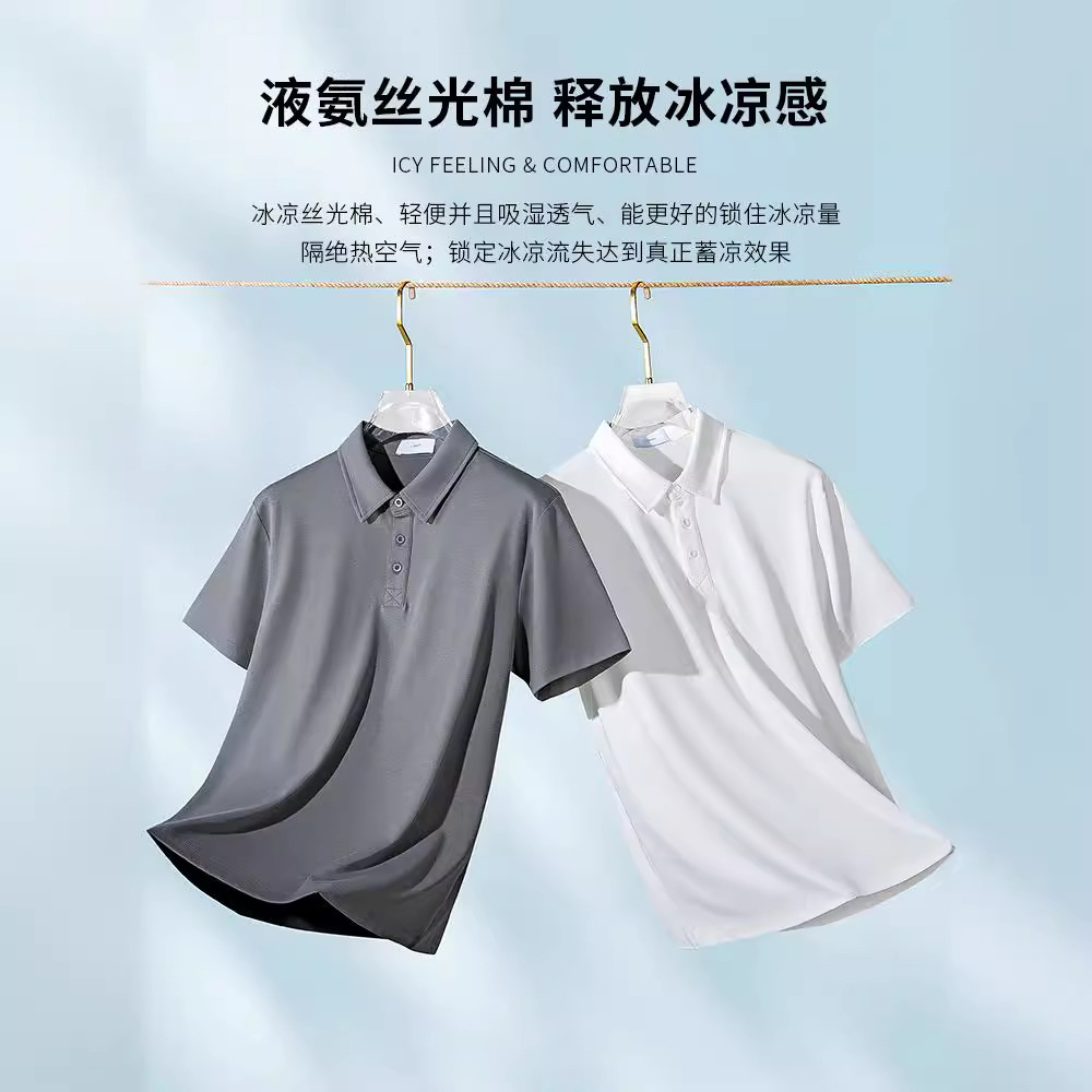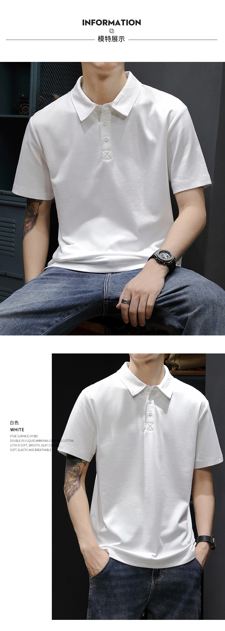 차가운 센스 240g 액 모 늄 실광택 코튼 POLO 셔츠 남자 여름 얼음 실크 폴로 칼라 반팔 티셔츠 화이트 고급 폴 셔츠