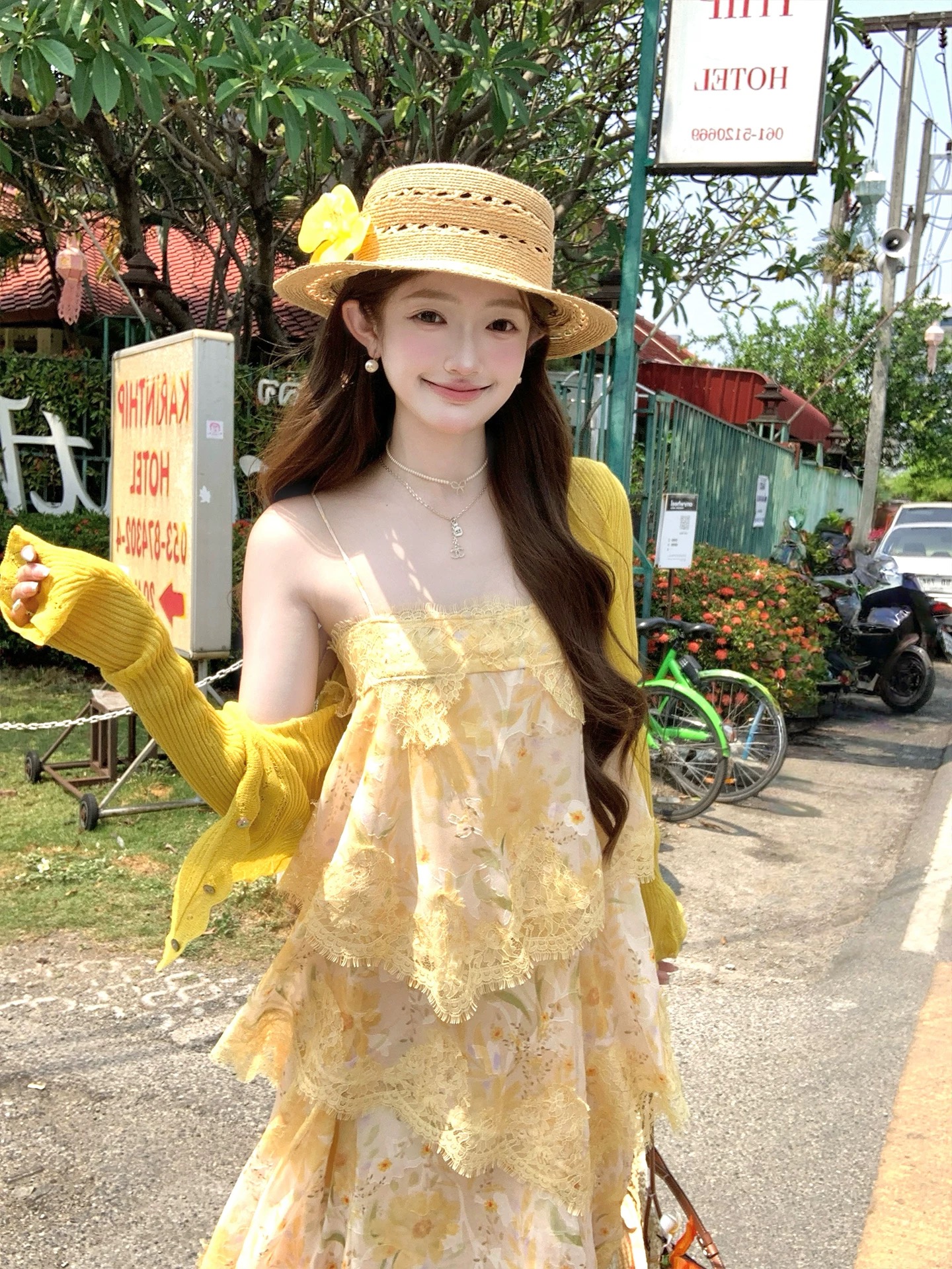 04 28 jmshopmiu 부서 교과서 자카드 구덩이 기사 니트 원피스 여성 V넥 레이스 캐미솔