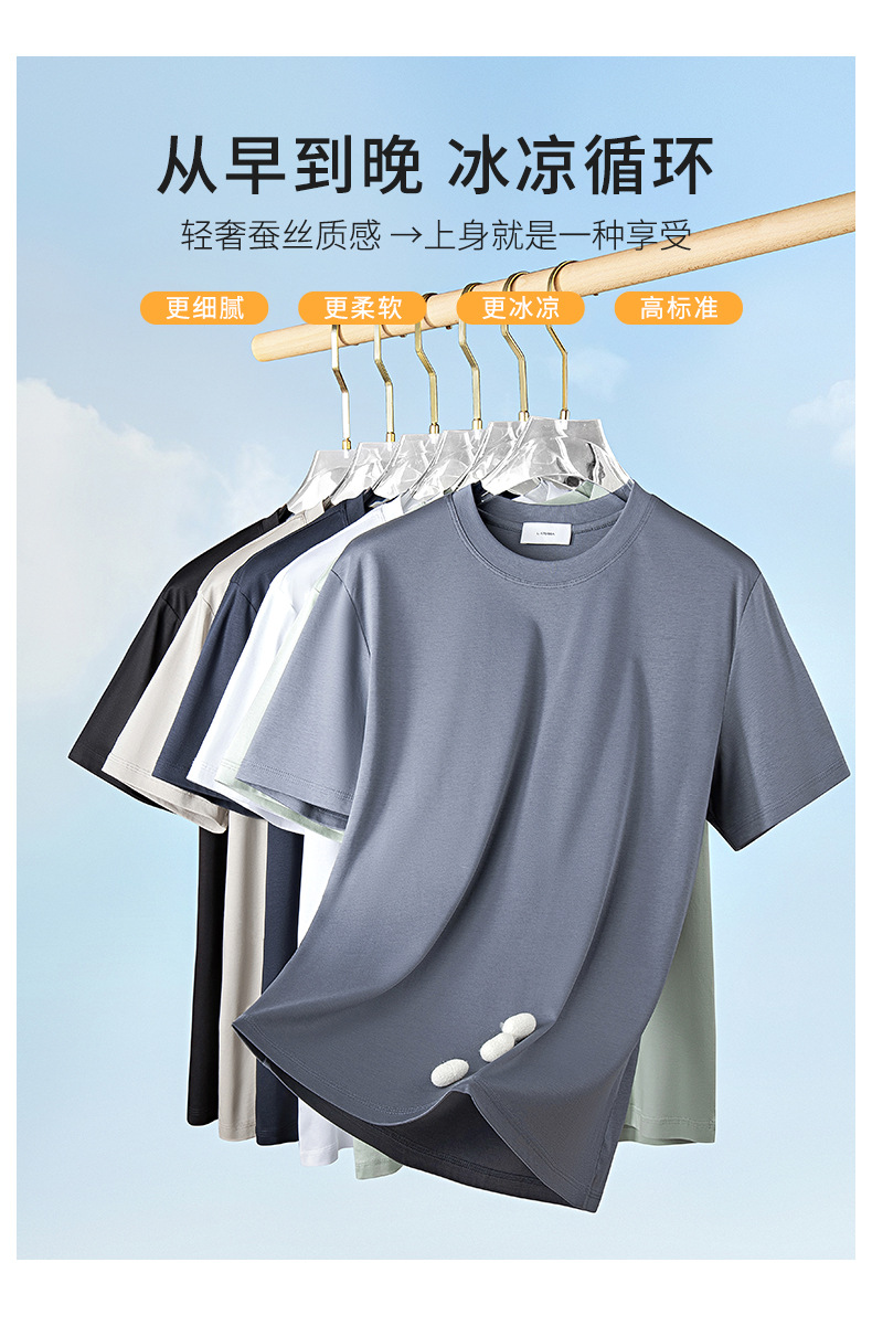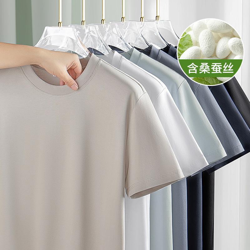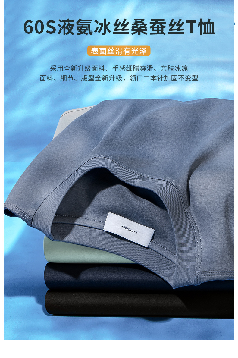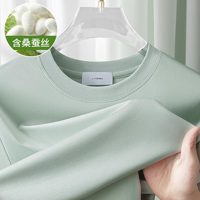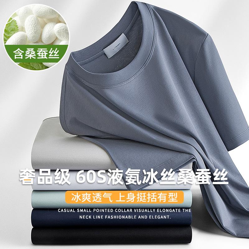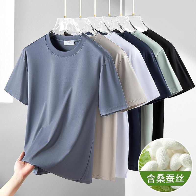 뽕나무 누에 실크 얼음 실크 반팔 티셔츠 청년 여름 루즈핏 차가운 센스 고급 센스 반소매 얇은 스타일 속도 말라 죽다 의류 남자