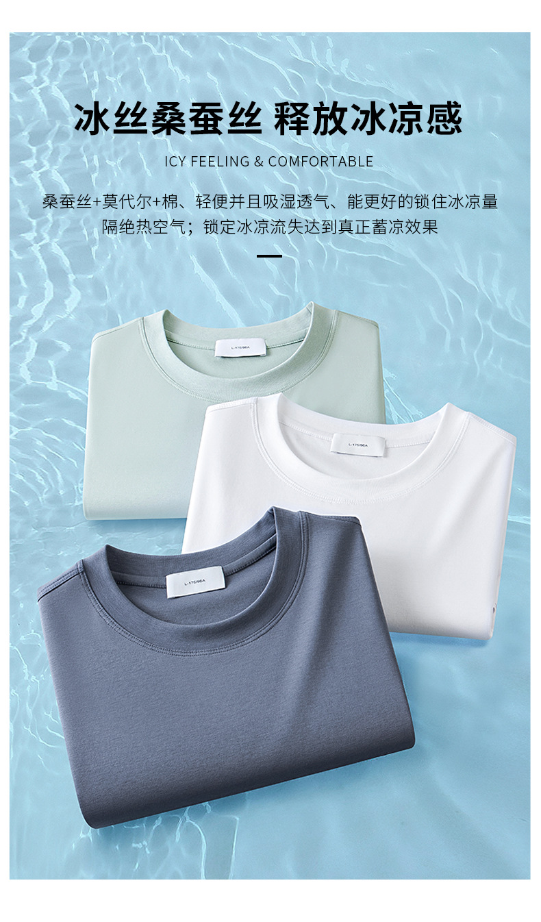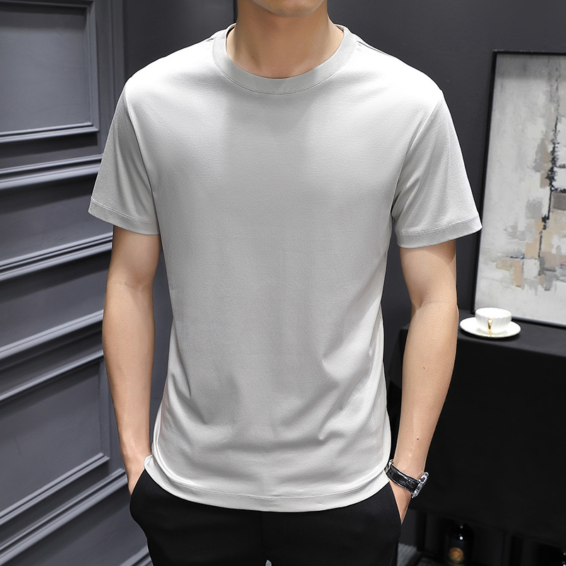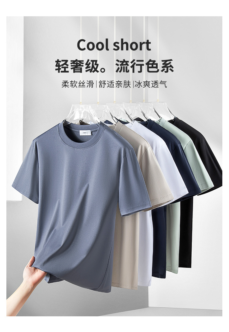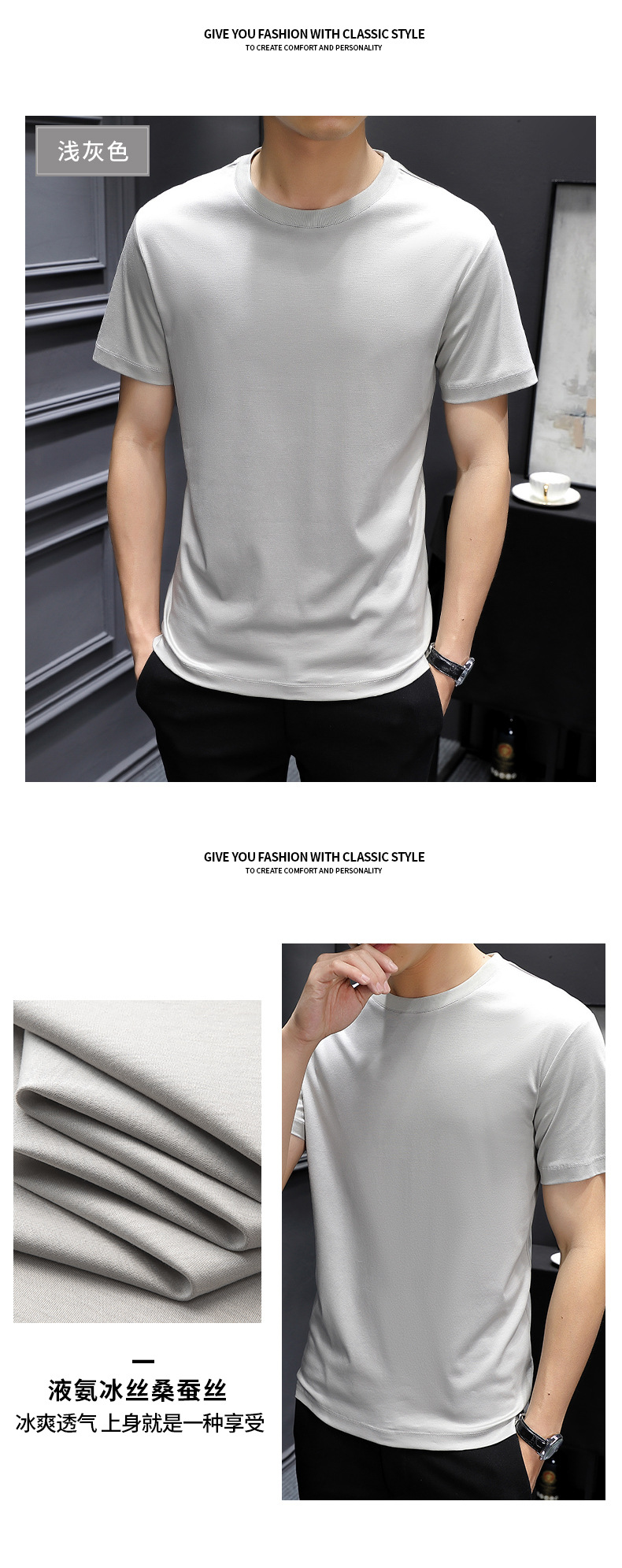 뽕나무 누에 실크 얼음 실크 반팔 티셔츠 청년 여름 루즈핏 차가운 센스 고급 센스 반소매 얇은 스타일 속도 말라 죽다 의류 남자