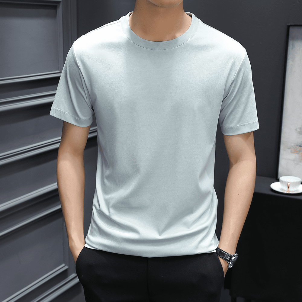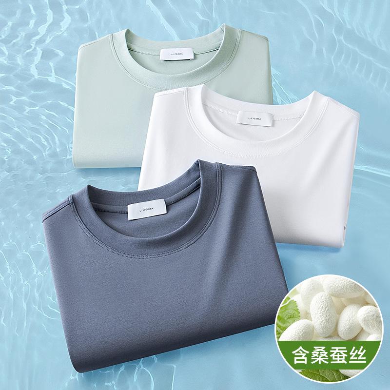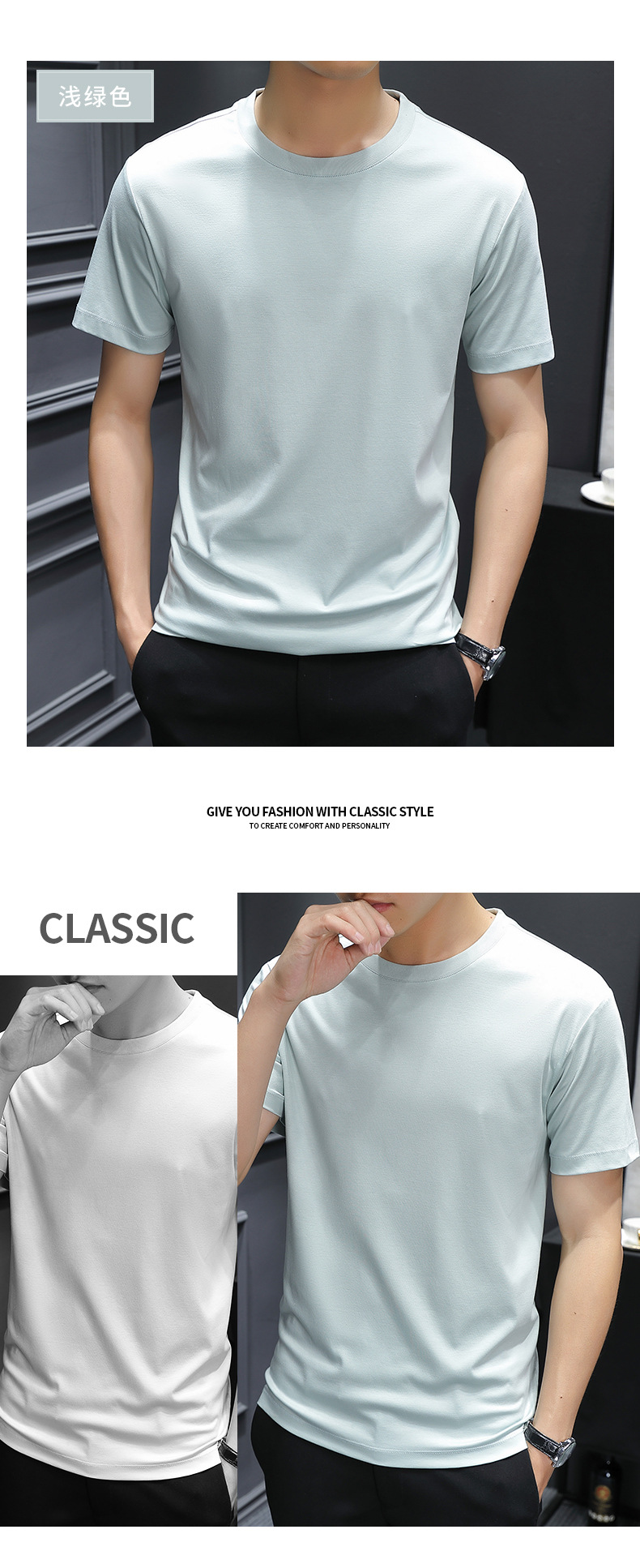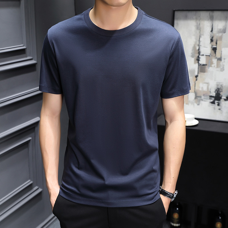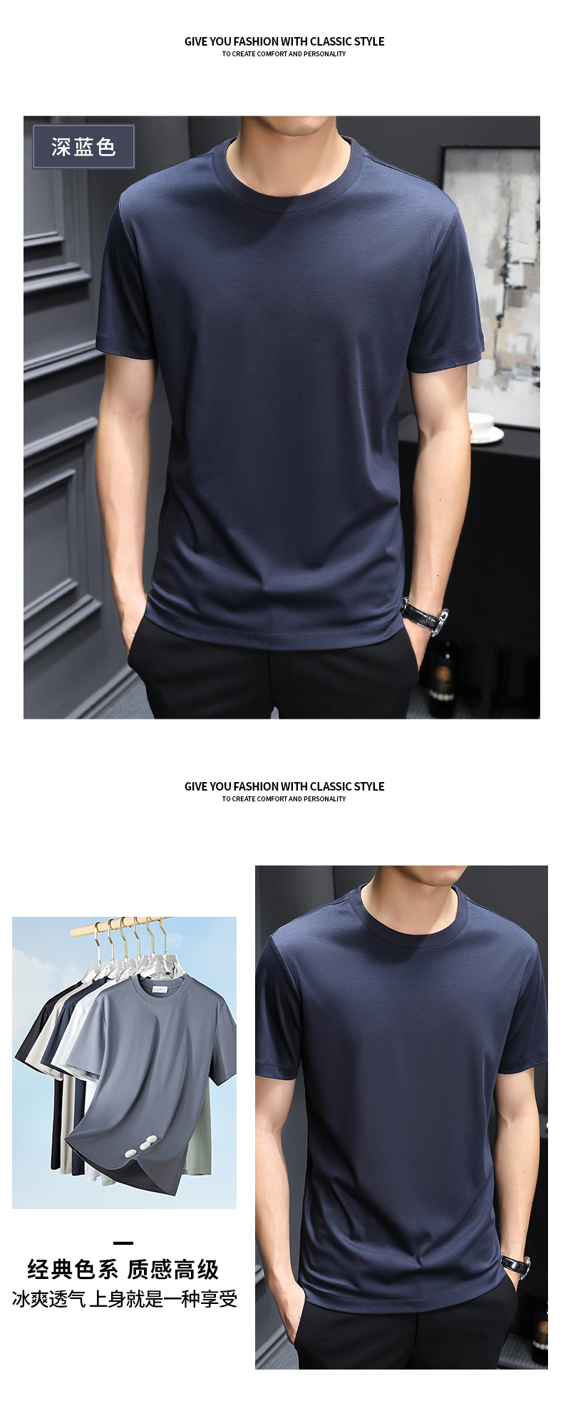 뽕나무 누에 실크 얼음 실크 반팔 티셔츠 청년 여름 루즈핏 차가운 센스 고급 센스 반소매 얇은 스타일 속도 말라 죽다 의류 남자