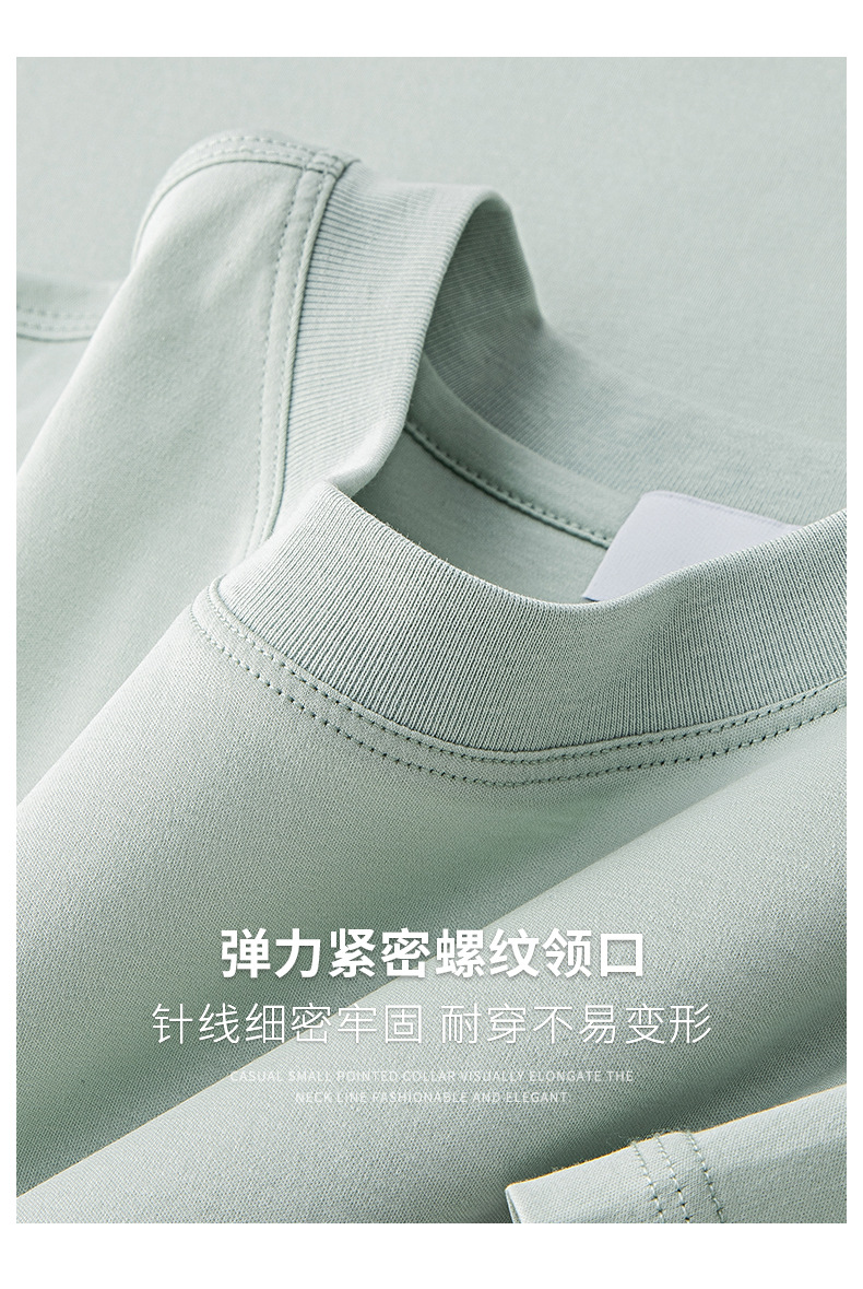 210g 신강 길다 플러시 면 T 반팔 남자 여름 순면 신축성 반소매 셔츠 동정