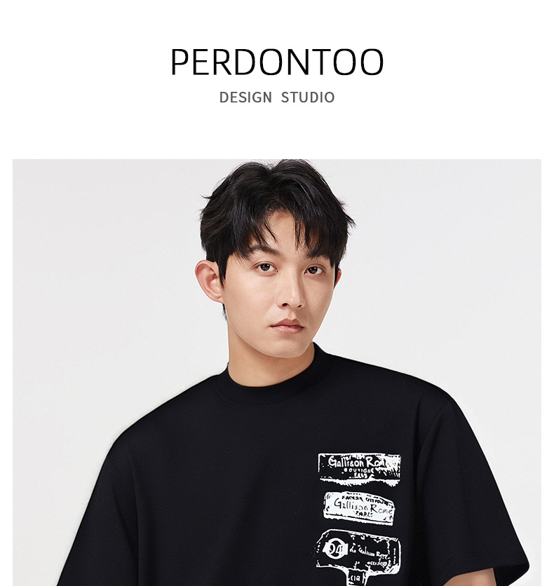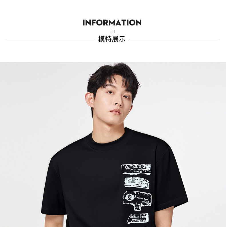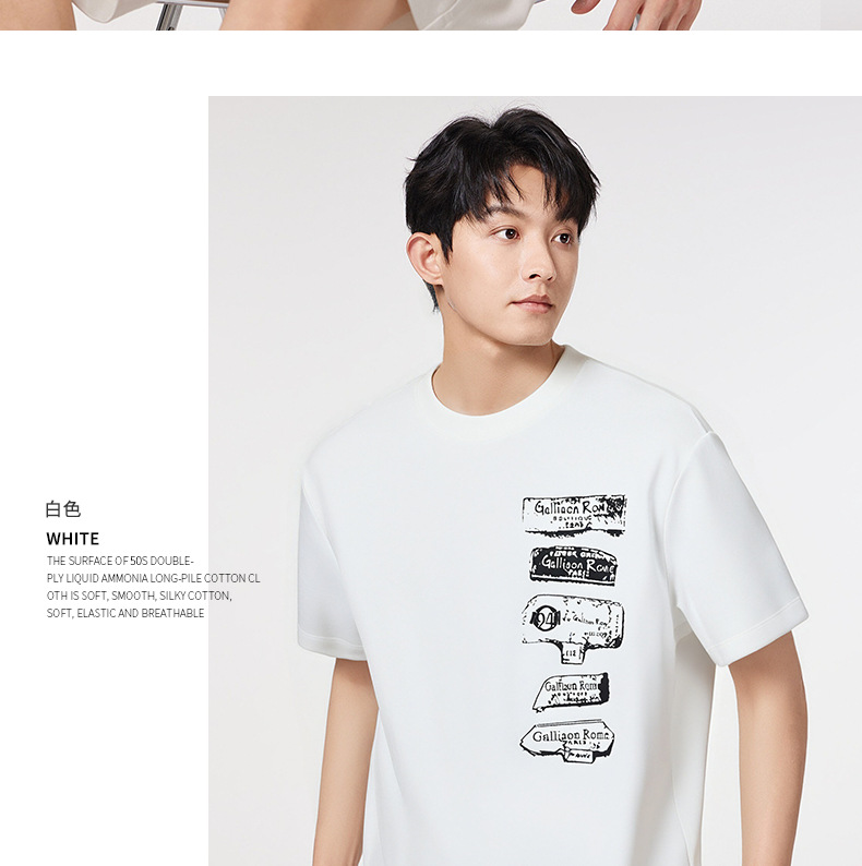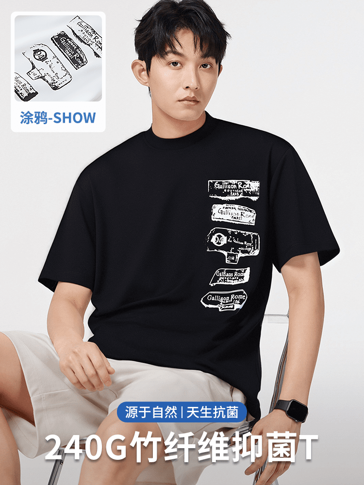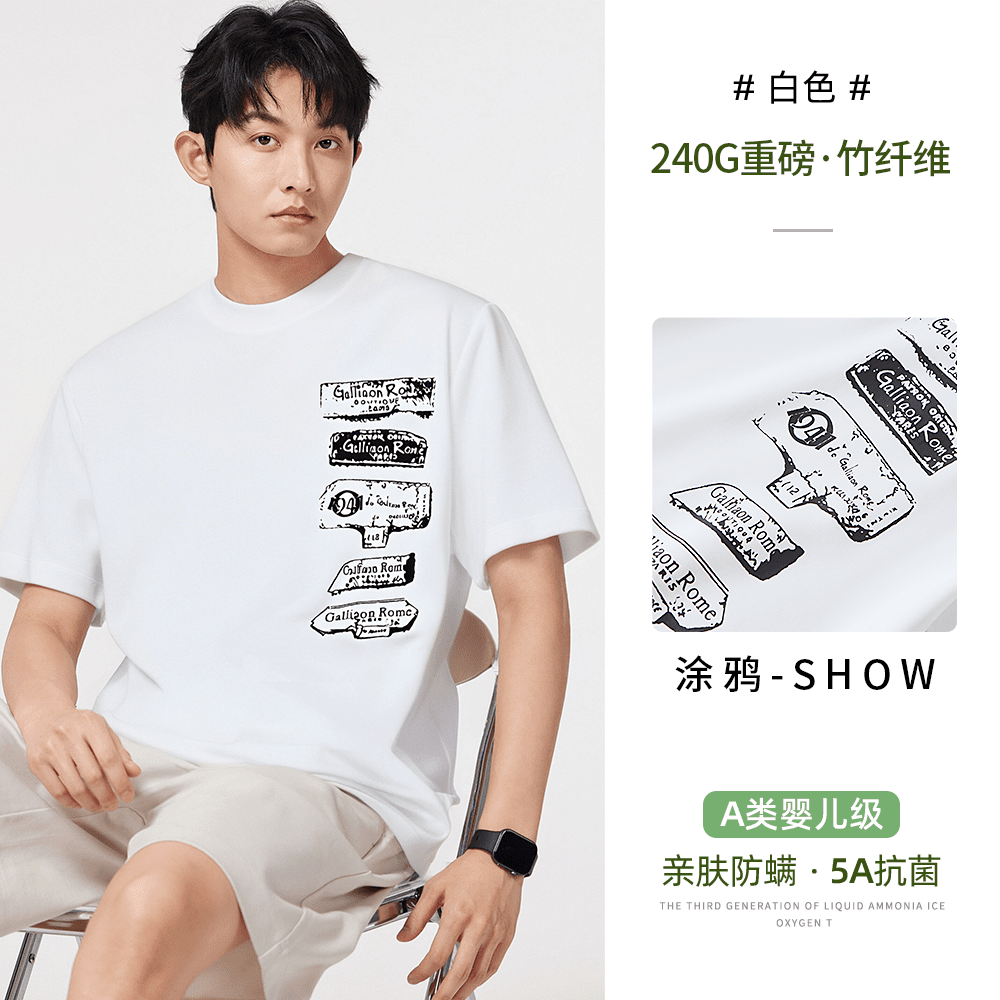 창의성 낙서 프린트 240g 차가운 센스 대나무 섬유 반팔 남성 티셔츠 여름 루즈핏 라운드 넥 맨위 서비스