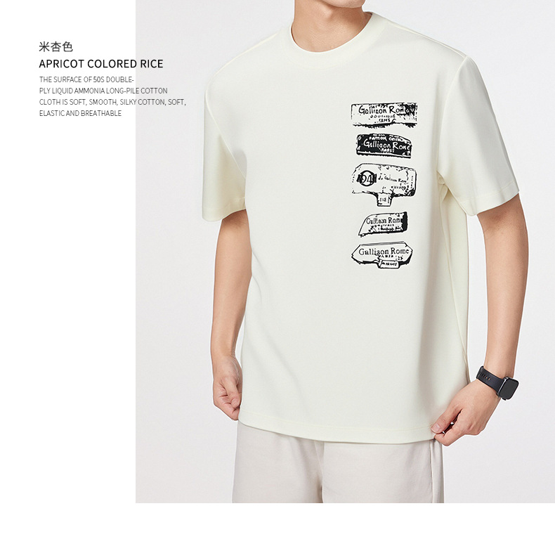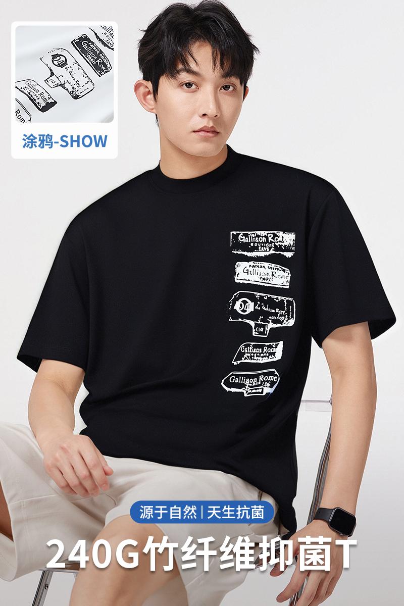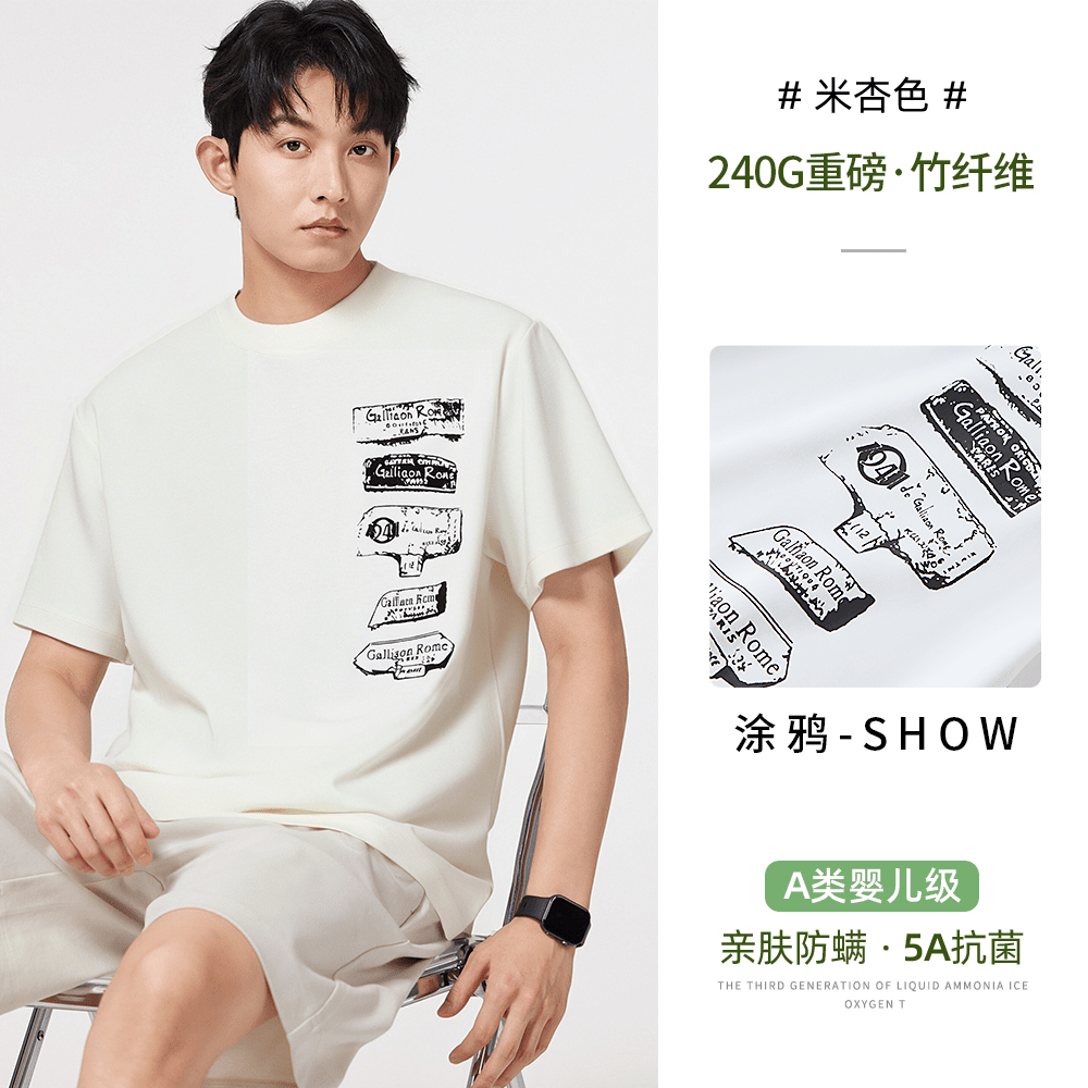 고급 항균 차가운 센스 반팔 티셔츠 남자 여름 240g 대나무 섬유 루즈핏 빛 얇은 얼음 실크 조수 브랜드 프린트 맨위