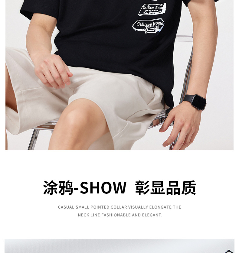 80s 감기 센스 액 모 늄 실광택 코튼 반팔 티셔츠 남자 빛 럭셔리 차가운 센스 캐주얼 맨위 서비스