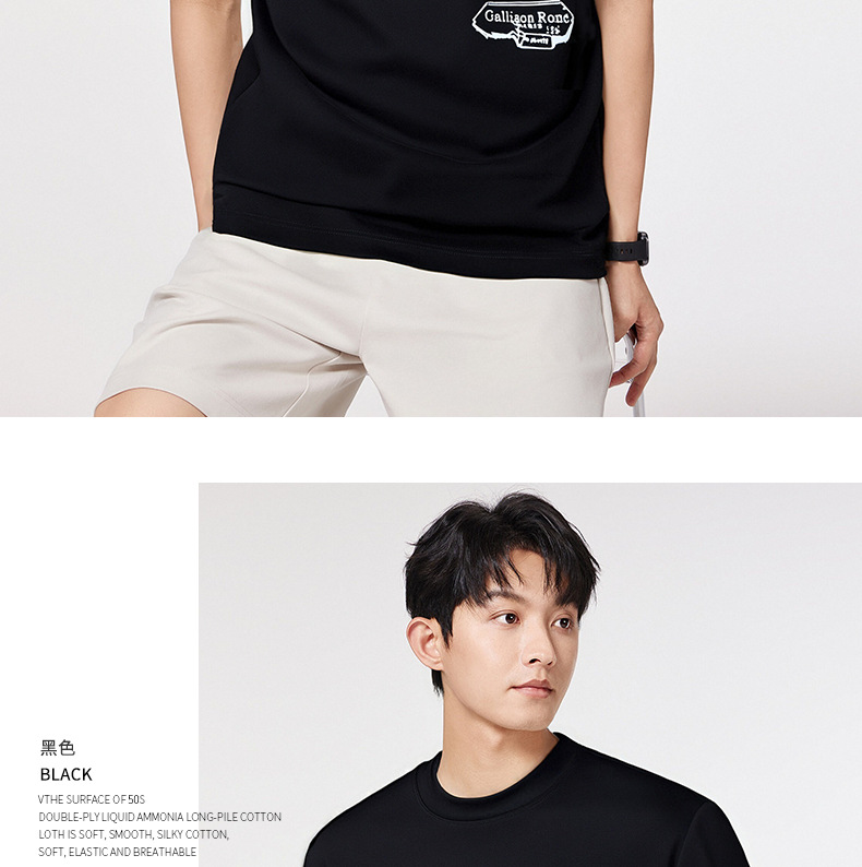 210g 신강 길다 플러시 면 T 반팔 남자 여름 순면 신축성 반소매 셔츠 동정