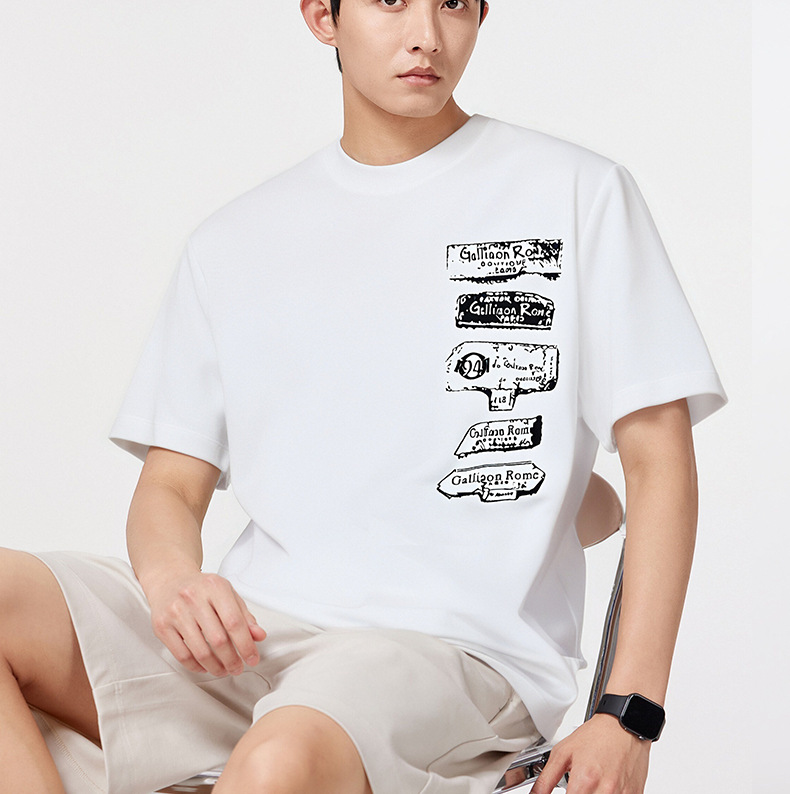 차가운 센스 무거운 g 면 240t 프린트 셔츠 남자 5a 여름 반팔 항균 루즈핏 패션 대나무 섬유 동정 2025