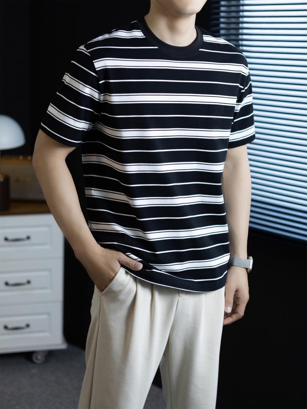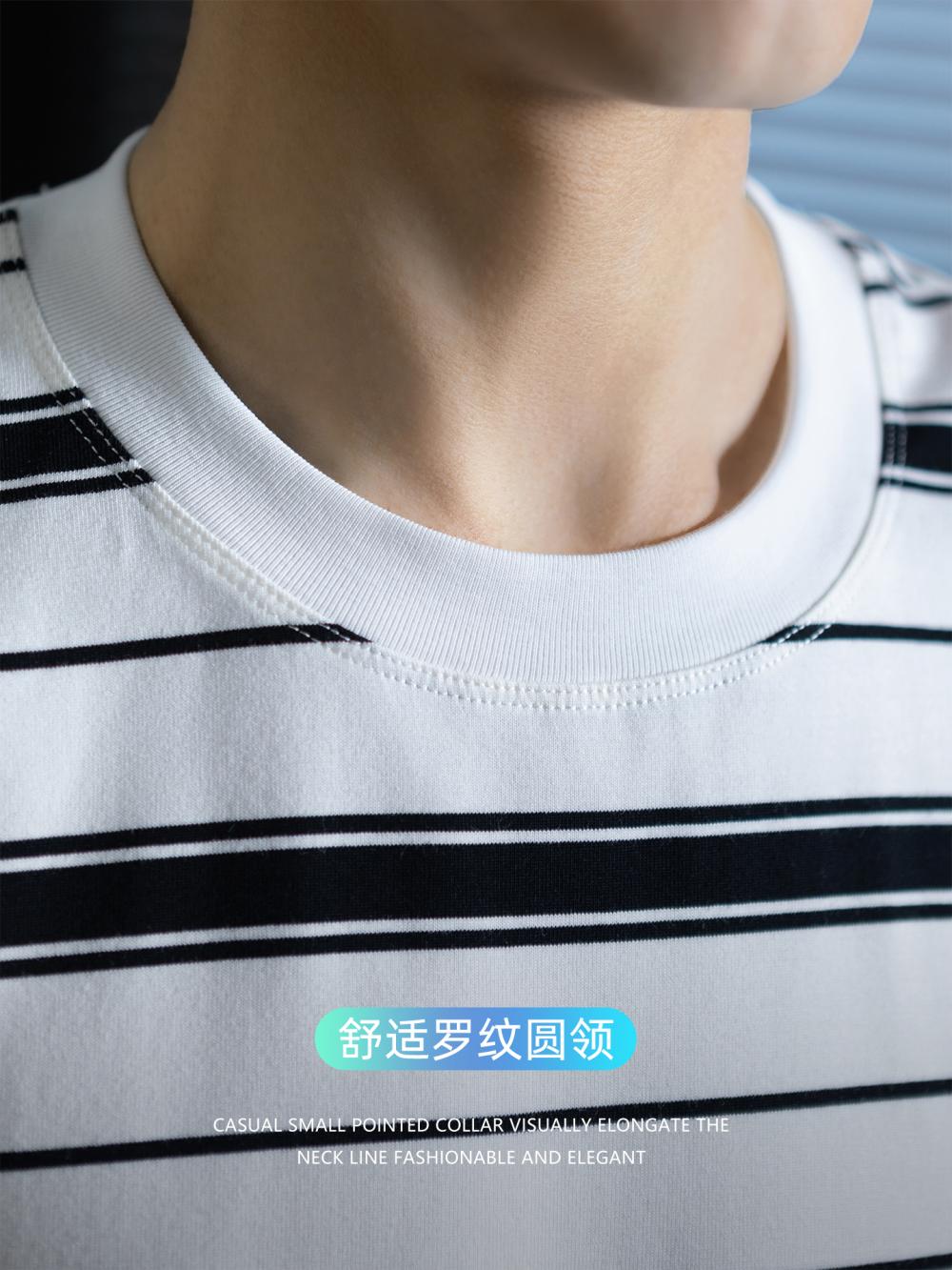 210g 신강 길다 플러시 면 T 반팔 남자 여름 순면 신축성 반소매 셔츠 동정