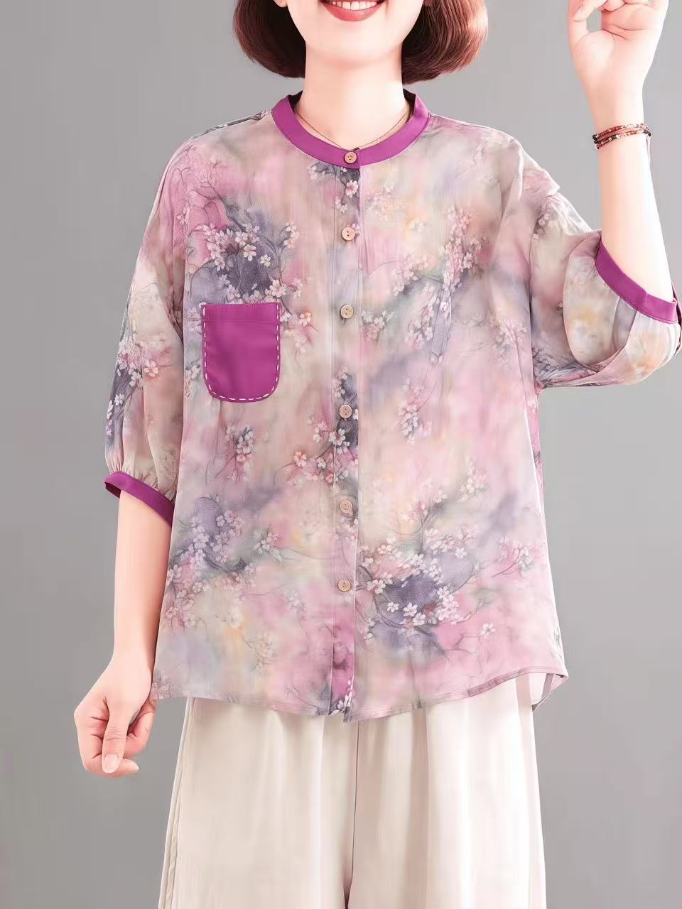 2026 문예 국풍 맨위 꽃무늬 반 스커트 품격 세트 여름 새로운
