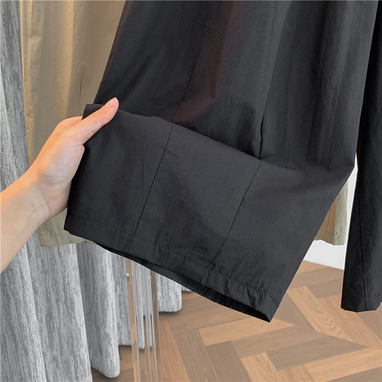 실사 봄 여름 새로운 한국 스타일 루즈핏 슬림해 보이는 디자인 센스 배색 볼륨 측면 와이드 레그 팬츠 스트레이트 팬츠