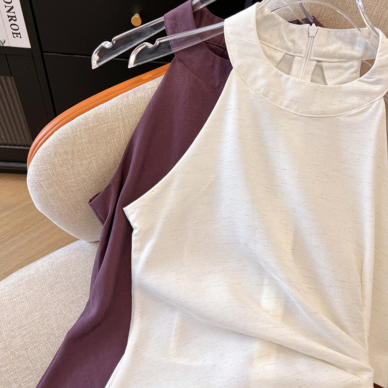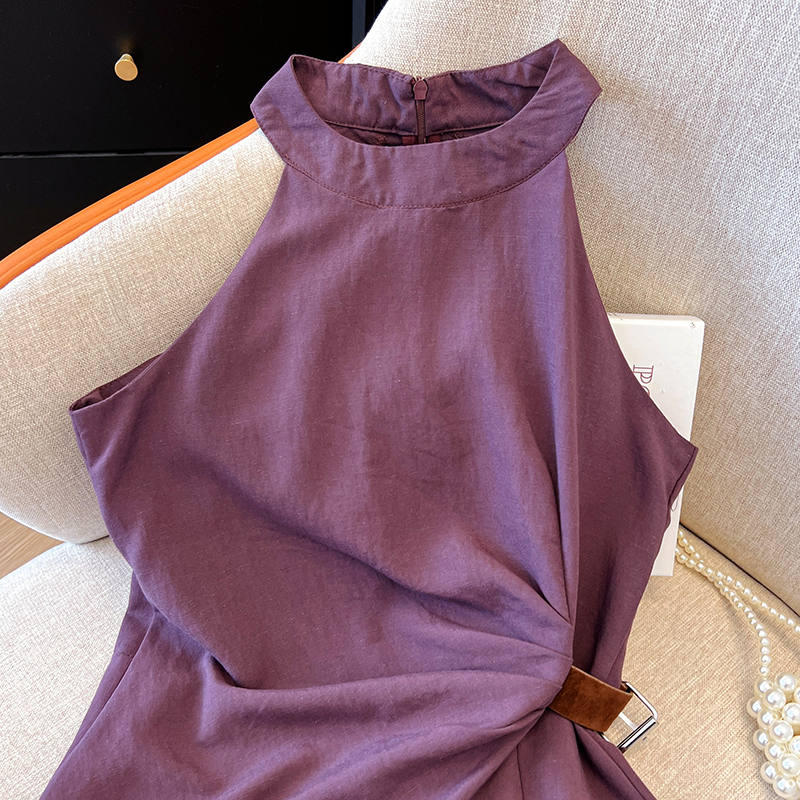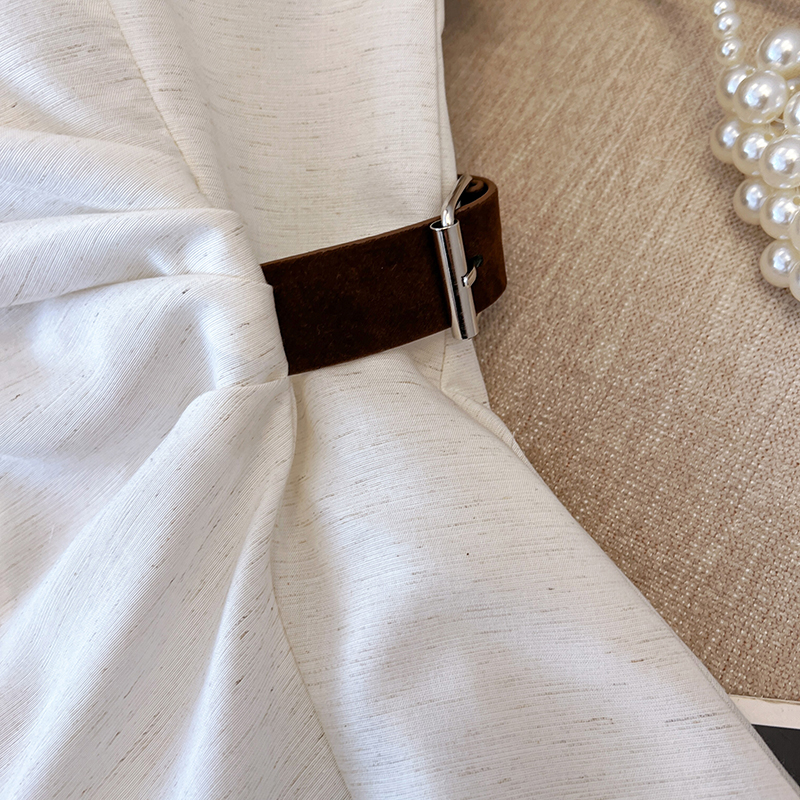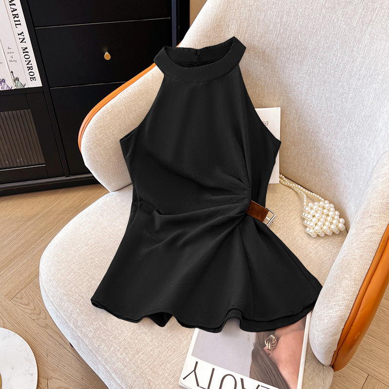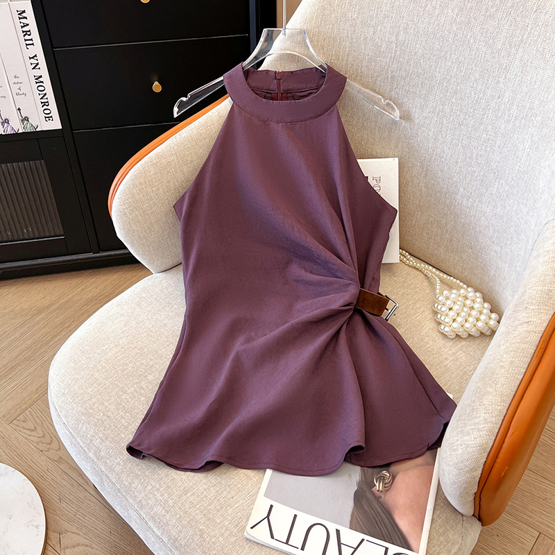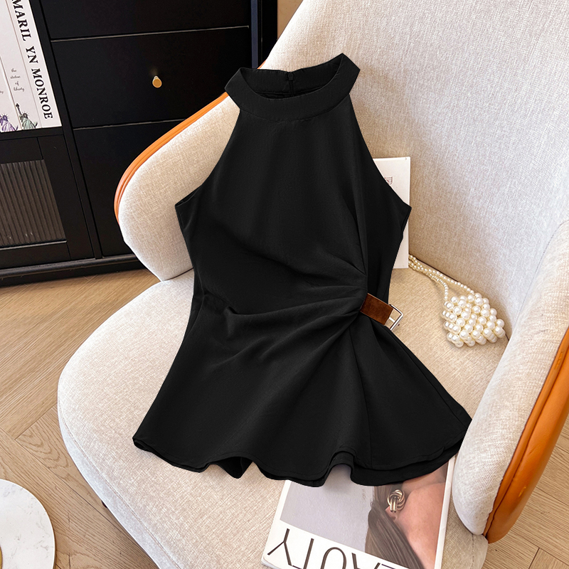 2026 여름 새로운 품격 고급 센스 V넥 측면 부서 가죽 버클 허리 수축 조끼 여성 디자인 민소매 맨위