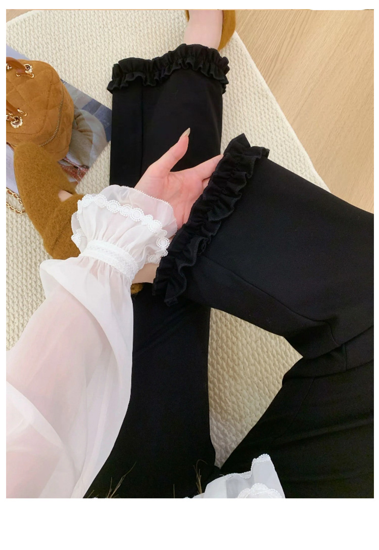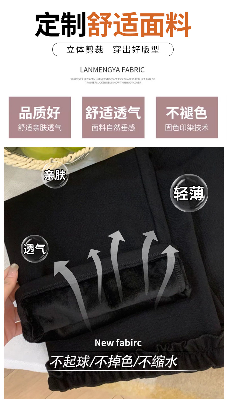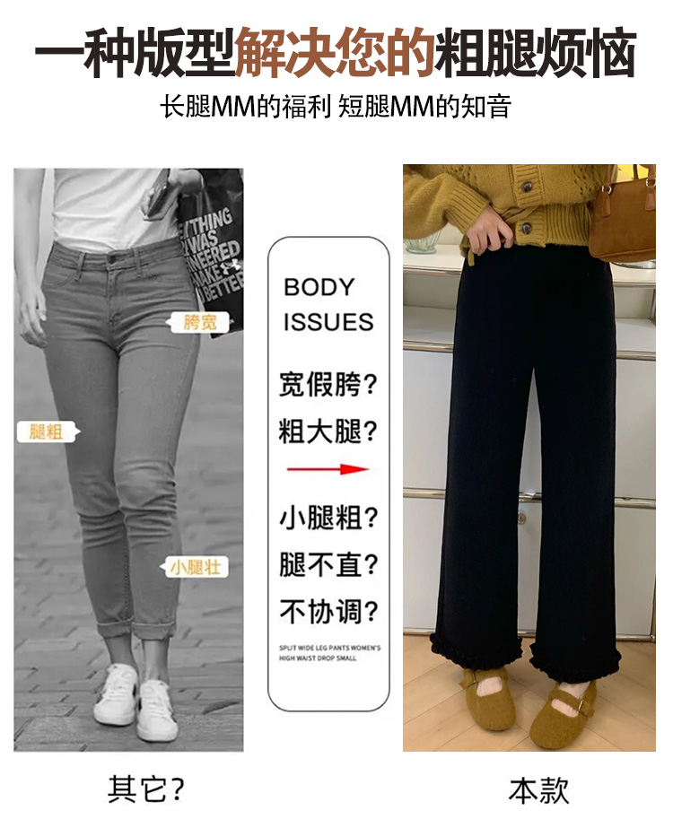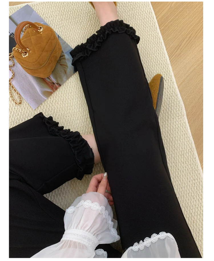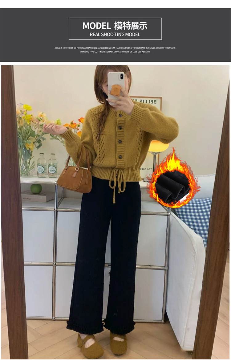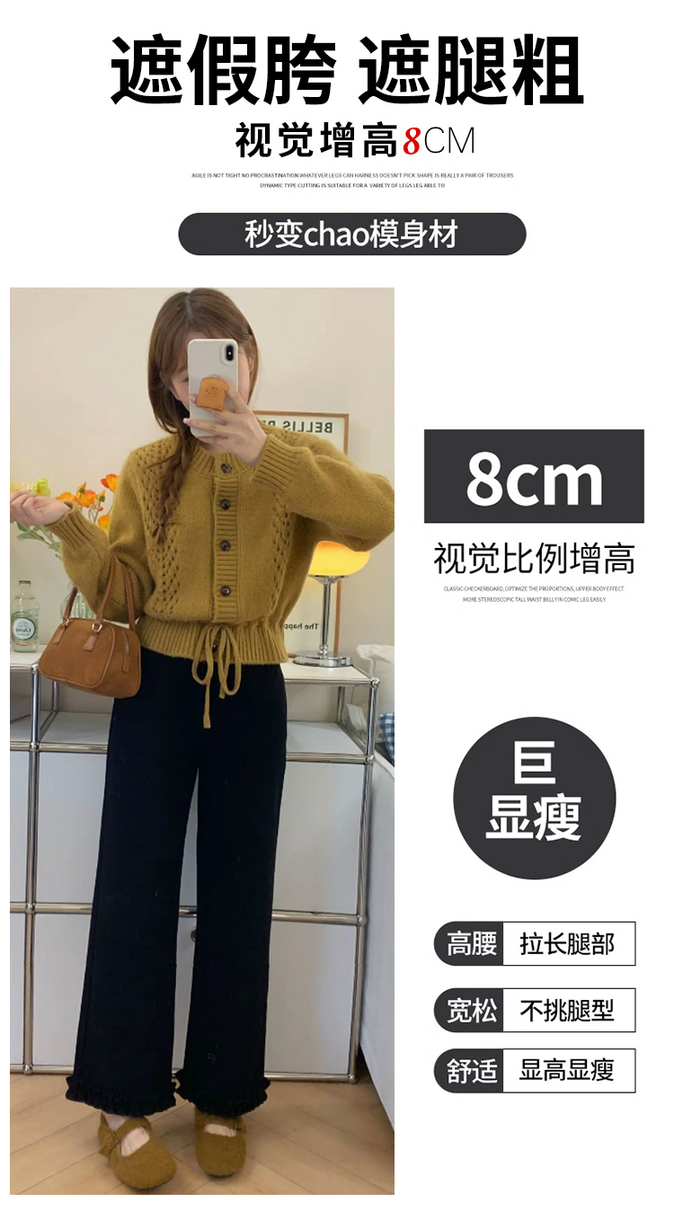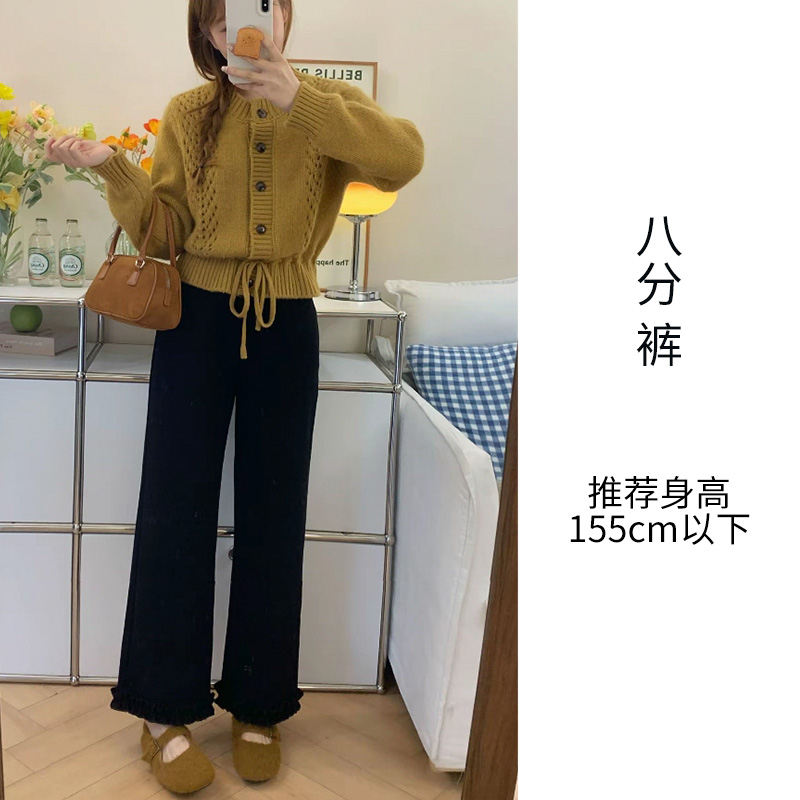 검정색 프릴 캐주얼 바지 여성 가을 겨울 털이 있고 두꺼운 작은 키 와이드 레그 팬츠 하이웨이스트 루즈핏 벽오동 바지