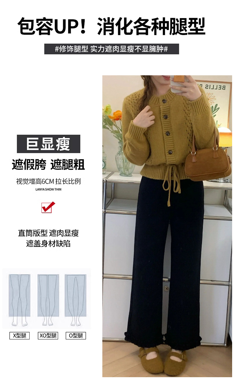 실사 2025 가을 겨울 털이 있는 공기 알몸의 센스 패치워크 와이드 레깅스 바지 가을 다용도 루즈핏 스트레이트 팬츠 긴 바지