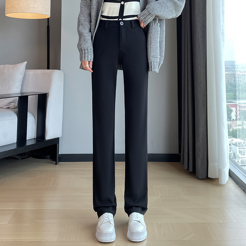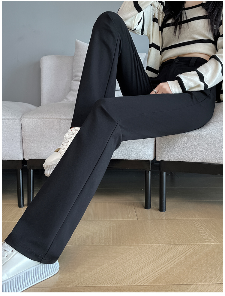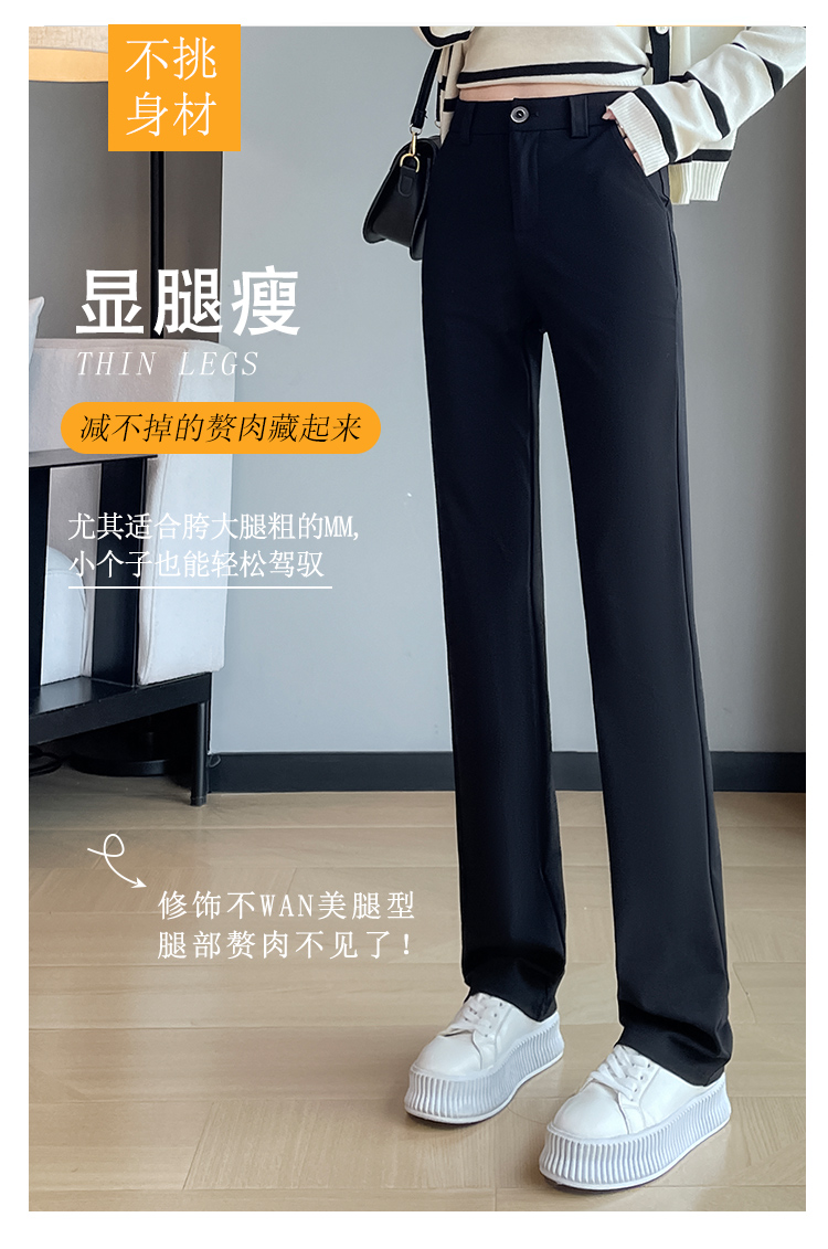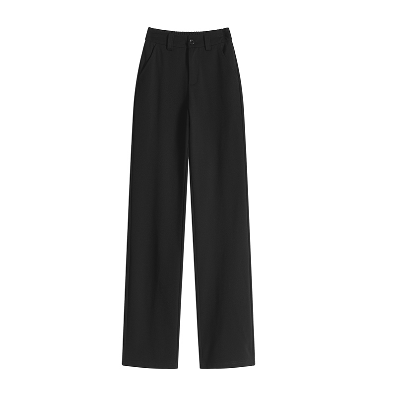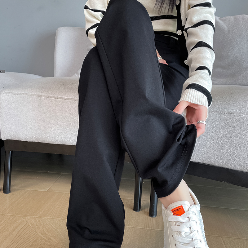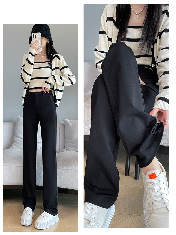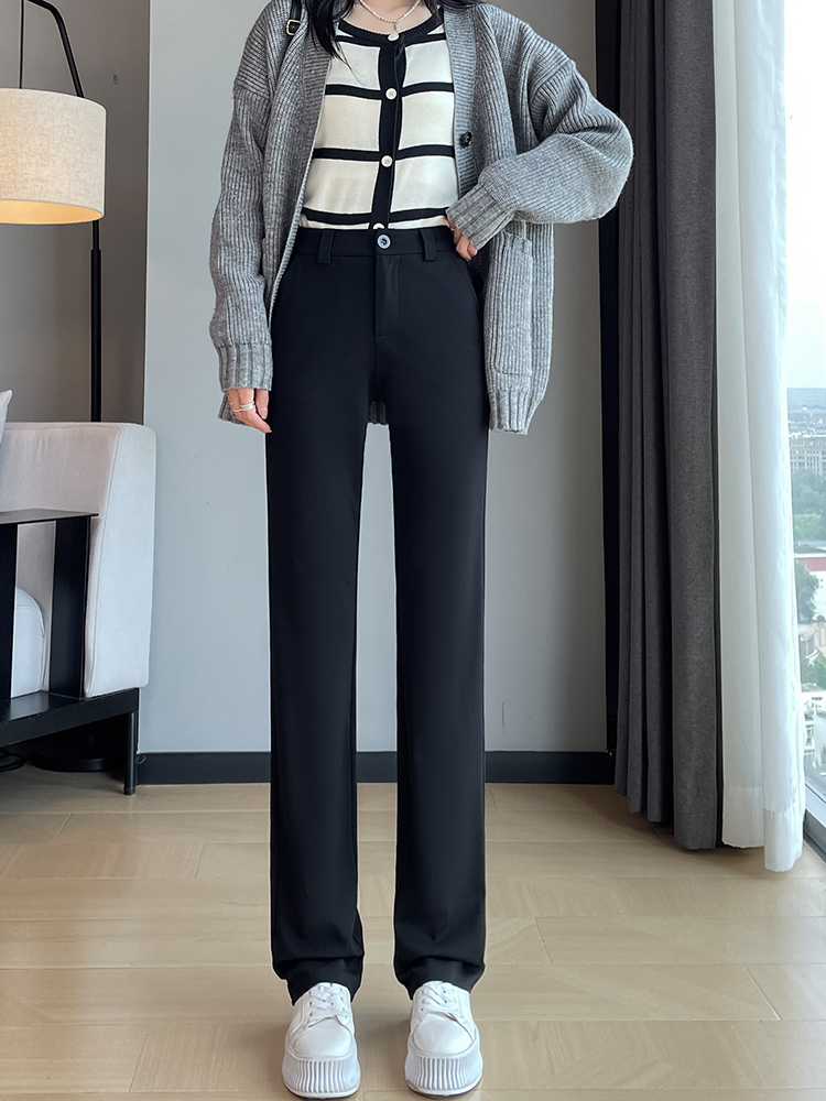 실사 2025 새로운 검정색 좁은 에디션 스트레이트 팬츠 여성 봄 가을 도루 센스 경력 하이웨이스트 슬림해 보이는 캐주얼 정장 바지