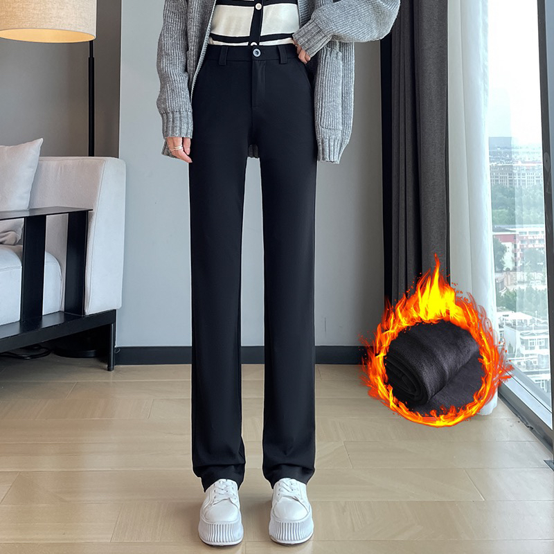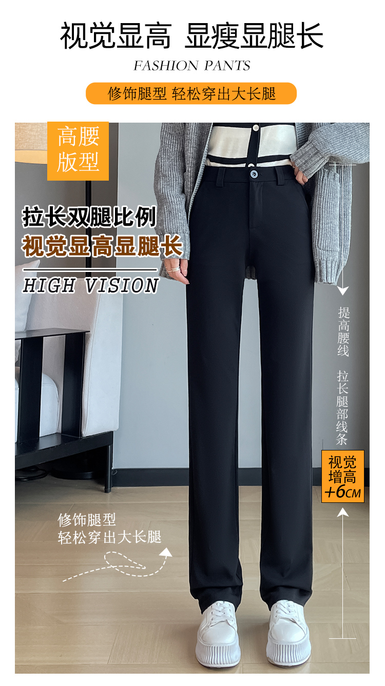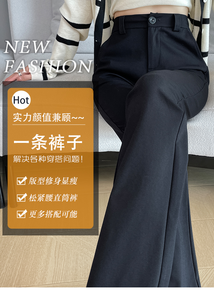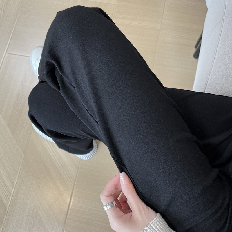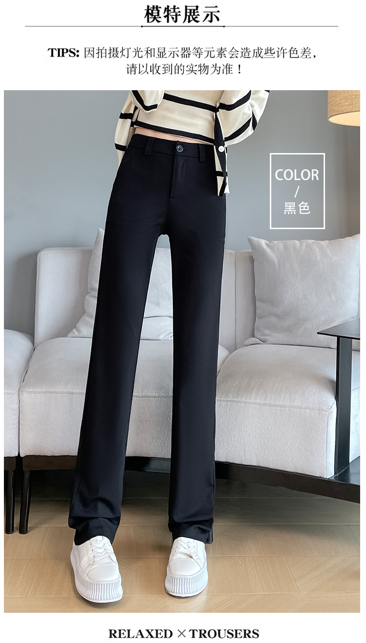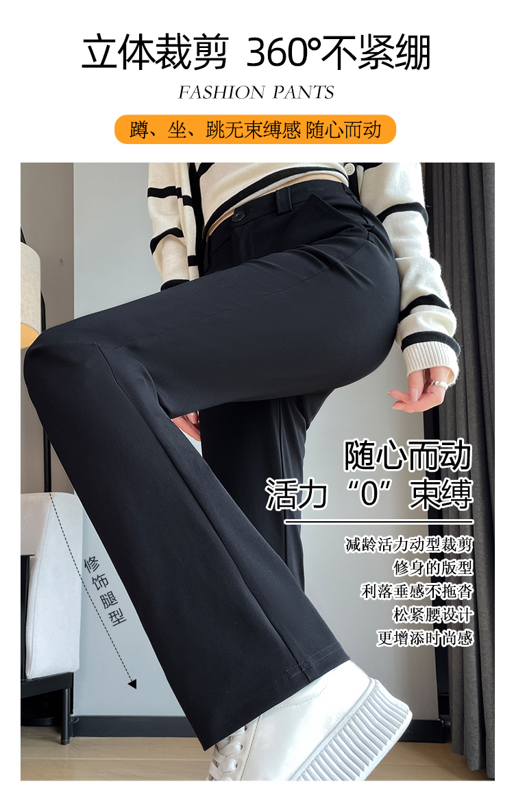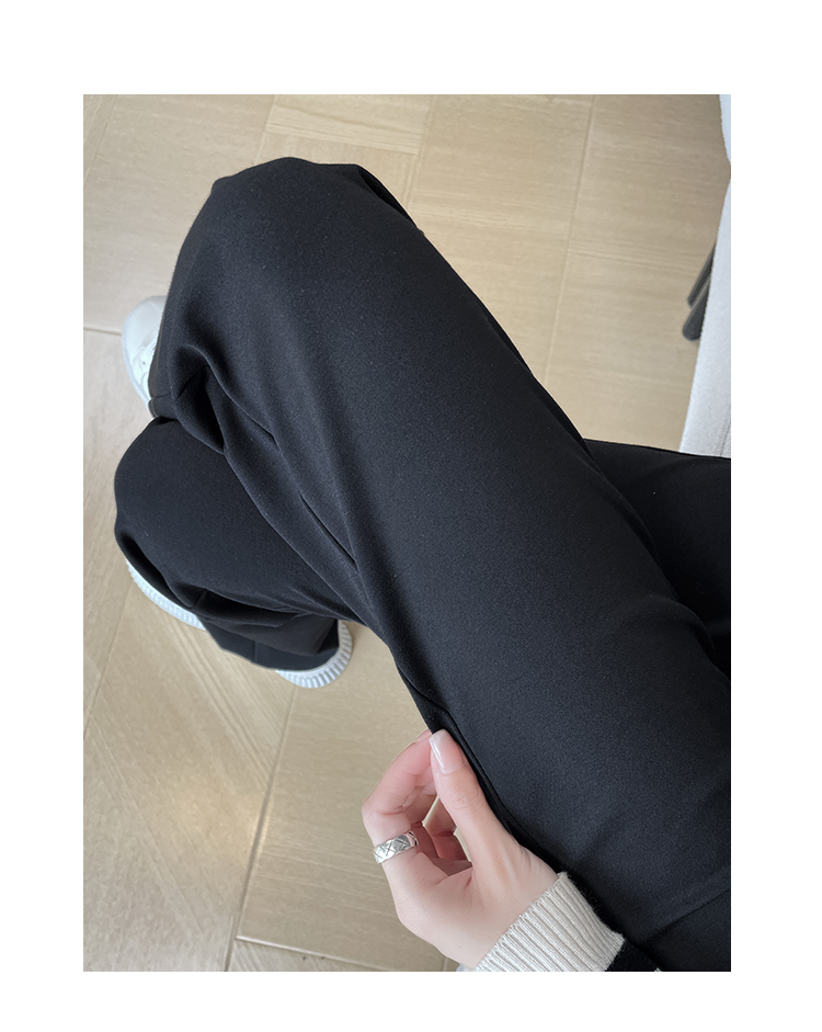 실사 2025 새로운 검정색 좁은 에디션 스트레이트 팬츠 여성 봄 가을 도루 센스 경력 하이웨이스트 슬림해 보이는 캐주얼 정장 바지