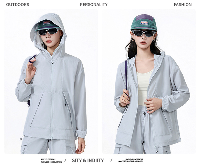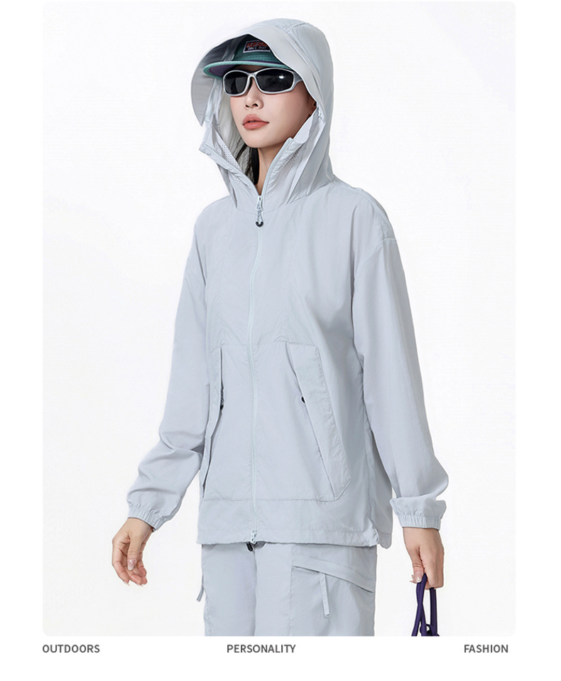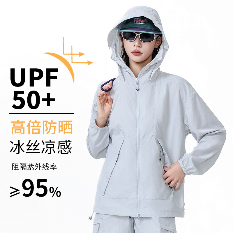 여름 차가운 센스 후드 피부 의류 초박형 고성능 자외선 차단 의류 남녀 같은 단락 국방 자외선 후드 재킷