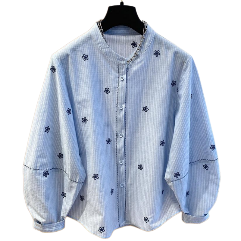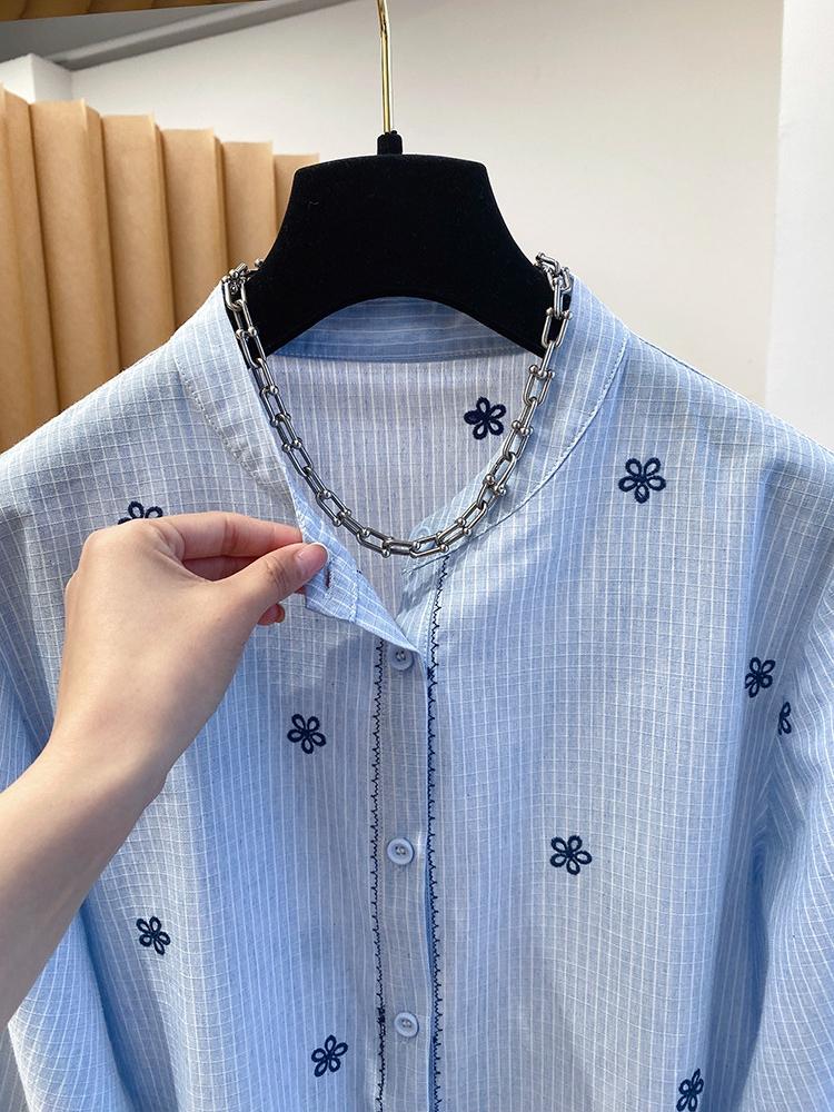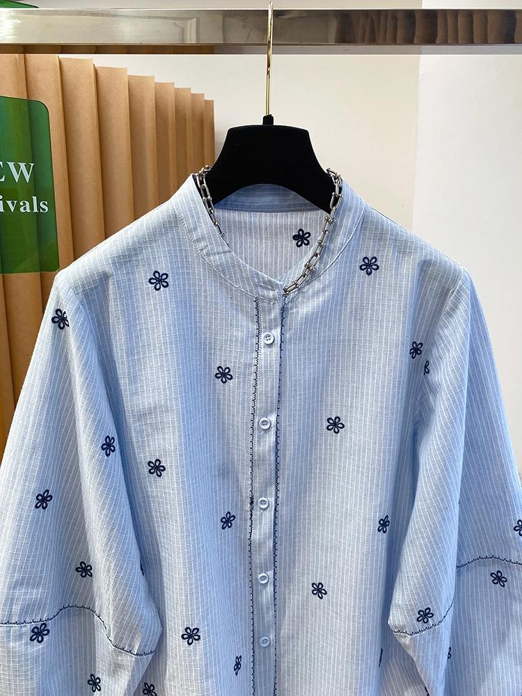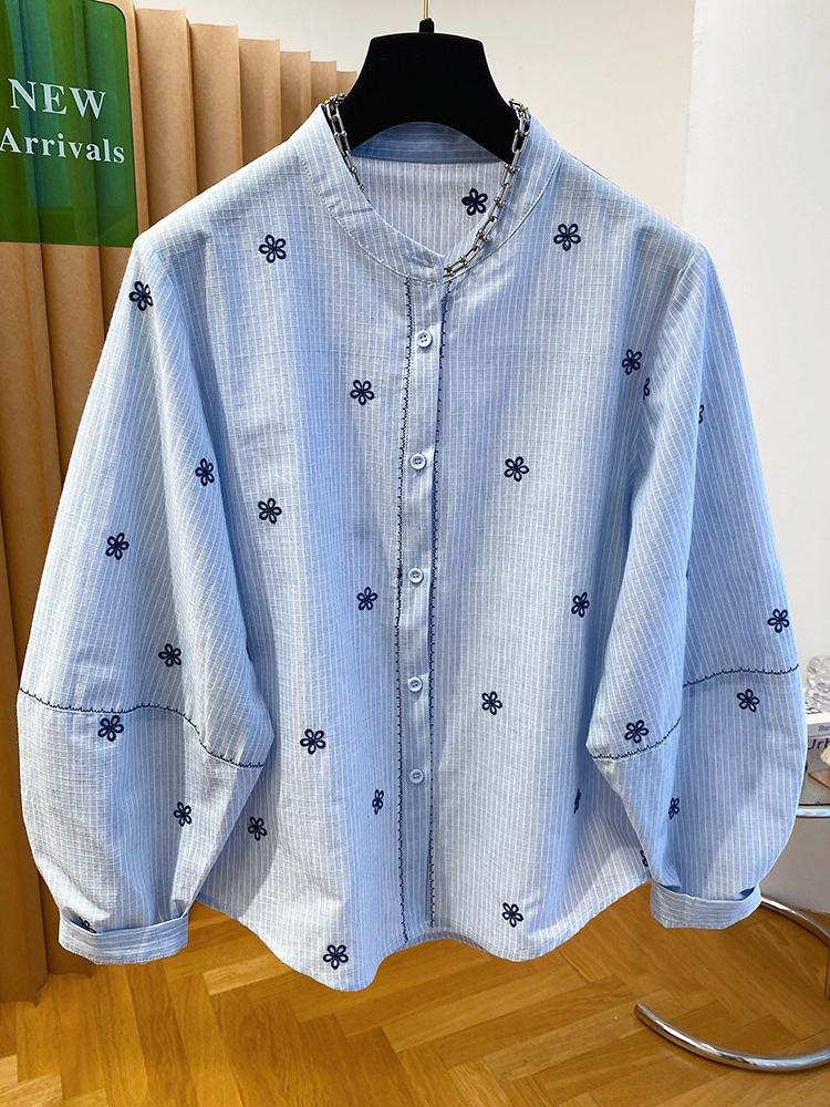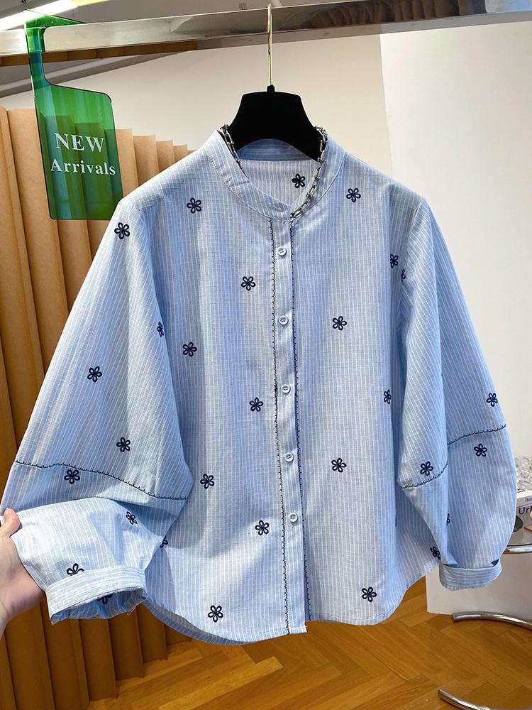 한 부서 파란색 스트라이프 셔츠 여성 긴 소매 2026 새로운 이른 봄 루즈핏 외국 가스 슈퍼 잘 생긴 꽃무늬 자수 맨위