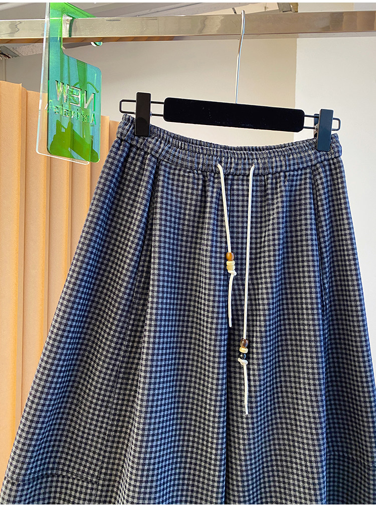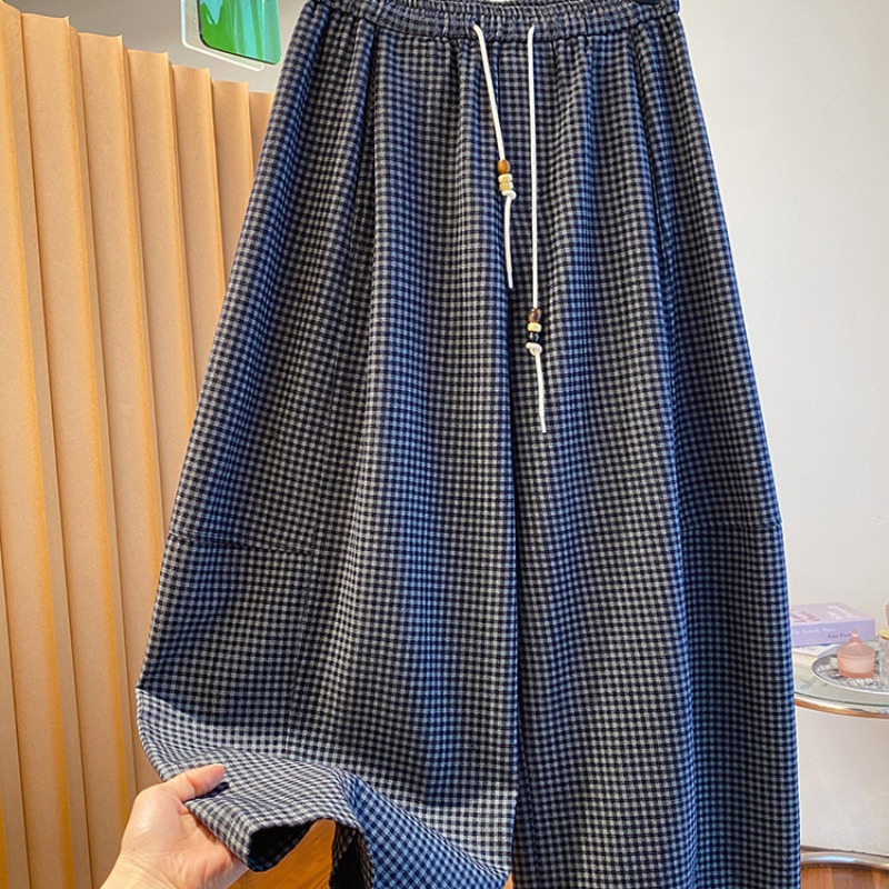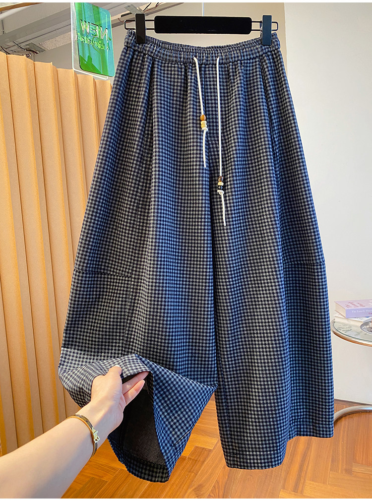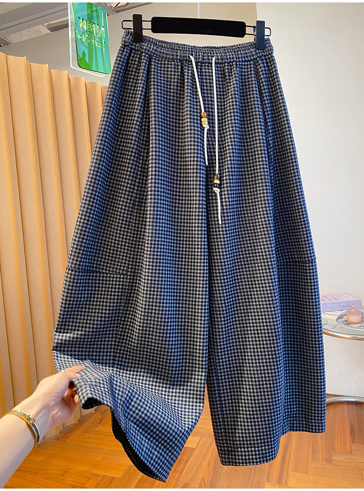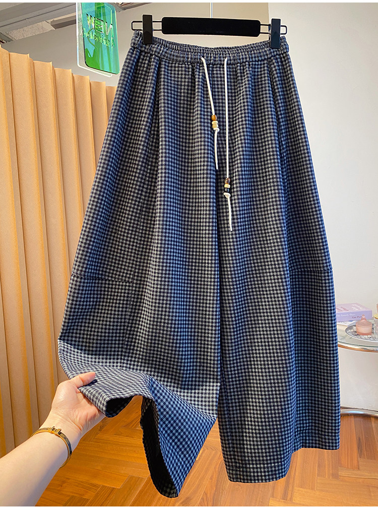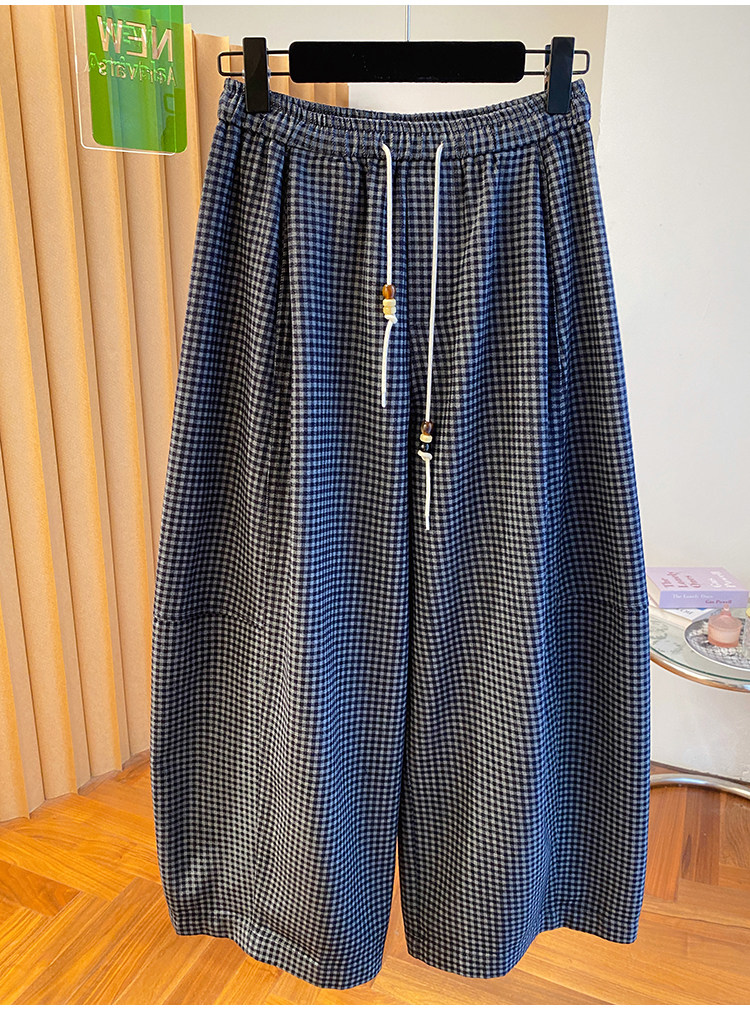 봄 여름 새로운 문예 다용도 루즈핏 넓은 다리 캐주얼 체크무늬 바지 대 에디션 모통이 칼 풍선 바지