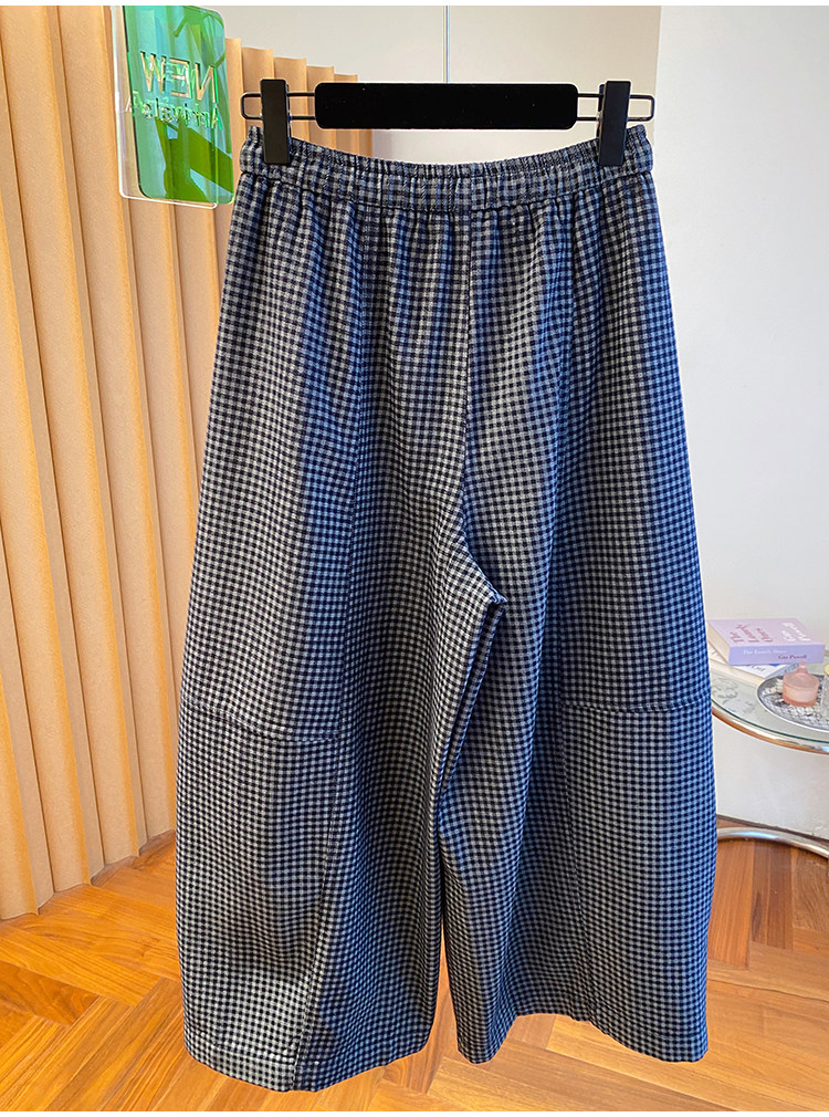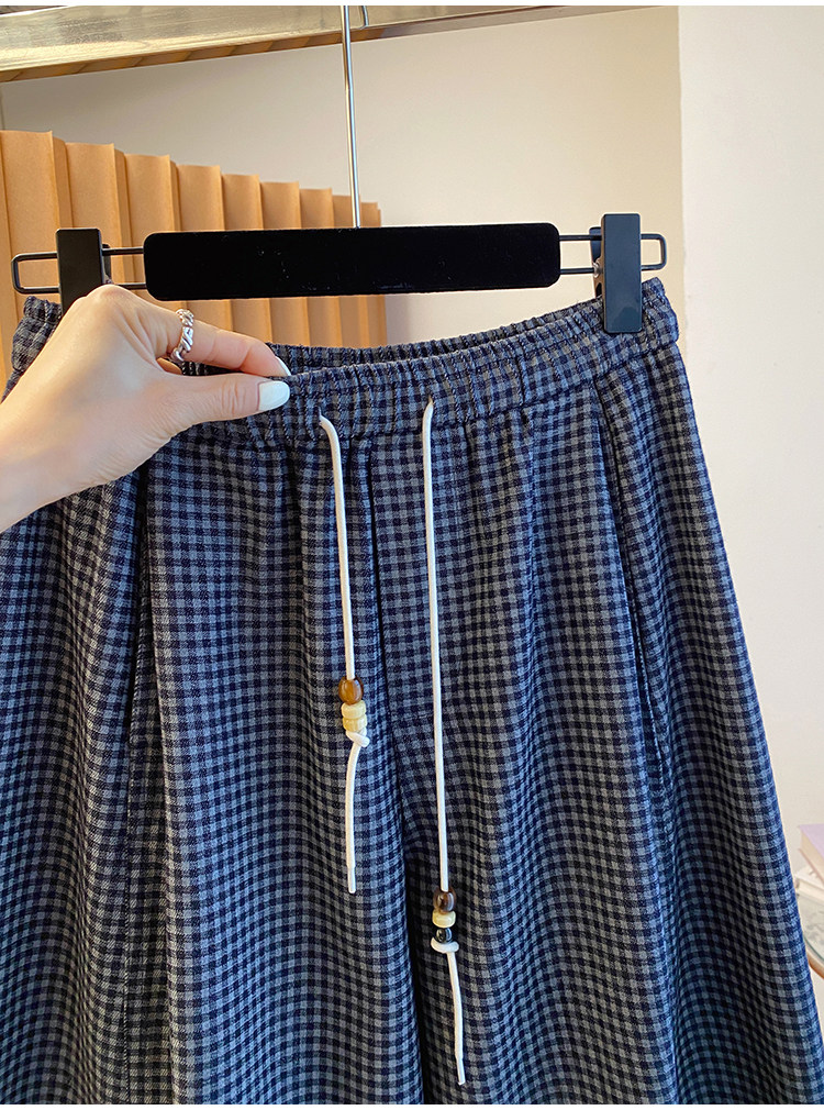 봄 여름 새로운 체크무늬 와이드 레그 팬츠 8 점 바지 고급 센스 스트레이트 루즈핏 슬림해 보이는 캐주얼 작은 격자 바지