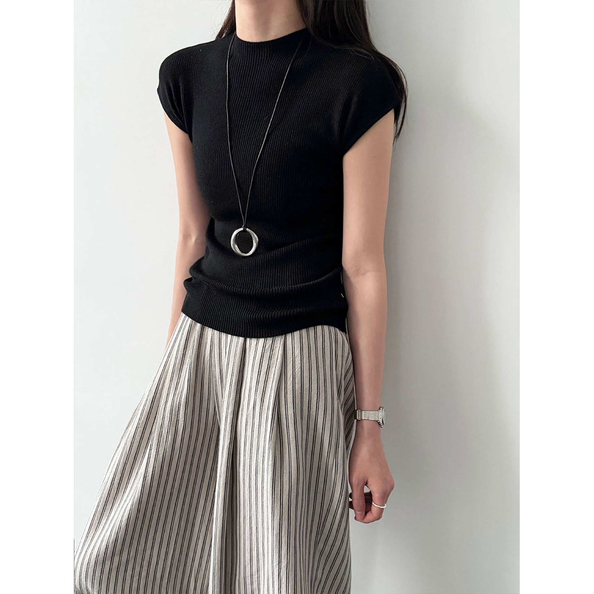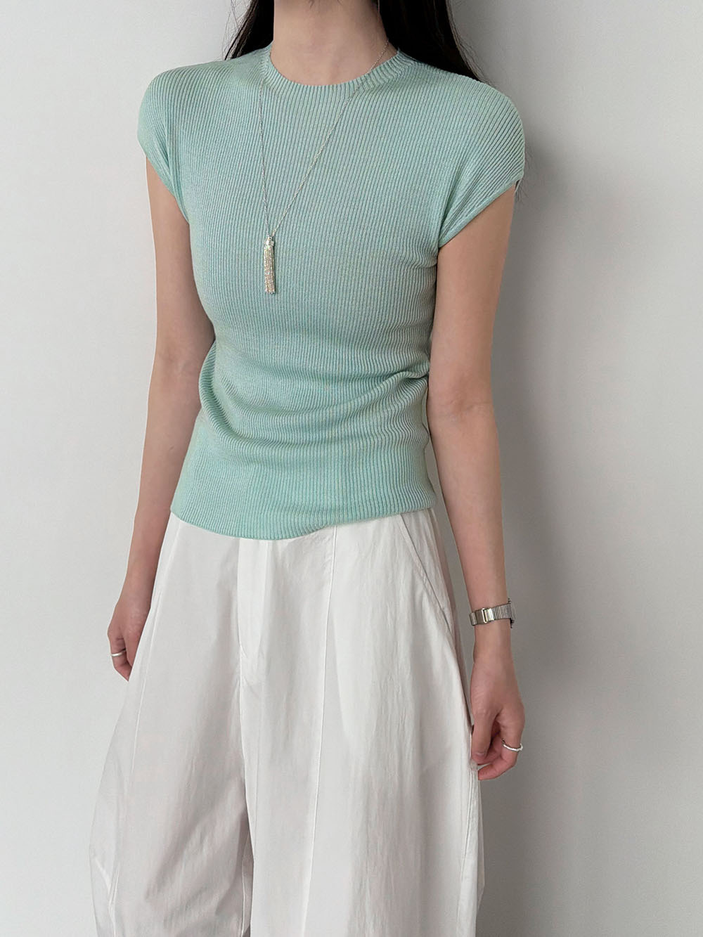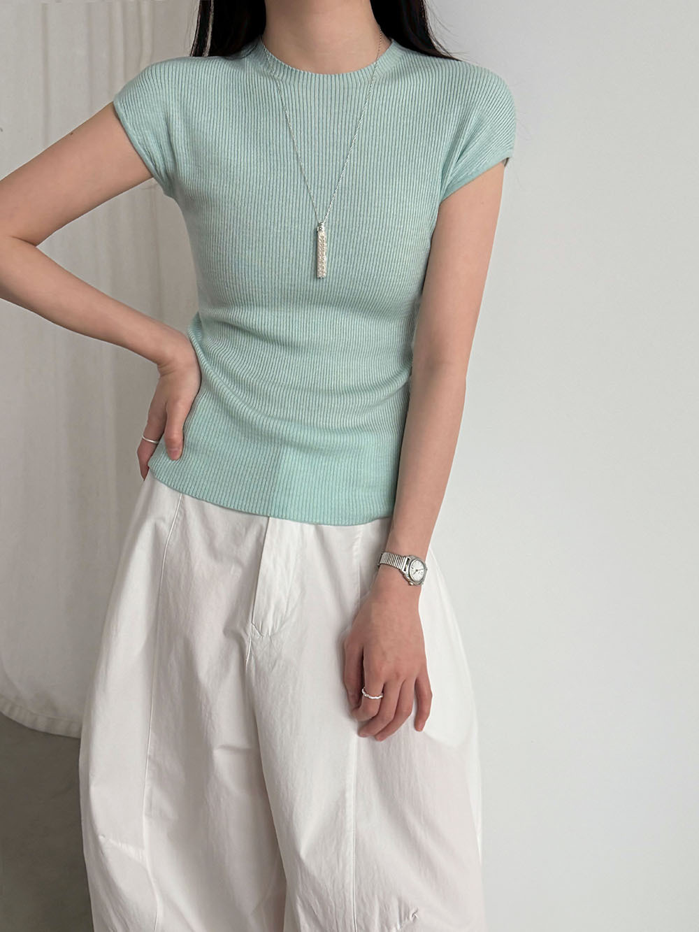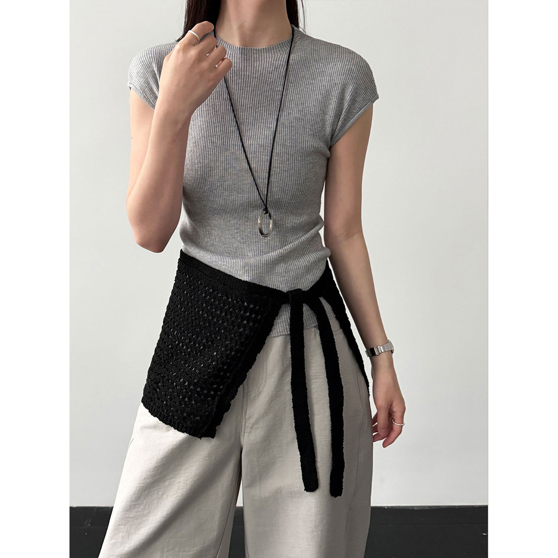 미니멀리즘 몸매 가꾸기 품격 Feifei 소매 양모 니트 맨위 여성 26 봄 새로운 다용도 티셔츠