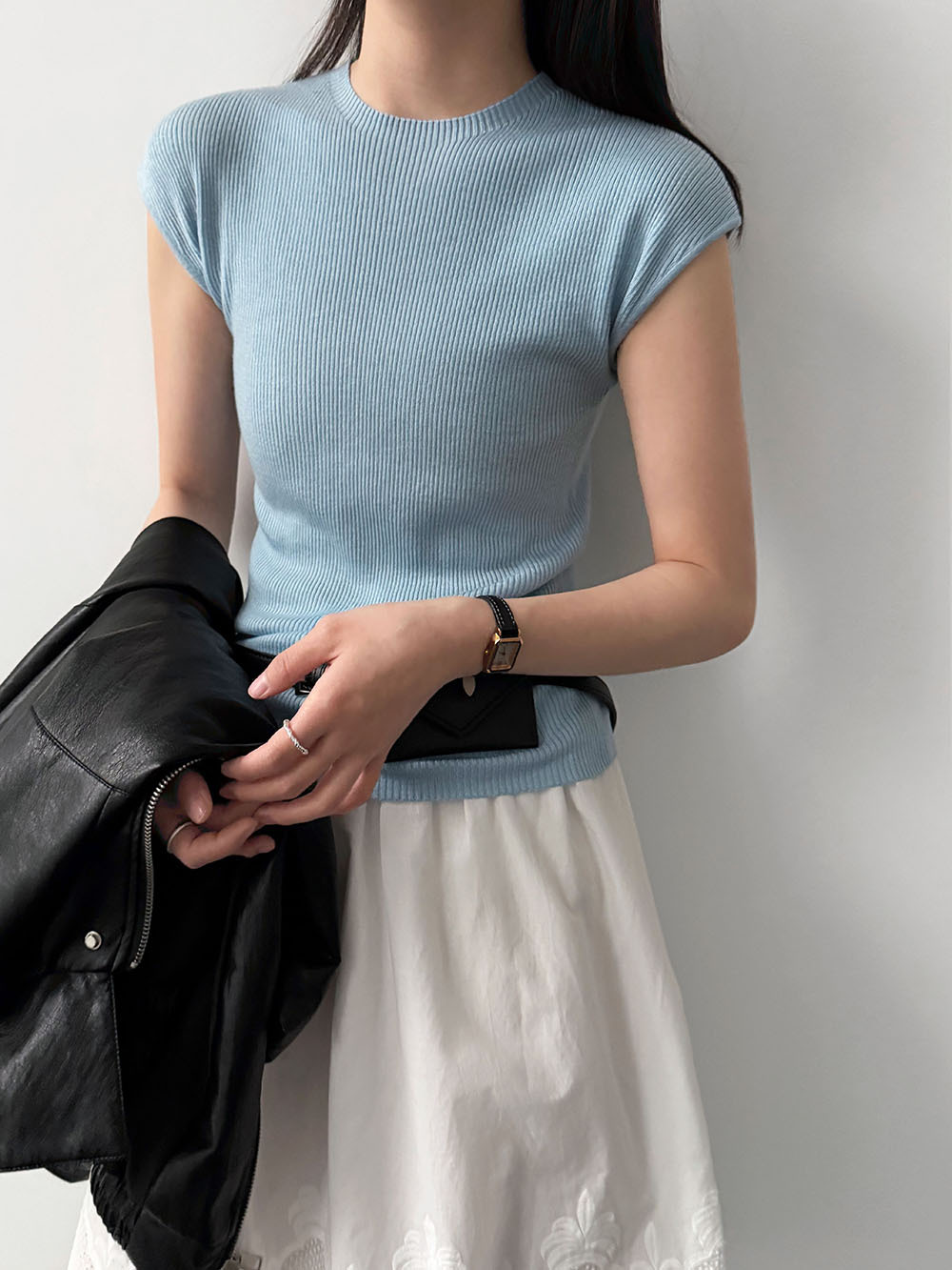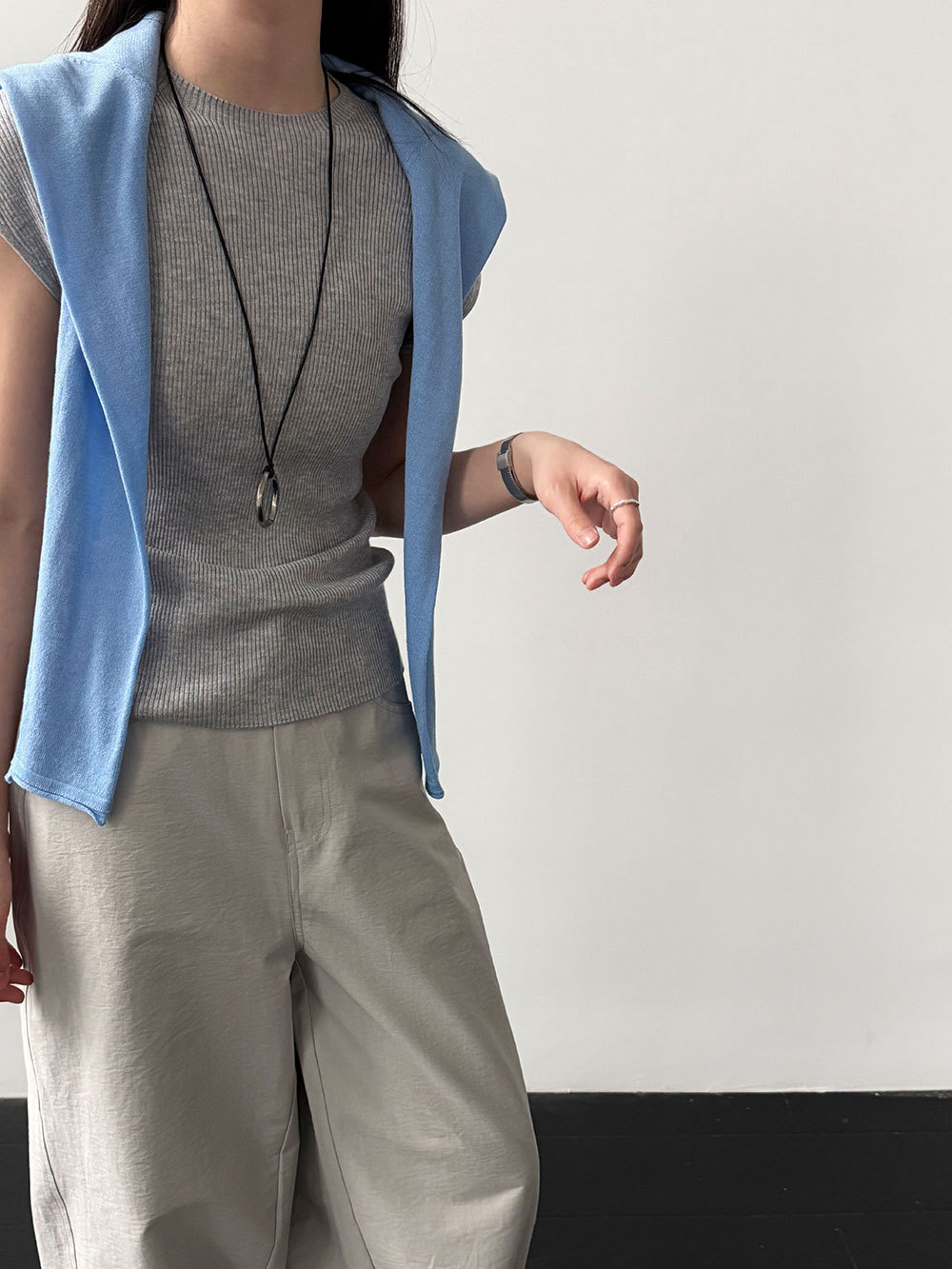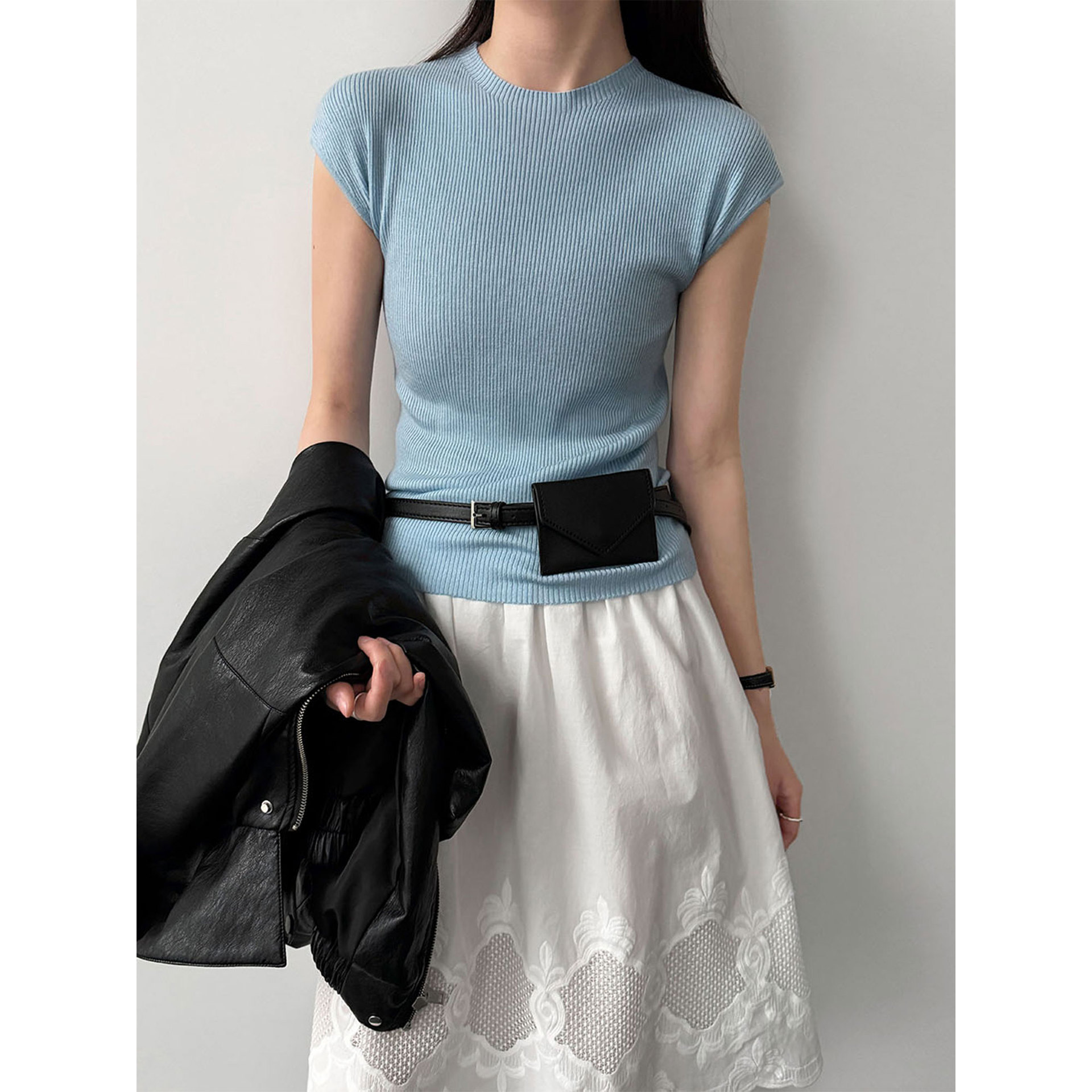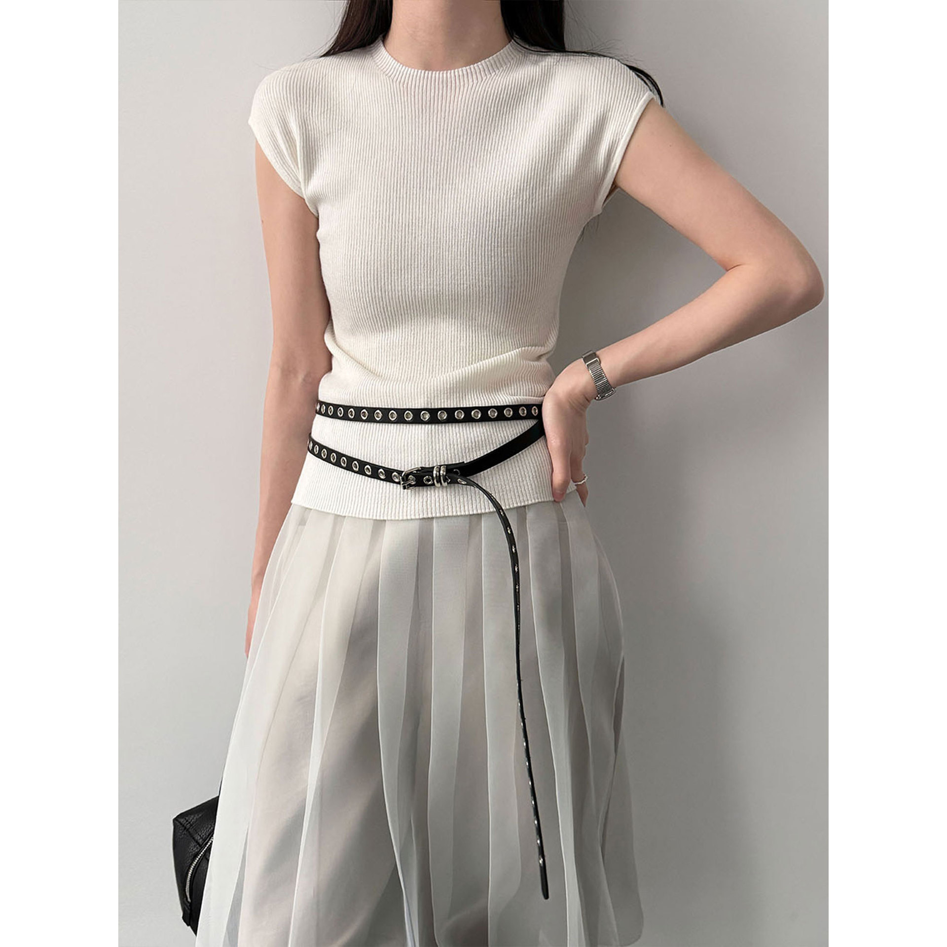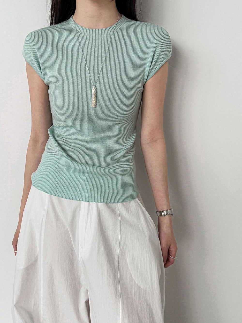 미니멀리즘 몸매 가꾸기 품격 Feifei 소매 양모 니트 맨위 여성 26 봄 새로운 다용도 티셔츠