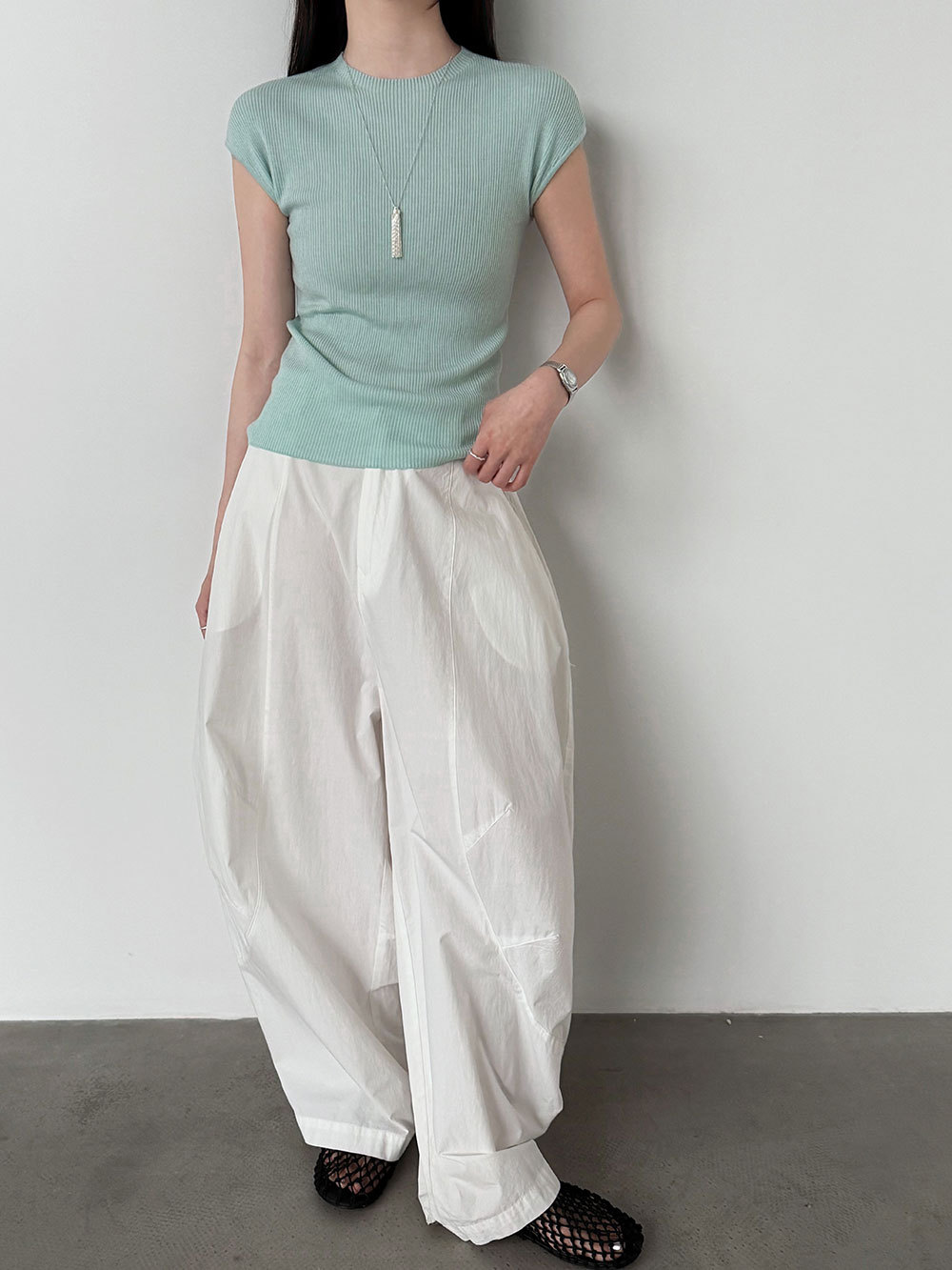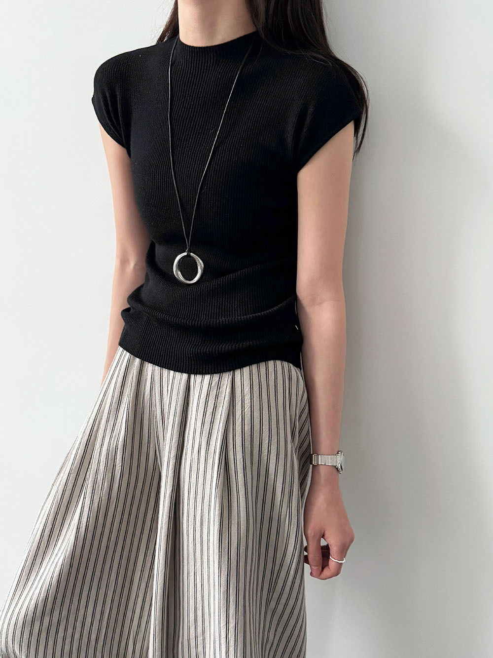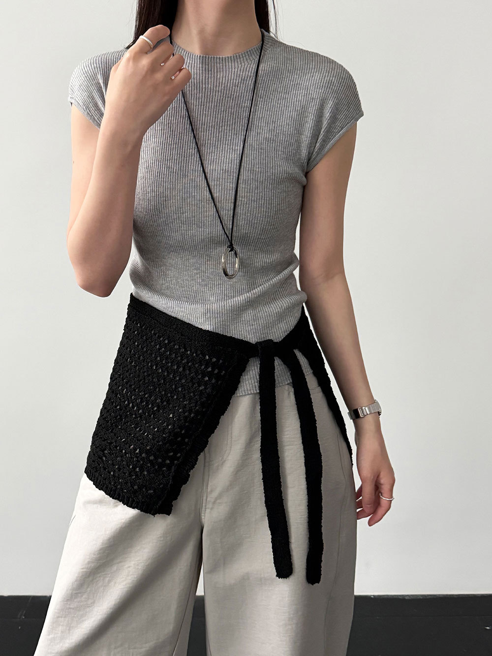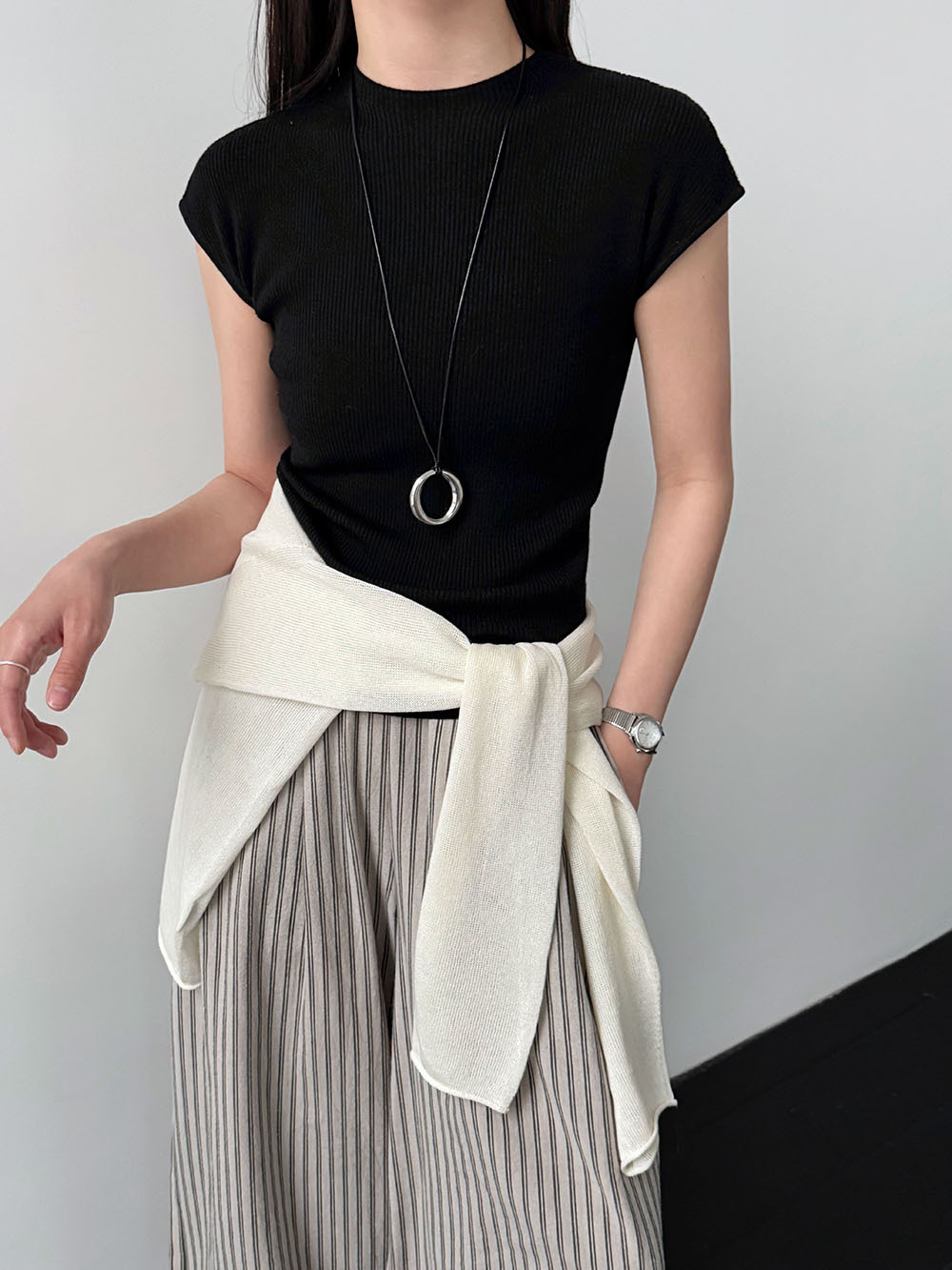 미니멀리즘 몸매 가꾸기 품격 Feifei 소매 양모 니트 맨위 여성 26 봄 새로운 다용도 티셔츠