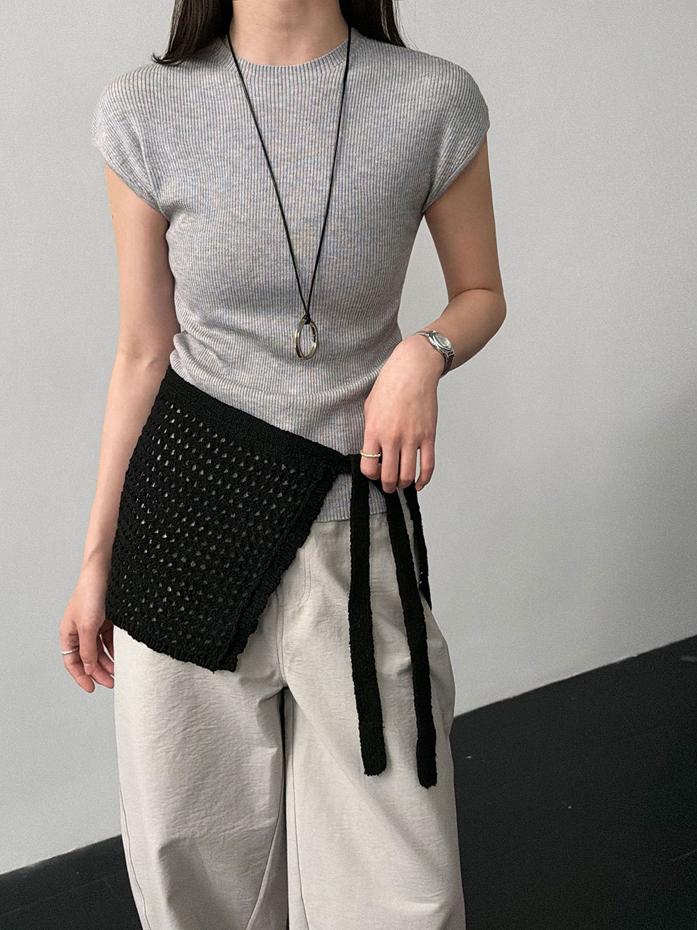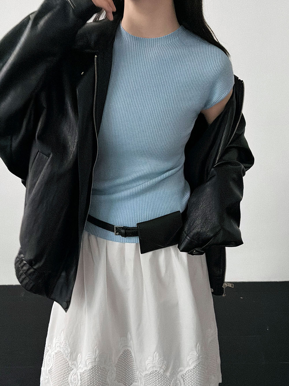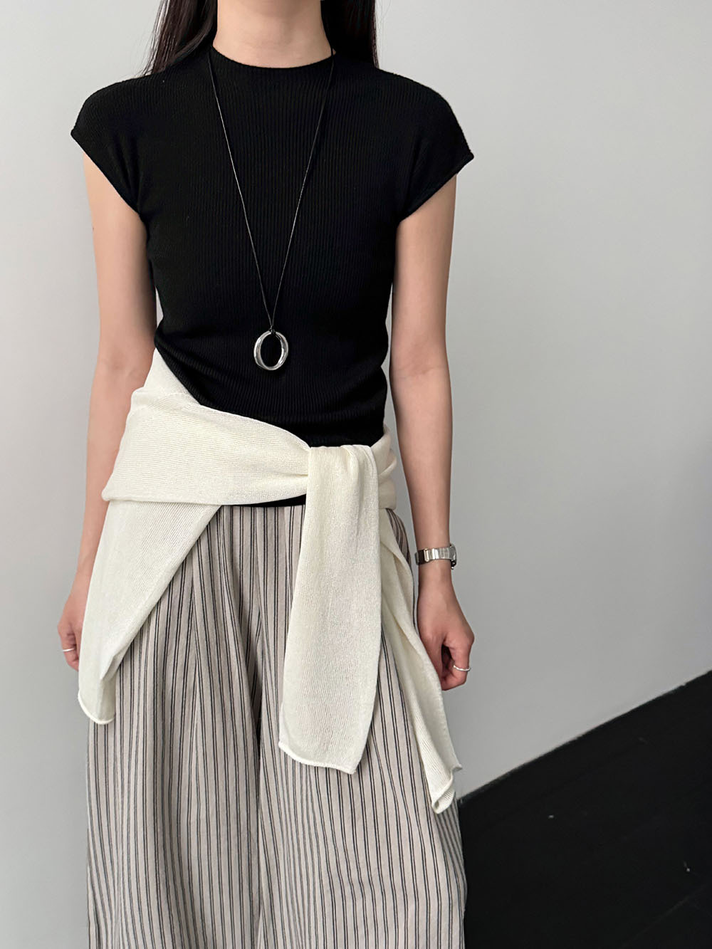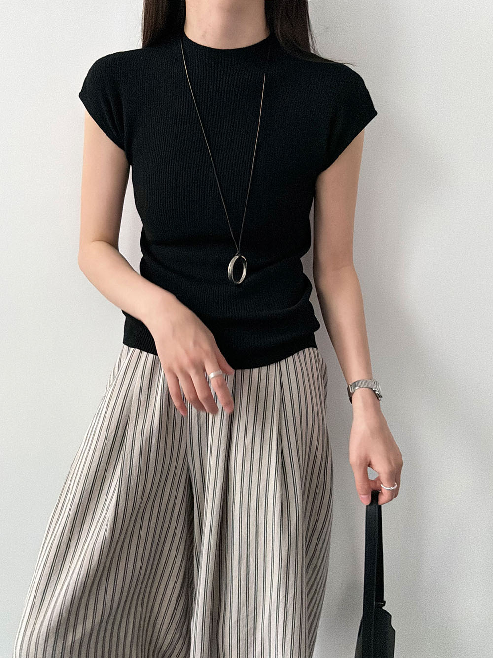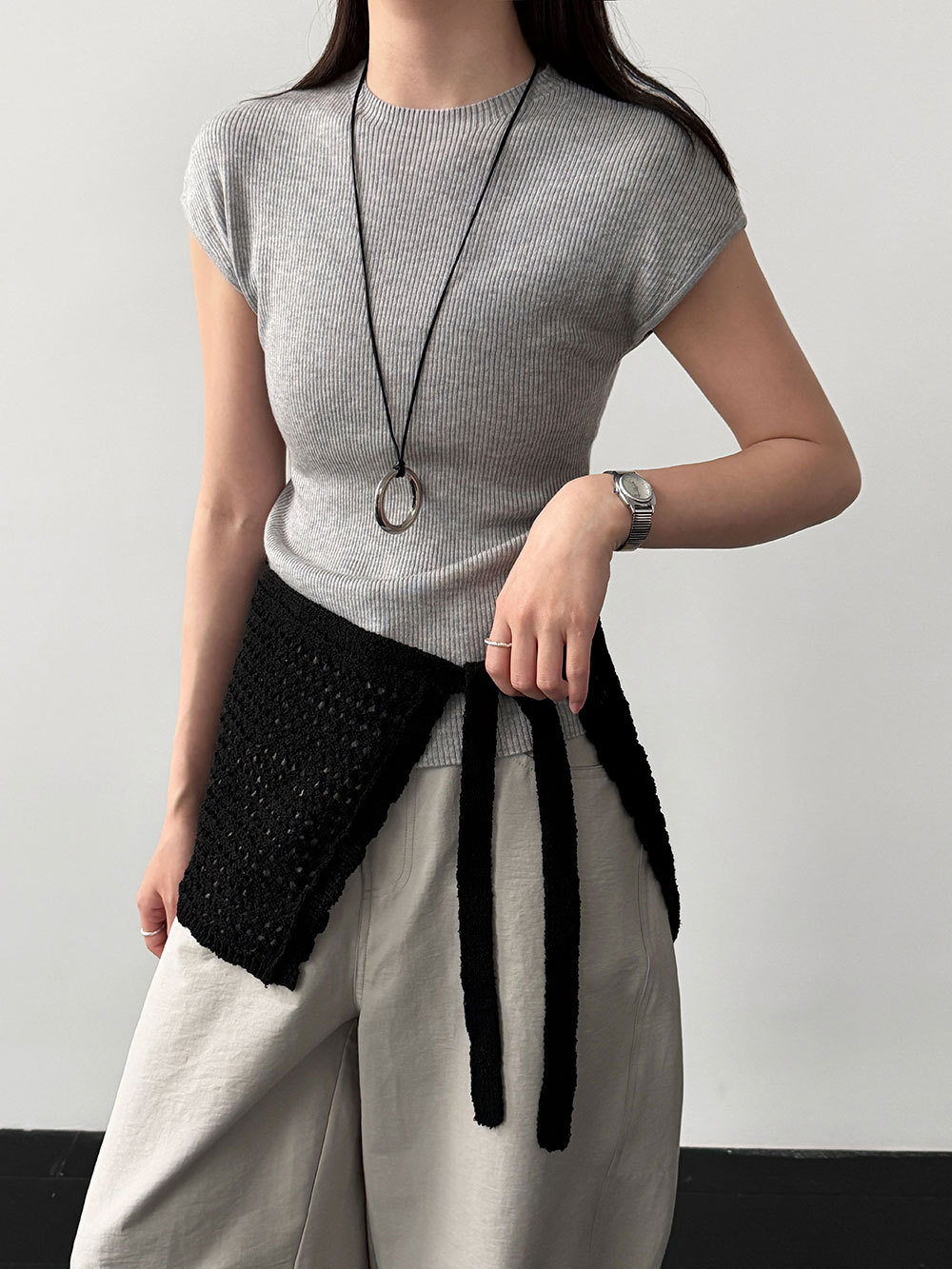 미니멀리즘 몸매 가꾸기 품격 Feifei 소매 양모 니트 맨위 여성 26 봄 새로운 다용도 티셔츠