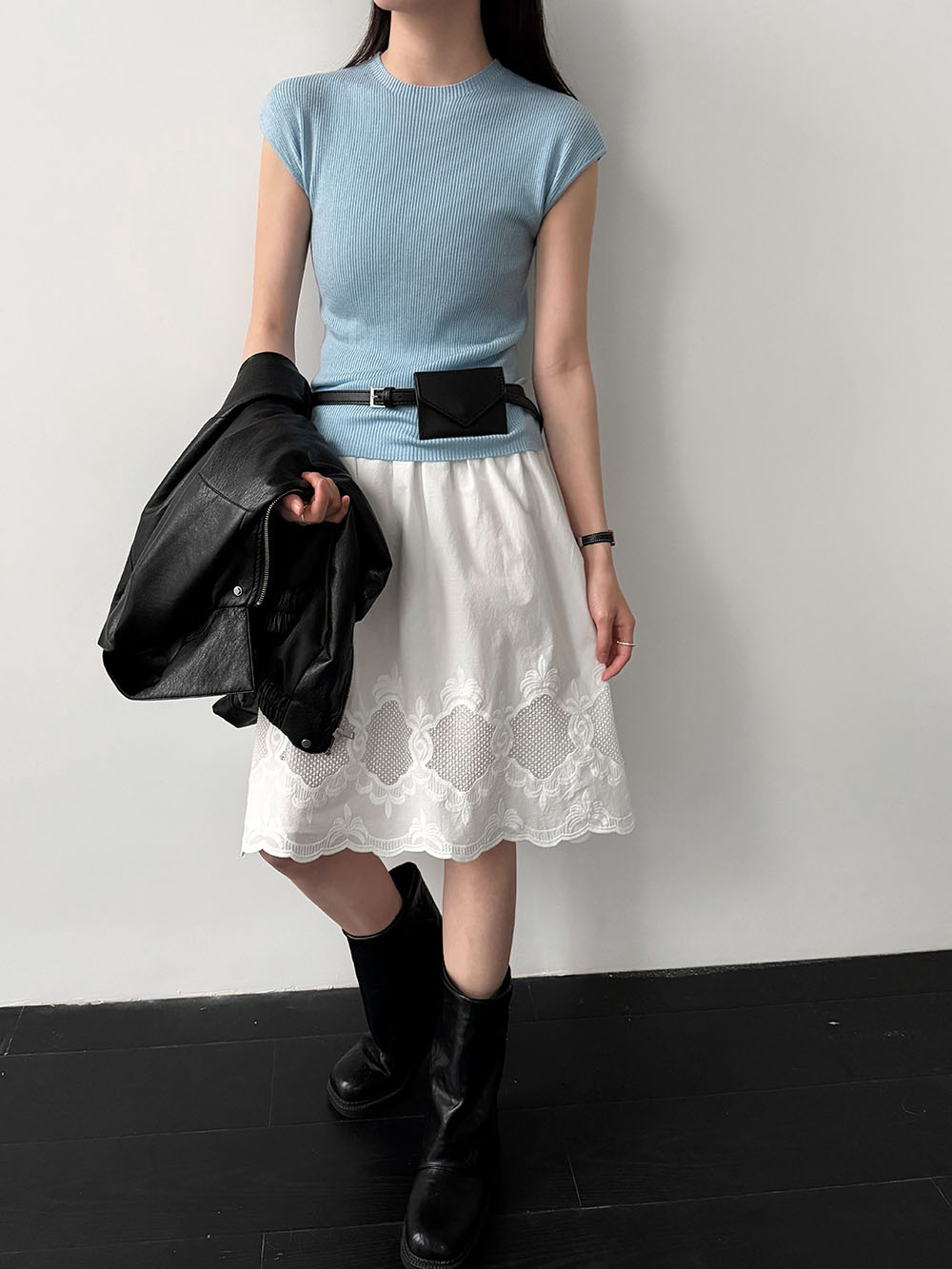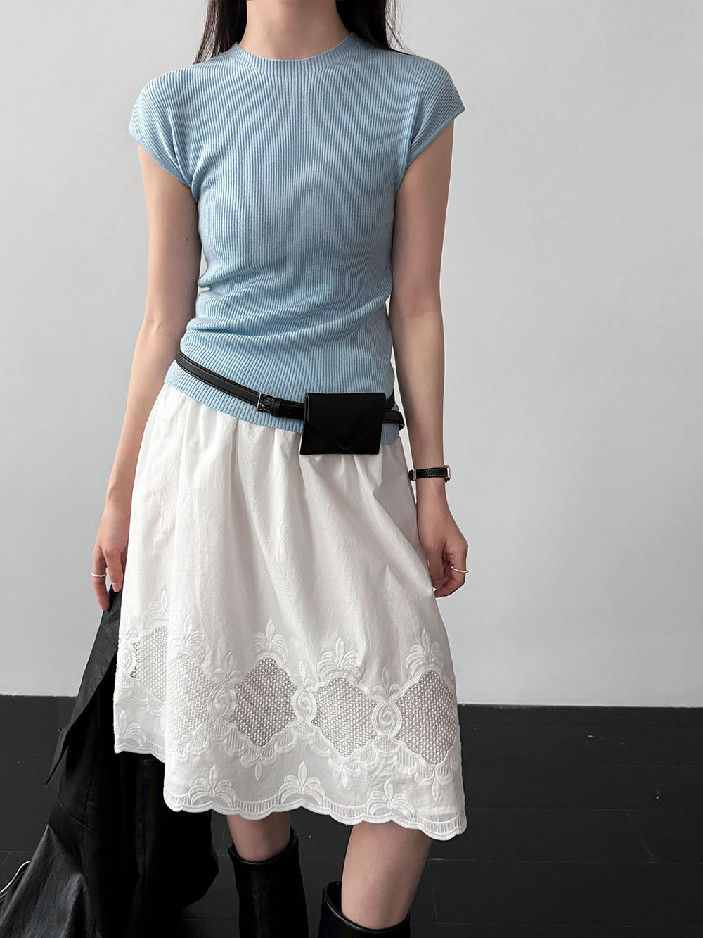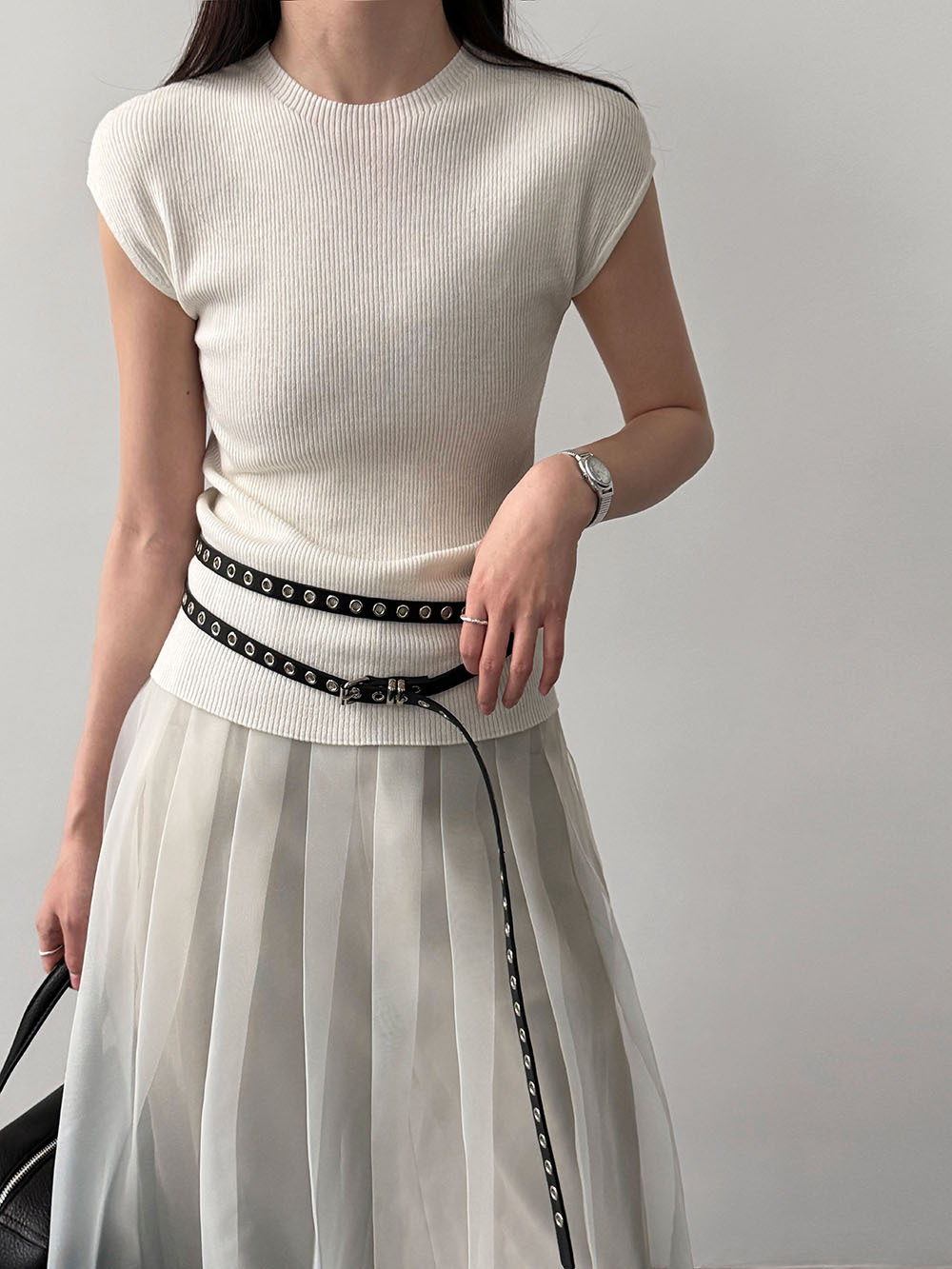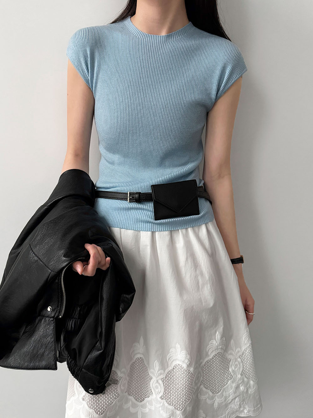 미니멀리즘 몸매 가꾸기 품격 Feifei 소매 양모 니트 맨위 여성 26 봄 새로운 다용도 티셔츠