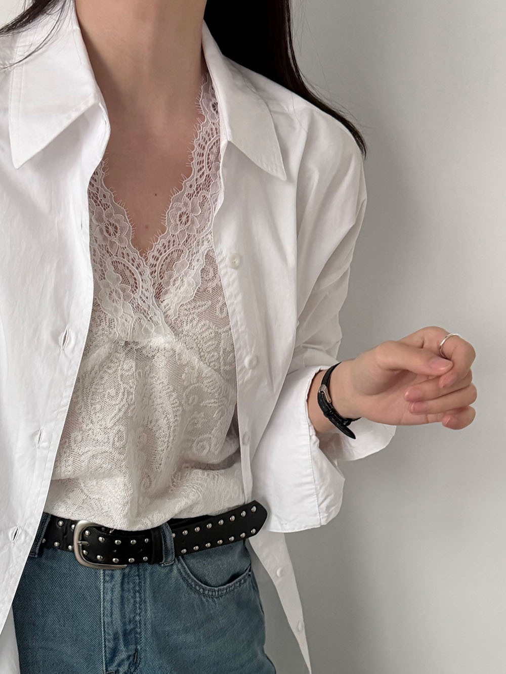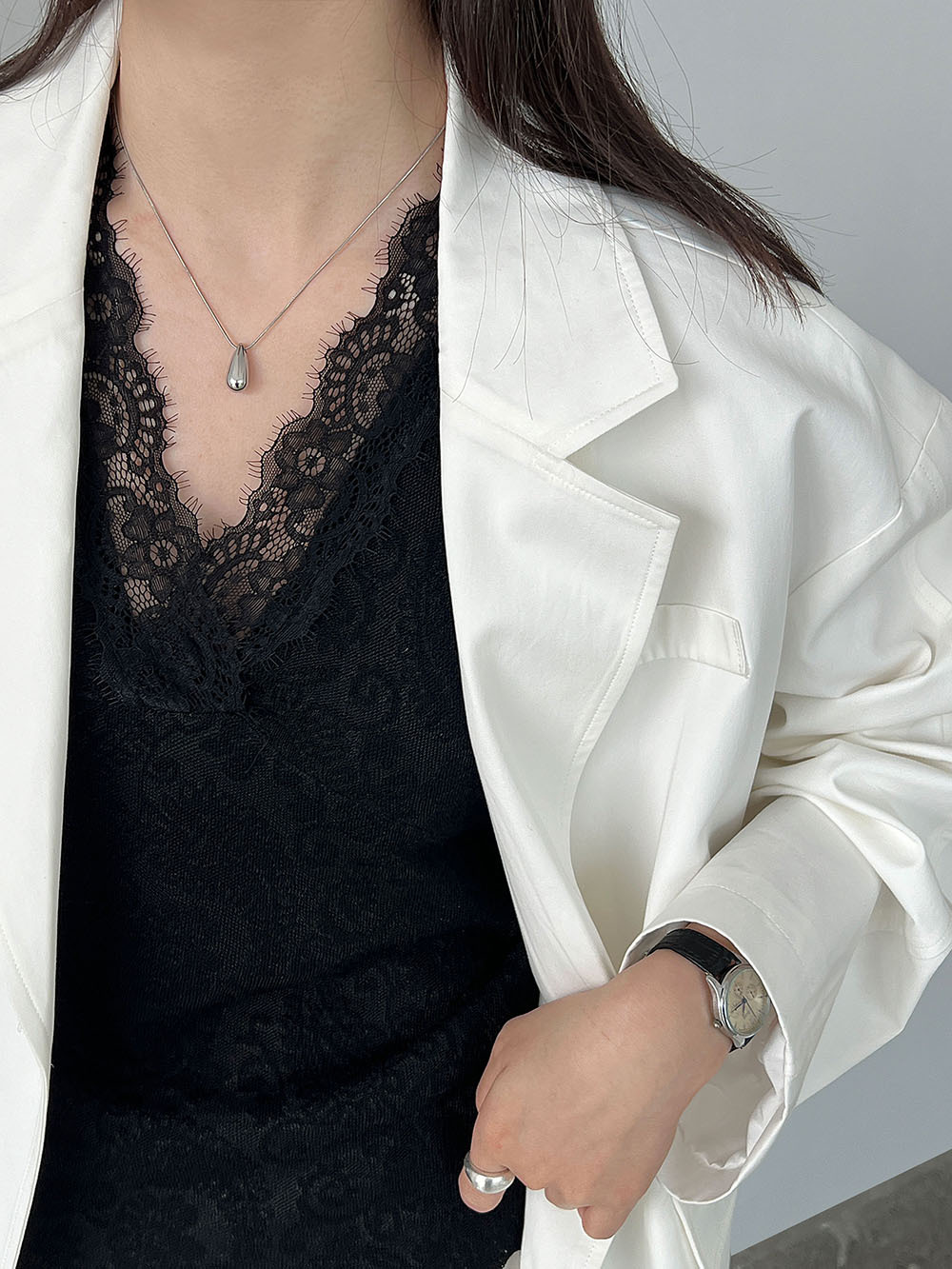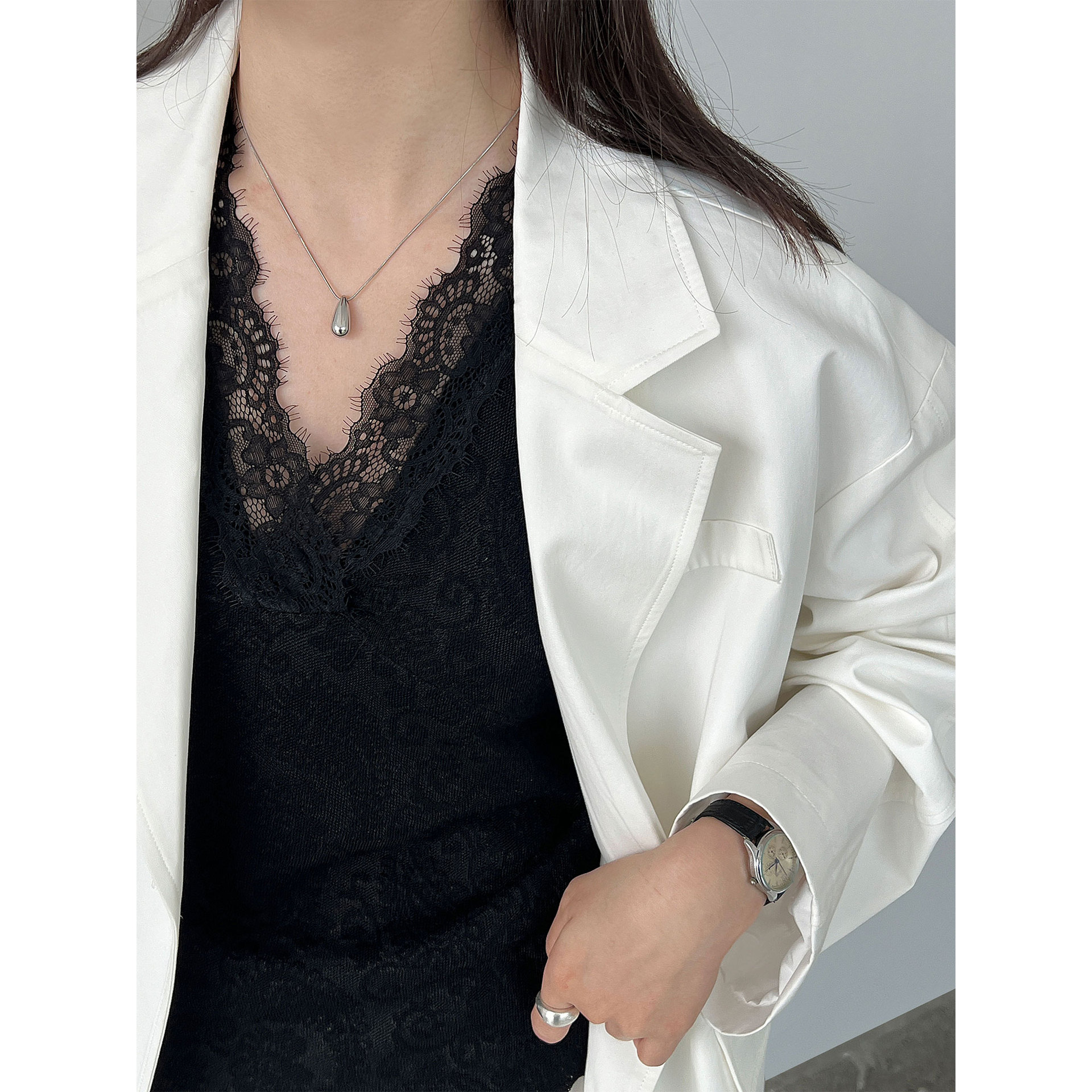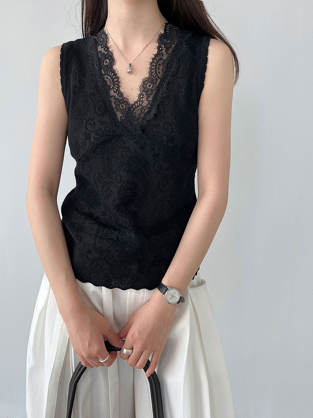 주간 실크 V넥 민소매 레이스 레이스 만나는 조끼 여성 26 봄 새로운 자카드 인사이드 잡아라. 의류