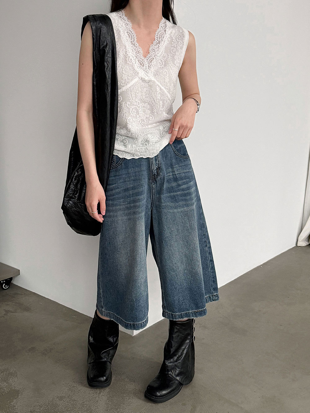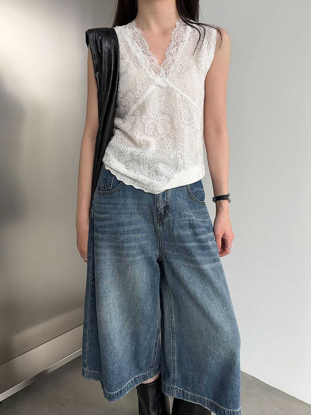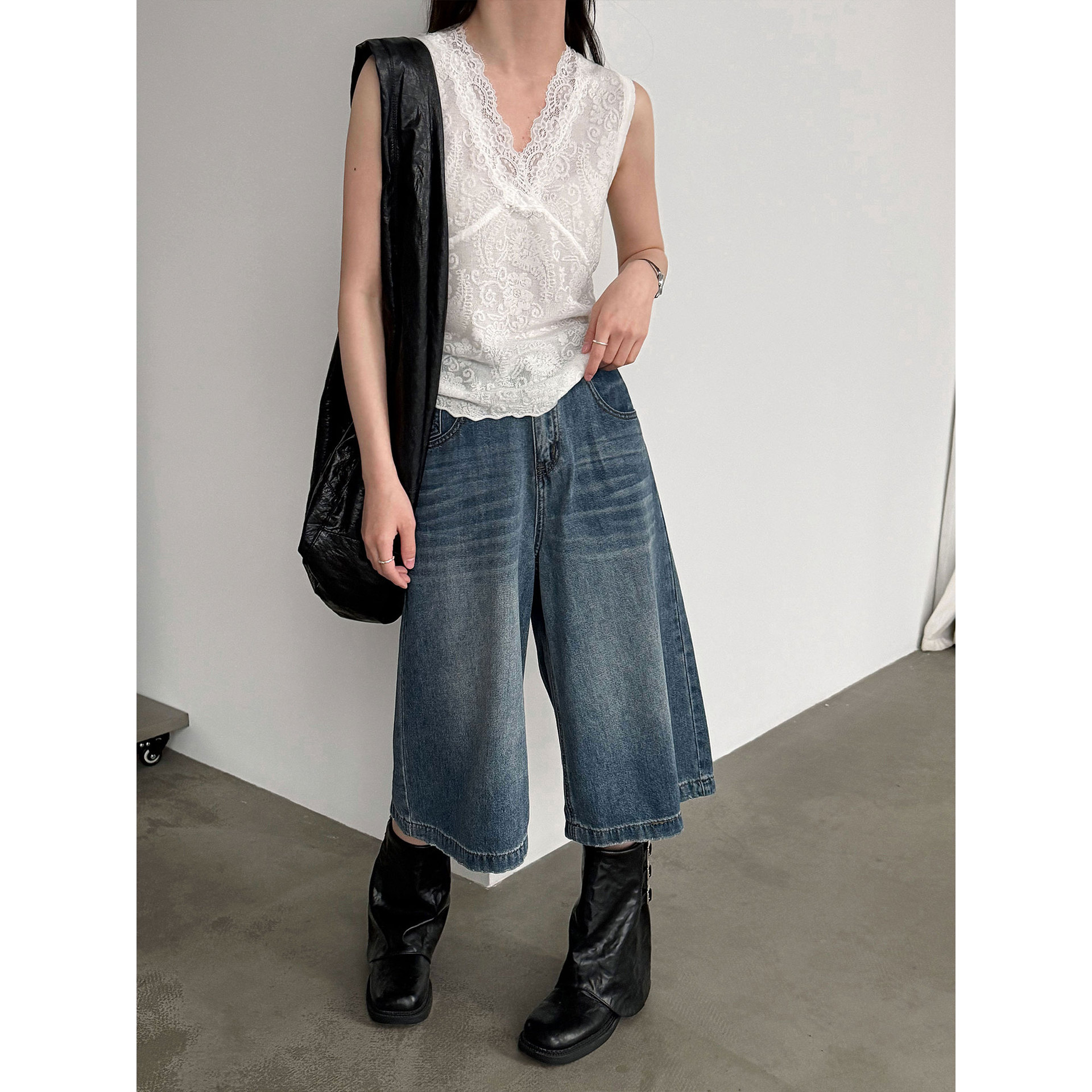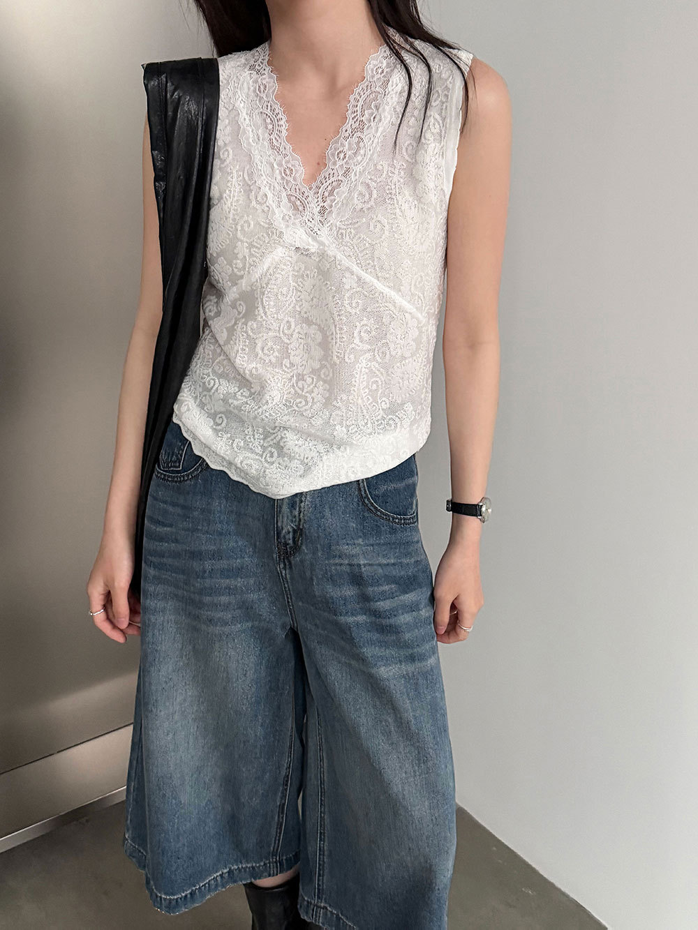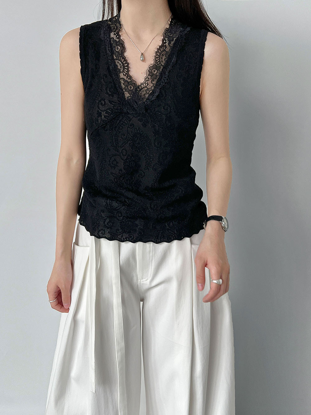 한국 스타일 레이스 조각 민소매 조끼 여성 슬림해 보이는 표지 고기 불규칙 스택 착용 맨위