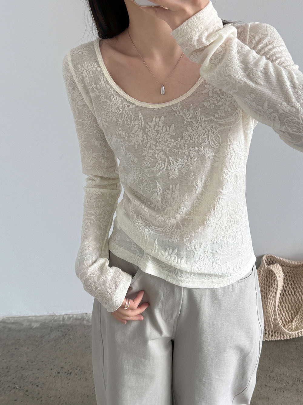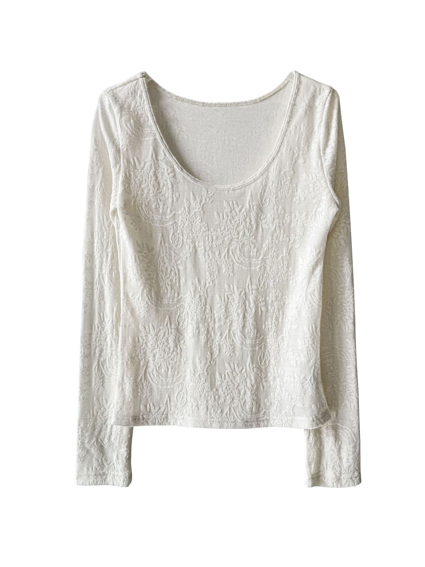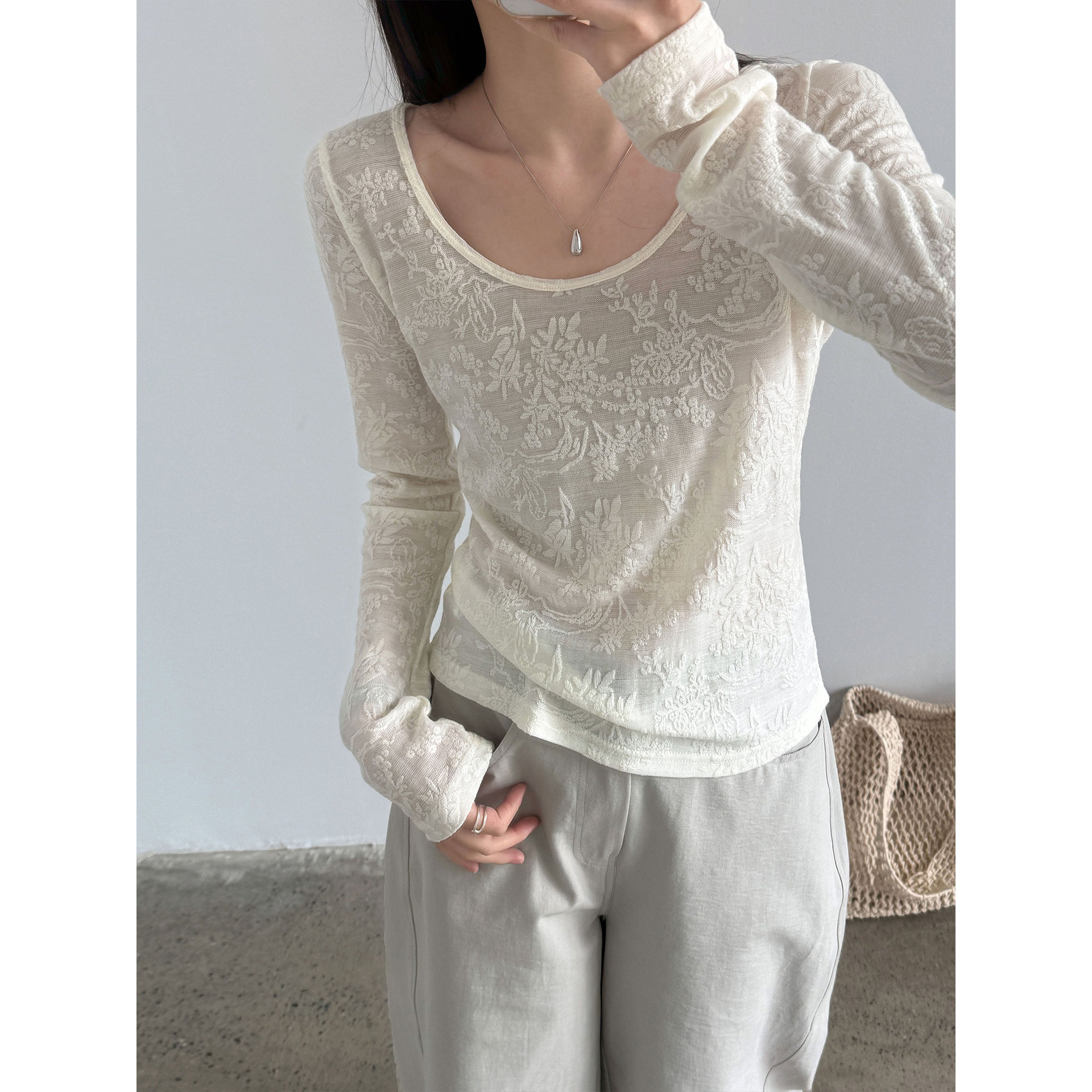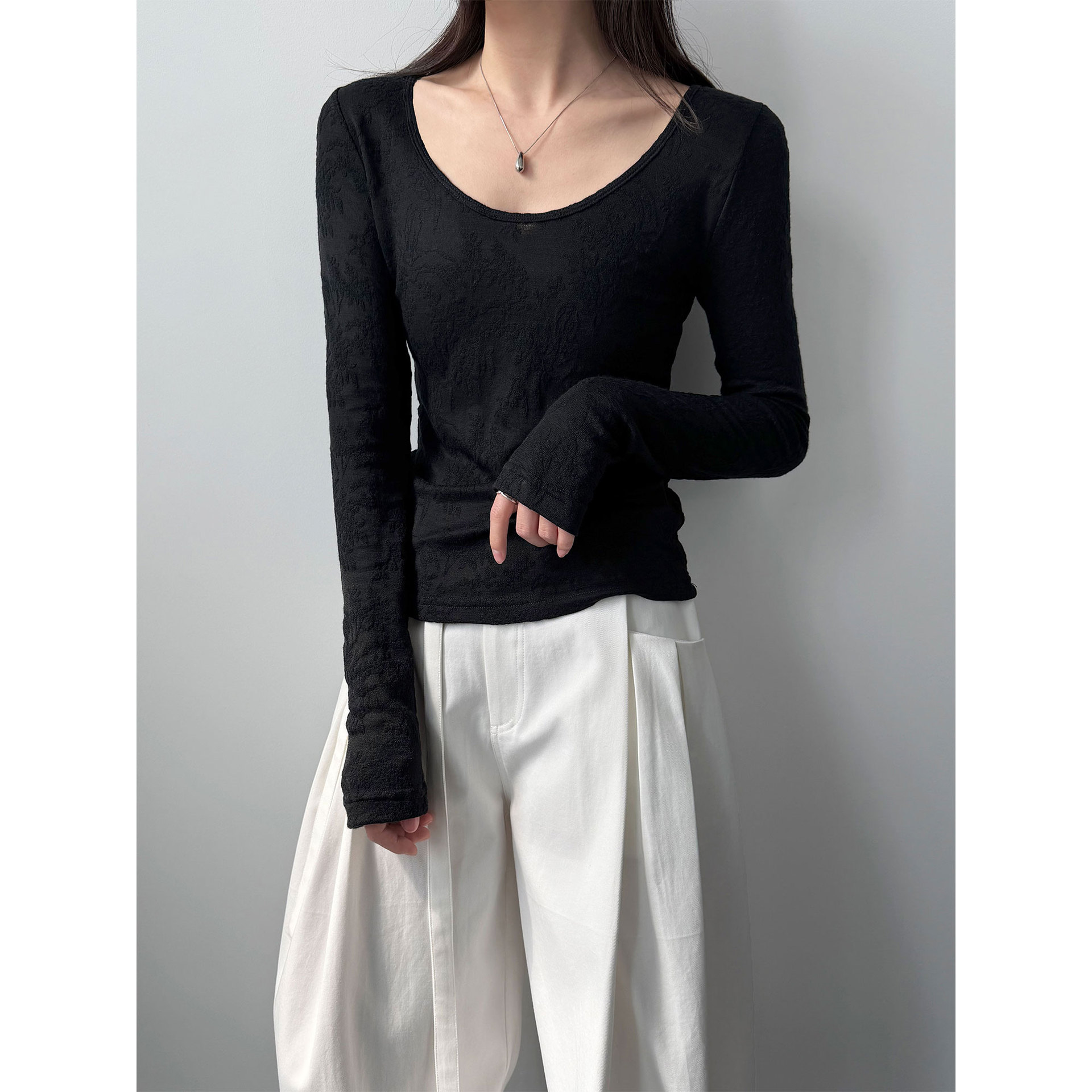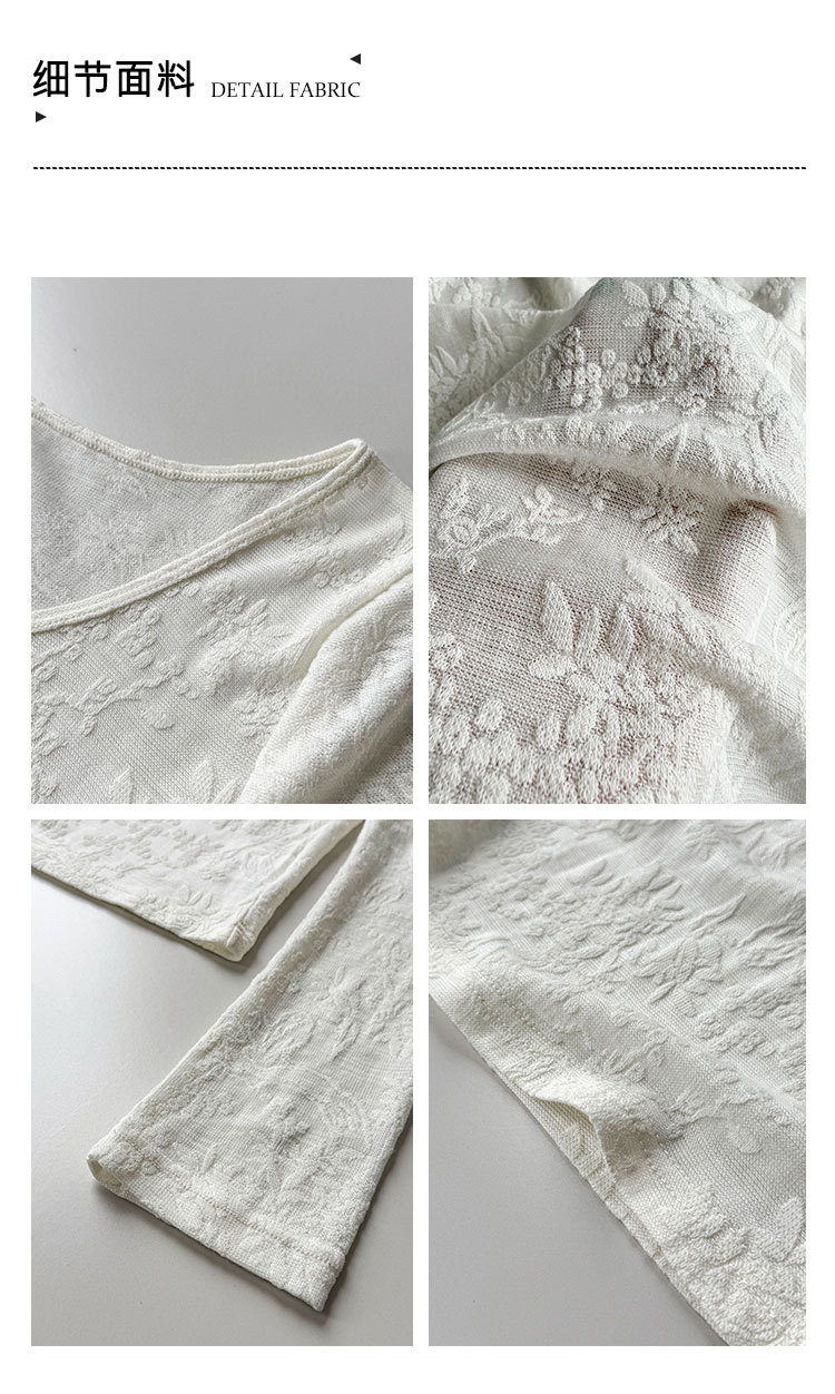 부드러운 무거운 작업 자카드 대 u 칼라 마이크로 ~을 통해 질감 센스 기본 셔츠 여성 봄 새로운 품격 맨위 티셔츠