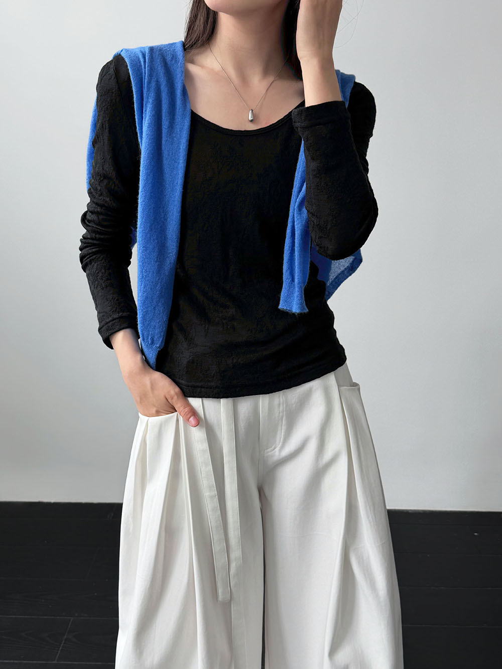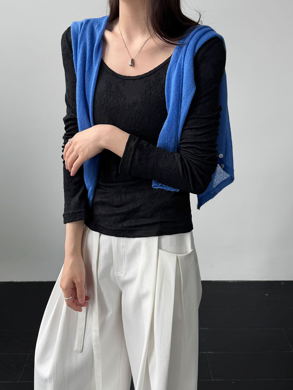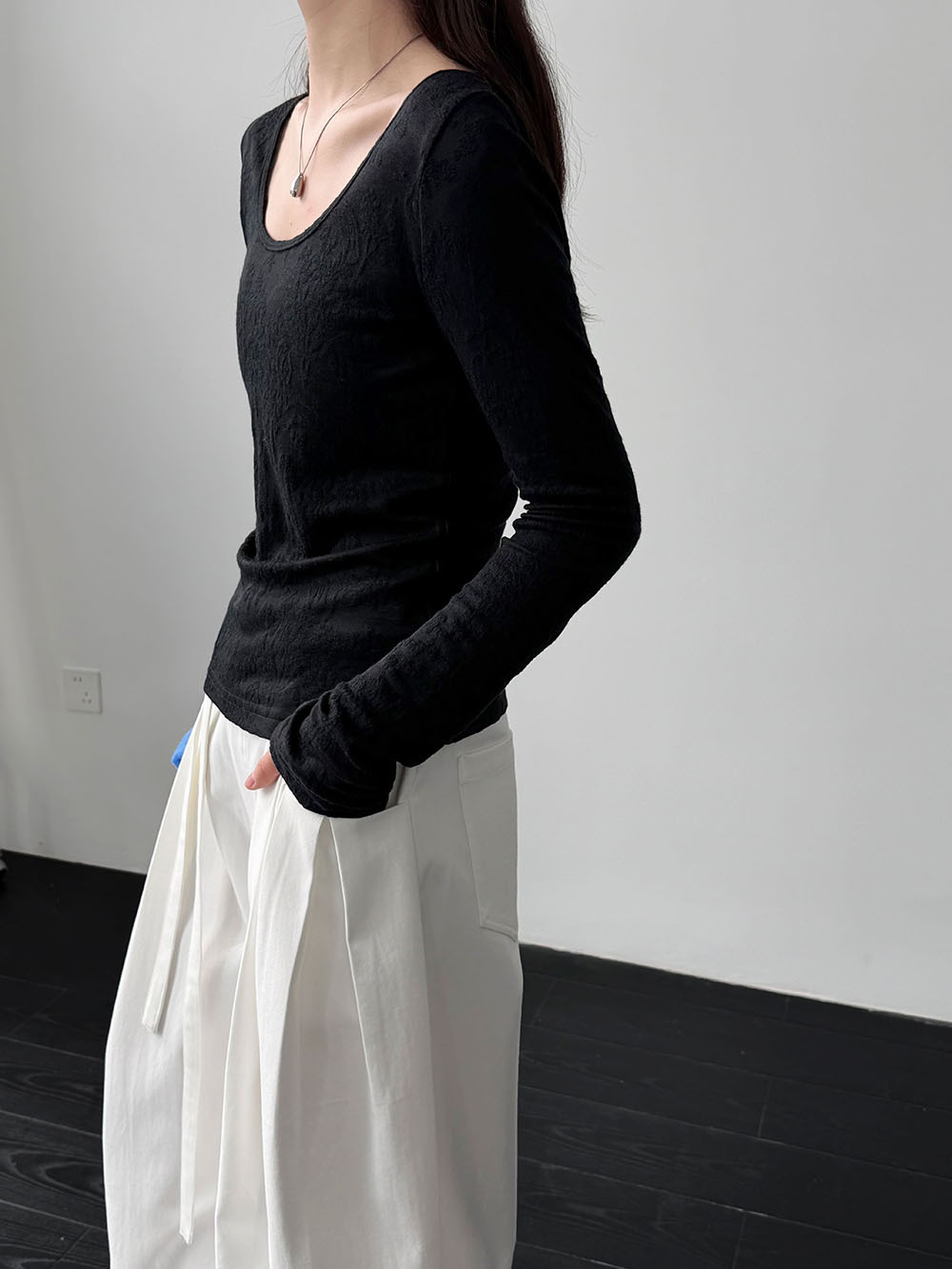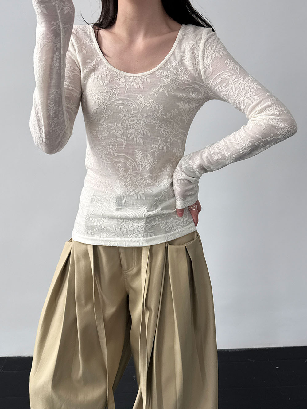 미니멀리즘 몸매 가꾸기 품격 Feifei 소매 양모 니트 맨위 여성 26 봄 새로운 다용도 티셔츠