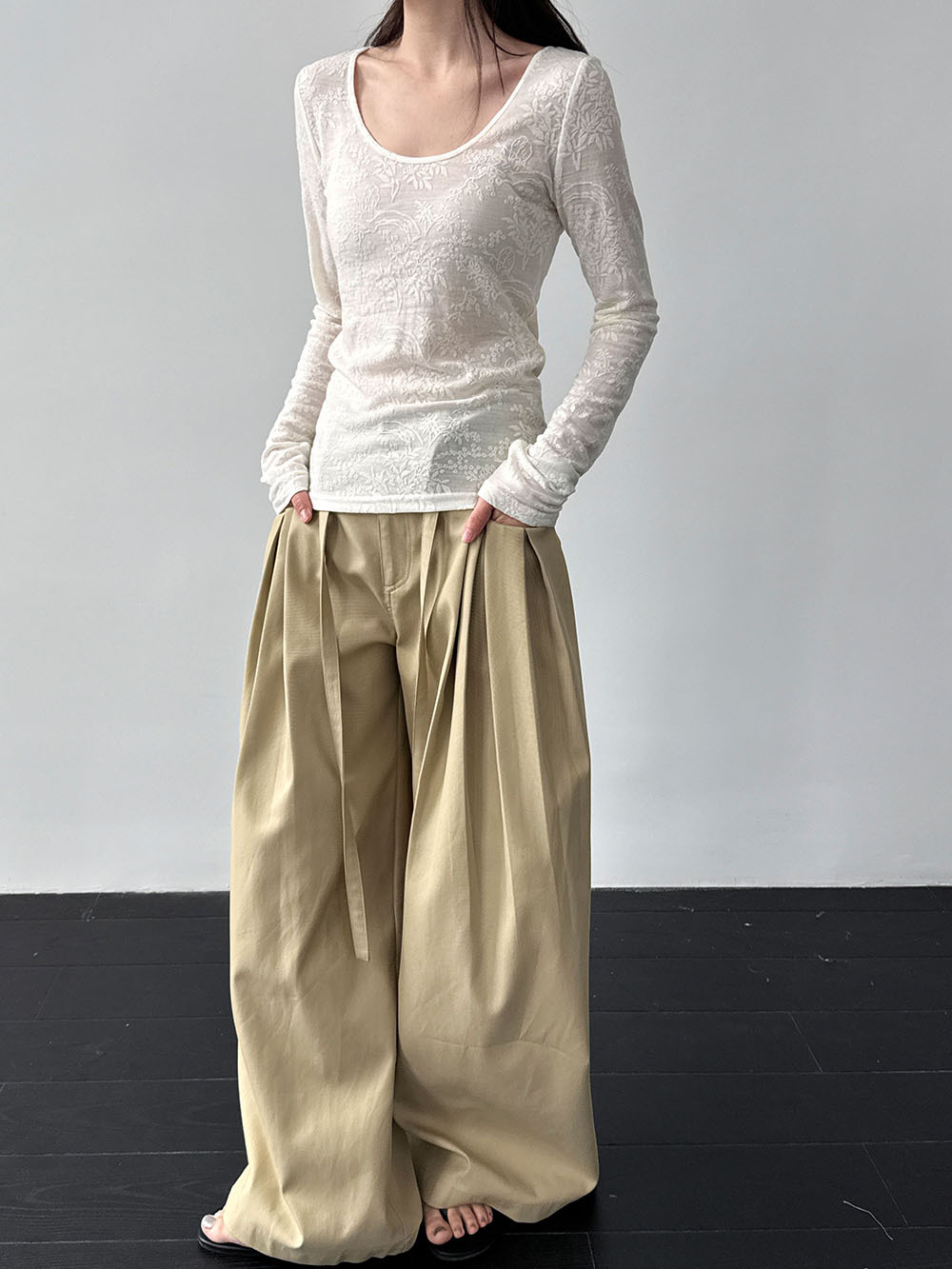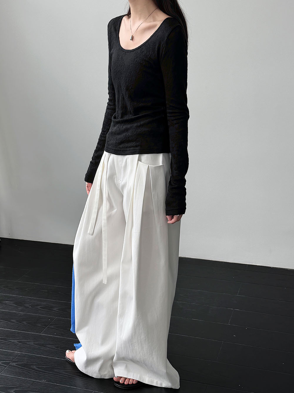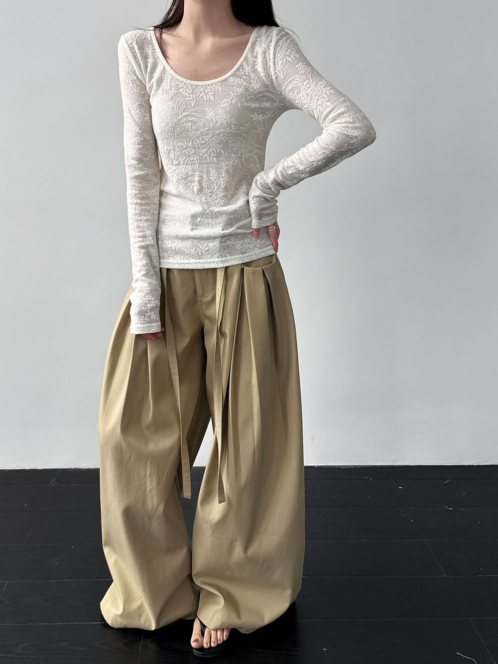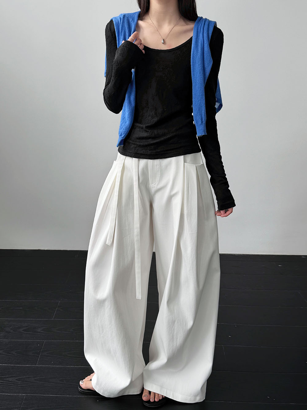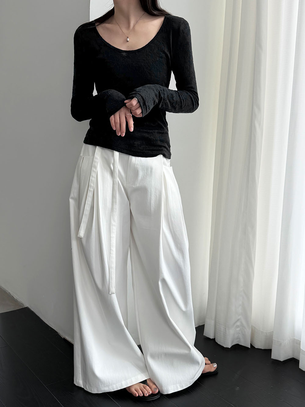 일본식 야마모토 바지 다용도 캐주얼 슬림해 보이는 와이드 레깅스 바지 여름 출퇴근 면 라미 긴 바지 얇은 스타일