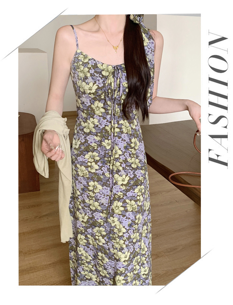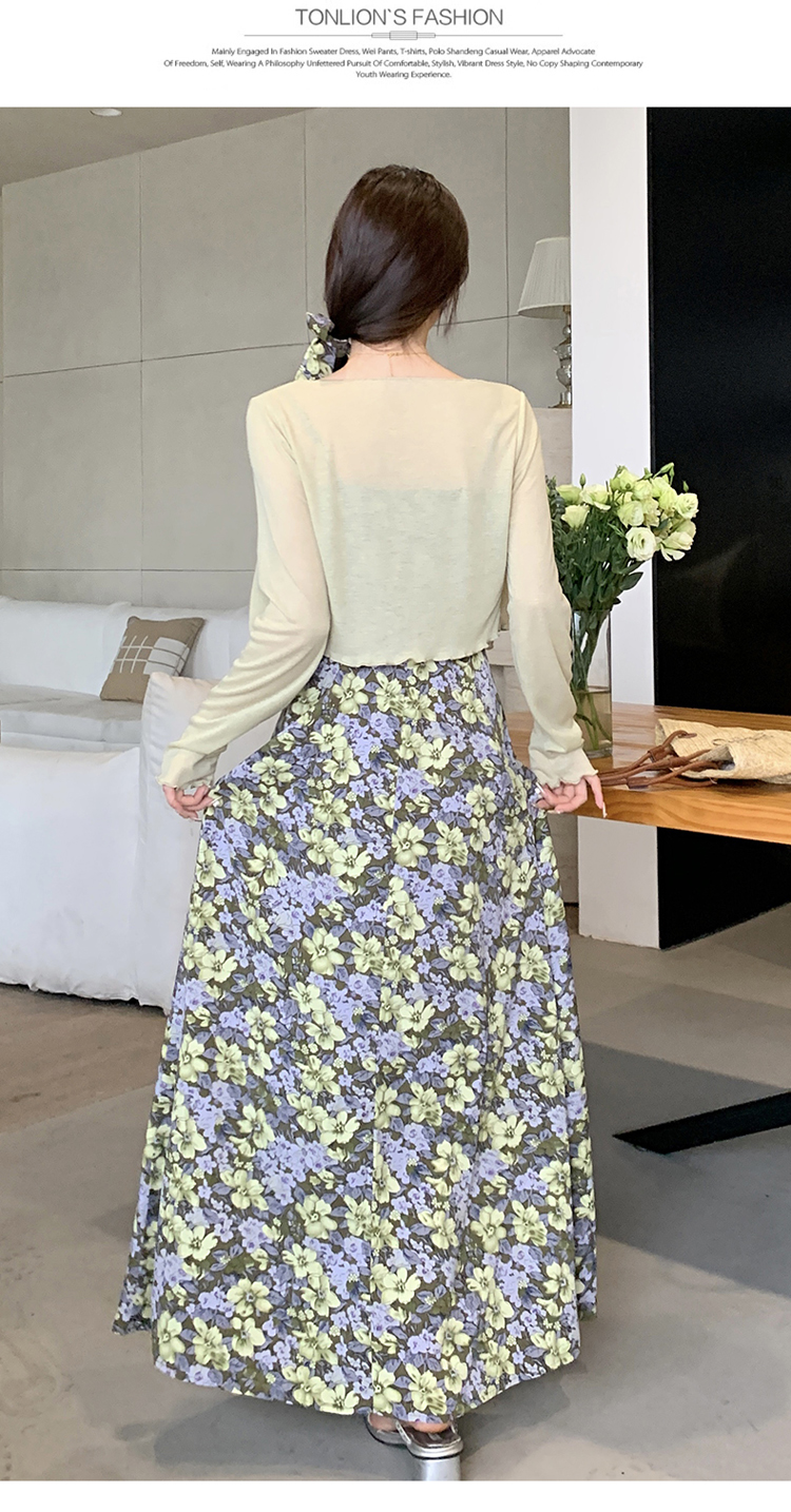 프랑스식 꽃무늬 허리 수축 드레스 지방 mm 빅 사이즈 외부 가져 가라. 자외선 차단 니트 오픈 가디건 여성 슬립 드레스 투피스 세트